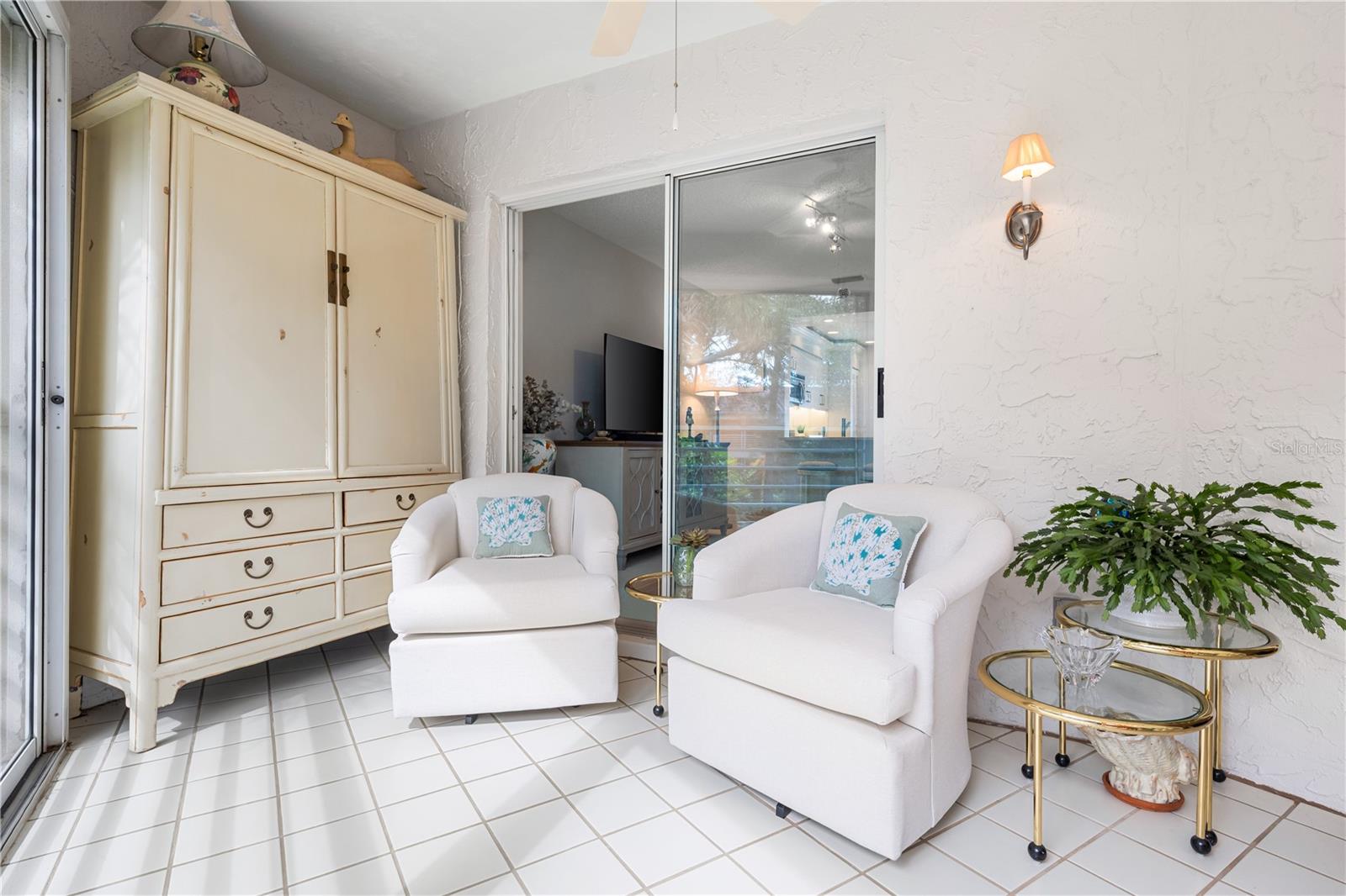 One of Vizcaya's most desirable interior locations, this former model residence is now vacant and move-in ready, with $50,000 in recent 2024-2025 improvements. Enjoy all-day natural light and effortless access to the clubhouse, pool, and your deeded covered parking space.This 2BR/2BA upstairs condo includes a generous den with pocket doors--ideal for a home office, media room, or flexible guest space--offering 1,542 sq ft of heated living area and 1,893 sq ft total. A vaulted great room opens to a glass-enclosed Florida room overlooking tranquil garden views, creating a bright and inviting flow throughout.The renovated 2025 kitchen features white cabinetry, solid-surface counters, tile backsplash, recessed lighting, and a full stainless-steel appliance suite with an open pass-through for easy entertaining. Both bathrooms have been refreshed with updated tile, fixtures, lighting, new vanity sinks, and frameless glass showers. Additional improvements include interior paint, a new water heater, an upgraded front door with decorative glass, and new lanai screens.Set within one of the area's most beautifully maintained gated communities, Vizcaya is known for its Mediterranean architecture, lush courtyards, and elegant clubhouse with heated pool, spa, and fitness room--ideal for low-maintenance seasonal living or a comfortable full-time residence.Conveniently located minutes to downtown Sarasota for dining, arts, and waterfront events, with easy access to SRQ Airport, IMG Academy, marinas, golf, and the Gulf beaches.Virtual Tour 1: video and aerial overview of the community and residenceVirtual Tour 2: 3D walkthrough with interactive floor plan