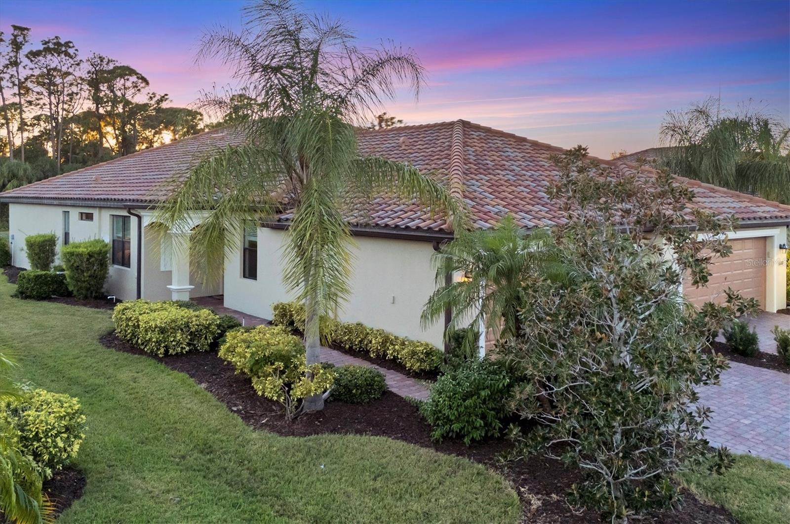 One or more photo(s) has been virtually staged. This MAINTENANCE FREE COMMUNITY has it all! Heritage Harbor & River Strand are established Communities having its' own secure guarded entry gate for owners as well as its' own swimming pool, but owners can still make use of the River Strand clubhouse, Resort Style Pool, Fitness Center, 8 lighted Har-Tru Tennis Courts, Pickleball, Social Dining Experience & 18- hole Golf Course. Social Membership Included. This 2 Bed, 2 Bath Villa with Den is located close to the pool, but also has the benefit of a quiet, Tranquil Water View from the generous Lanai. It comes Turnkey & the owners have turned the Den into a Third Bedroom. It has been lovingly cared for by the original owners. Large 2 car Garage leads into the Laundry room. Garage Floor has been sealed & finished with epoxy coating. Tiles diagonally placed throughout the Living Area & Bathrooms. Two generous Closets in the Master Suite & 2 Linen Closets for storage. Plenty of cupboards in the Kitchen & Pantry. Granite Countertops. New HVAC 2024, HVAC Wi-Fi Thermostat, Paver Driveway & Side Entry to the Front Door. LED Canned lighting in the ceiling. Looking for a Quiet Neighborhood but in a Community that is close to everything, then please check out this Delightful Villa.