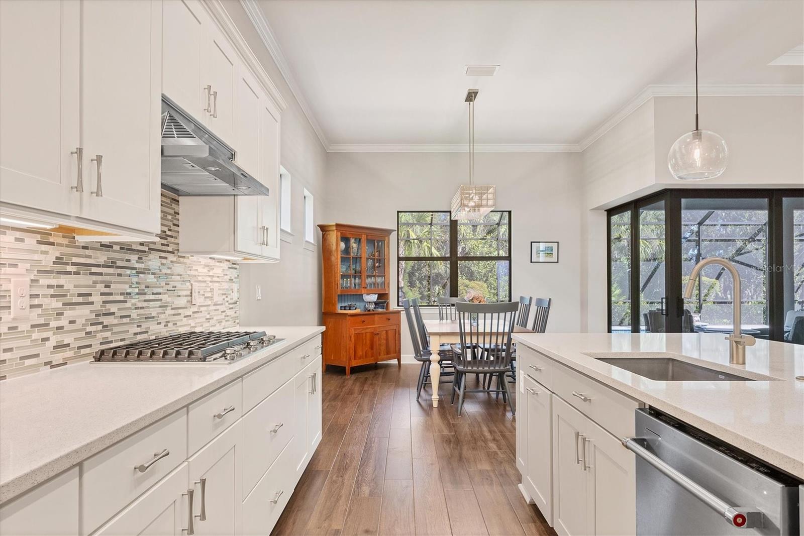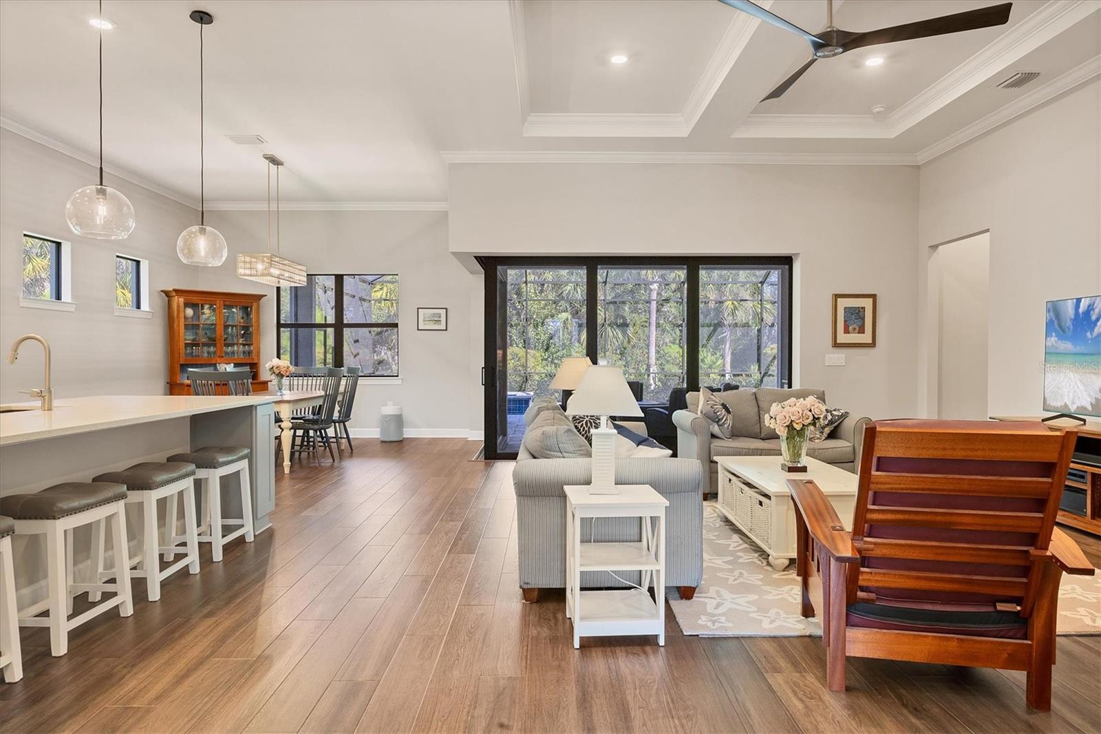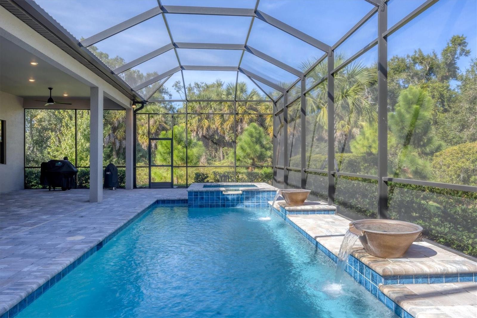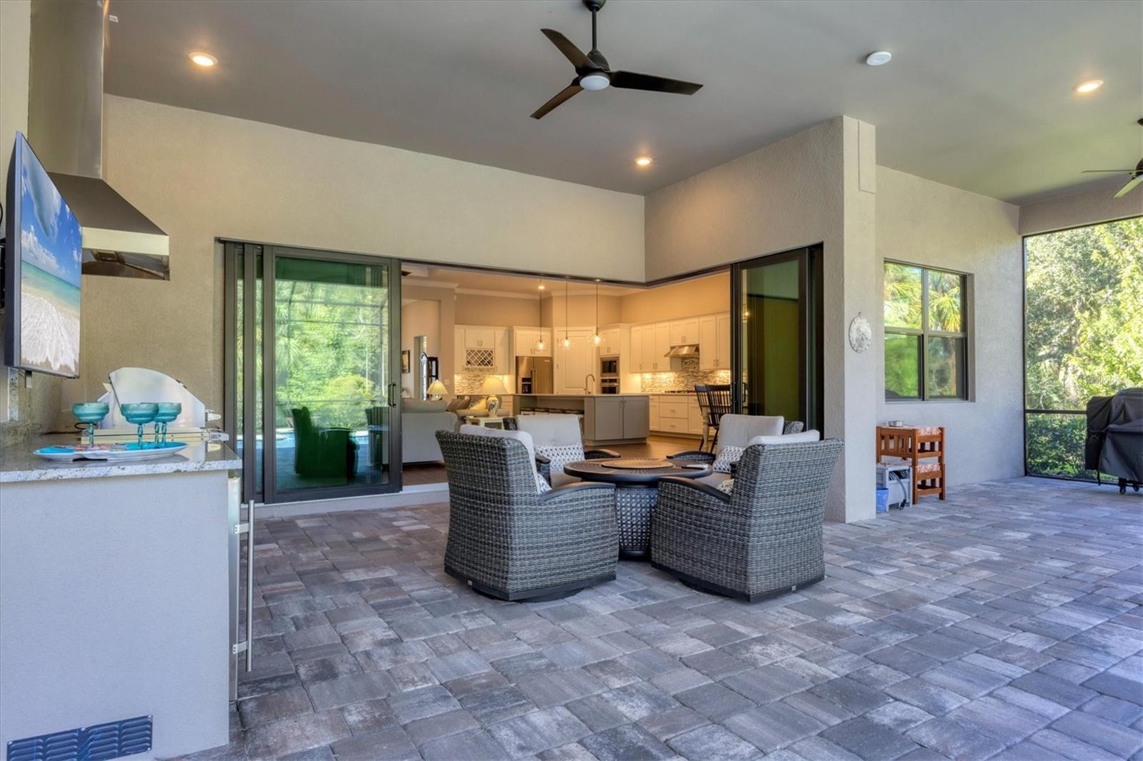 Stepping through the full-glass entry door of this magnificent 2024-built Pinnacle model, one is instantly enveloped in a cascade of natural light and an atmosphere of refined luxury. Every surface underfoot tells a story of meticulous selection: the entire home is finished in solid flooring, ensuring an elegant, cohesive look and the utmost ease of maintenance. Perfectly situated in Shoreview, one of Lakewood Ranch's most esteemed Pulte communities, this residence is designed for the discerning homeowner who demands both elegance and effortless living. Imagine a home where comfort is guaranteed and peace of mind is built in: this estate features hurricane impact windows throughout and the ultimate security of a whole-house generator. The heart of this home is its seamless connection to the outdoors, achieved through the signature corner pocket sliding doors that disappear entirely, merging the grand interior with the stunning extended lanai and pool area. This private sanctuary offers an exceptionally serene view, enhanced by the rare advantage of no homes on the left, creating a truly exclusive and tranquil backdrop for morning coffee or evening entertaining. Inside, every detail speaks to quality, from the continuous flow of hot water provided by the tankless water heater to the four-foot extension in the spacious garage, which is further upgraded with a dedicated mini-split AC unit--a perfect conditioned space for a hobby, gym, or workshop. Beyond the threshold, the location is the final, compelling chapter: you are mere moments from the dynamic dining and boutique shopping of Waterside Place, while the pristine Gulf Coast beaches, the cultural vibrancy of downtown Sarasota, the accessibility of the SRQ airport, and the retail excellence of the UTC Mall are all within effortless reach. This is not merely a residence; it is a secure, sophisticated, and perfectly positioned lifestyle, ready to begin.