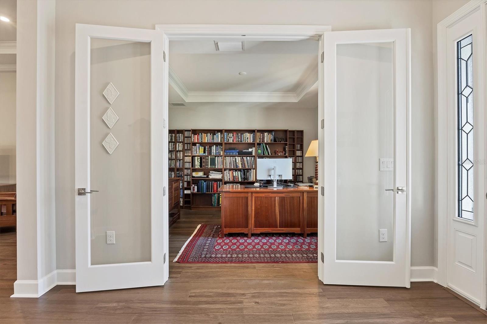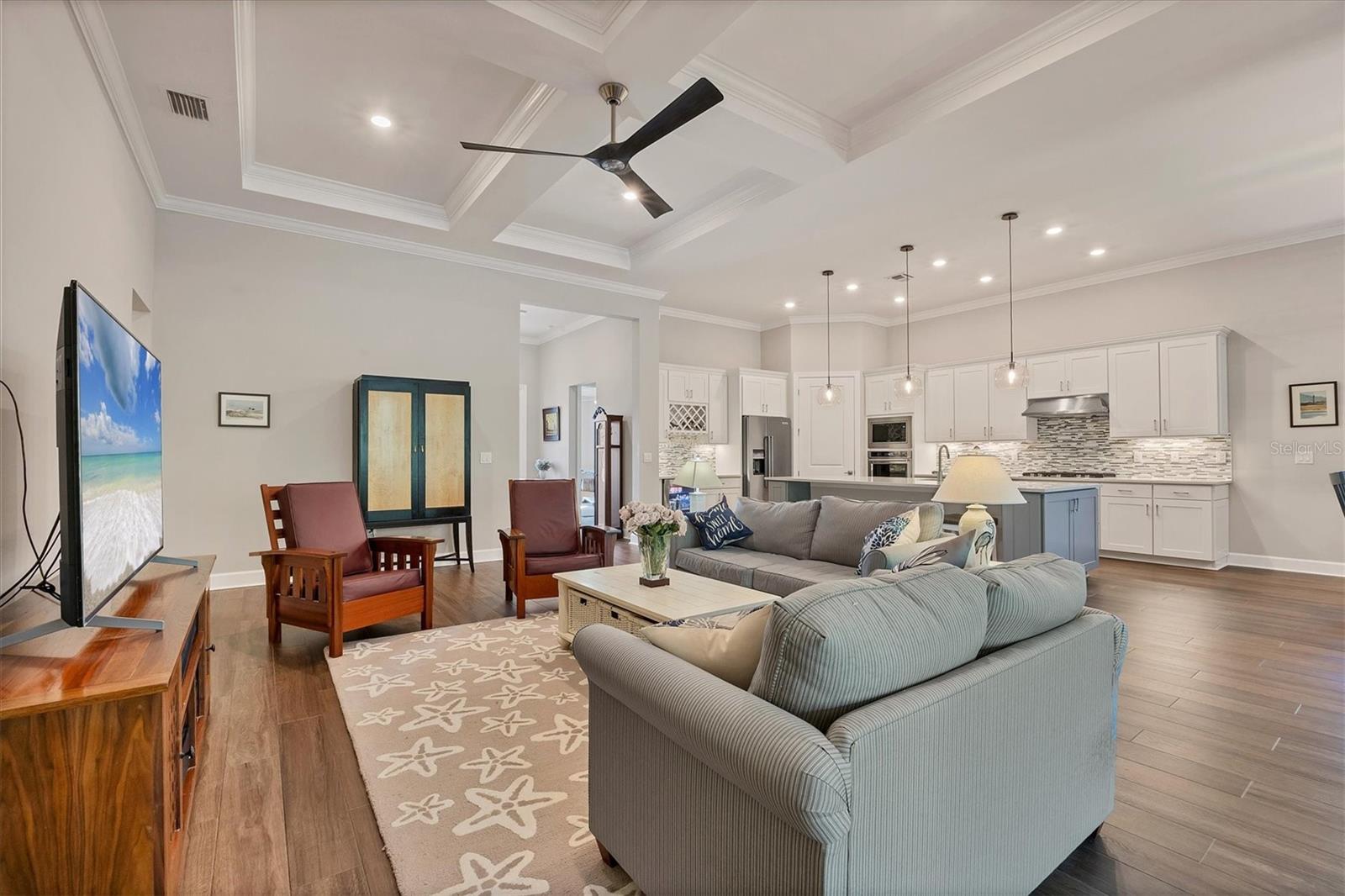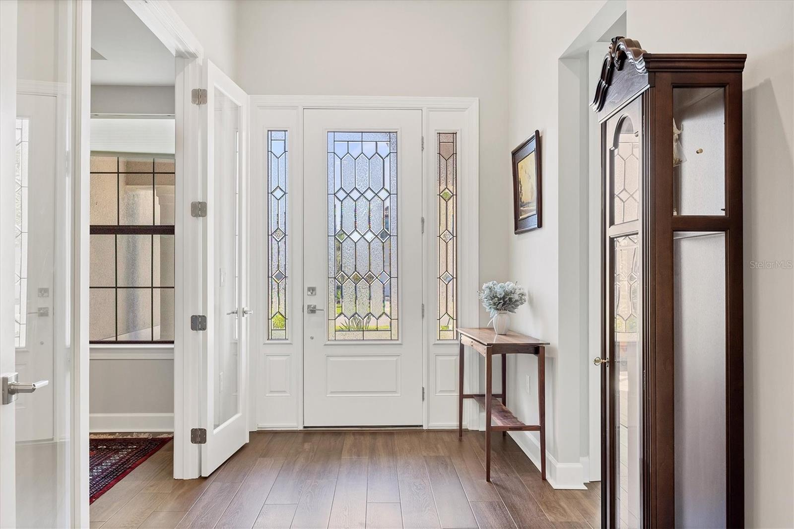 Stepping through the full-glass entry door of this magnificent 2024-built Pinnacle model, one is instantly enveloped in a cascade of natural light and an atmosphere of refined luxury. Every surface underfoot tells a story of meticulous selection: the entire home is finished in solid flooring, ensuring an elegant, cohesive look and the utmost ease of maintenance. Perfectly situated in Shoreview, one of Lakewood Ranch's most esteemed Pulte communities, this residence is designed for the discerning homeowner who demands both elegance and effortless living. Imagine a home where comfort is guaranteed and peace of mind is built in: this estate features hurricane impact windows throughout and the ultimate security of a whole-house generator. The heart of this home is its seamless connection to the outdoors, achieved through the signature corner pocket sliding doors that disappear entirely, merging the grand interior with the stunning extended lanai and pool area. This private sanctuary offers an exceptionally serene view, enhanced by the rare advantage of no homes on the left, creating a truly exclusive and tranquil backdrop for morning coffee or evening entertaining. Inside, every detail speaks to quality, from the continuous flow of hot water provided by the tankless water heater to the four-foot extension in the spacious garage, which is further upgraded with a dedicated mini-split AC unit--a perfect conditioned space for a hobby, gym, or workshop. Beyond the threshold, the location is the final, compelling chapter: you are mere moments from the dynamic dining and boutique shopping of Waterside Place, while the pristine Gulf Coast beaches, the cultural vibrancy of downtown Sarasota, the accessibility of the SRQ airport, and the retail excellence of the UTC Mall are all within effortless reach. This is not merely a residence; it is a secure, sophisticated, and perfectly positioned lifestyle, ready to begin.