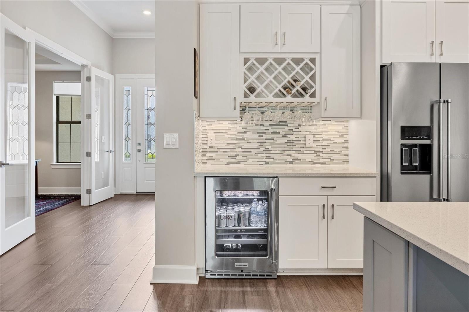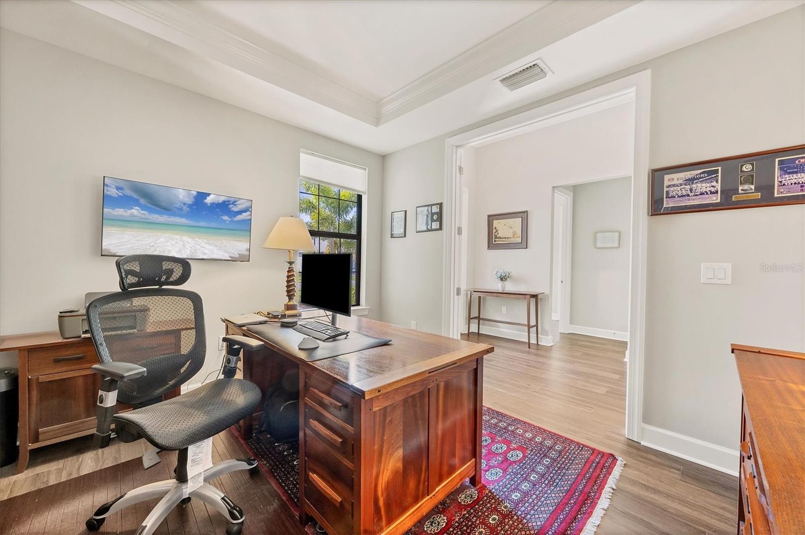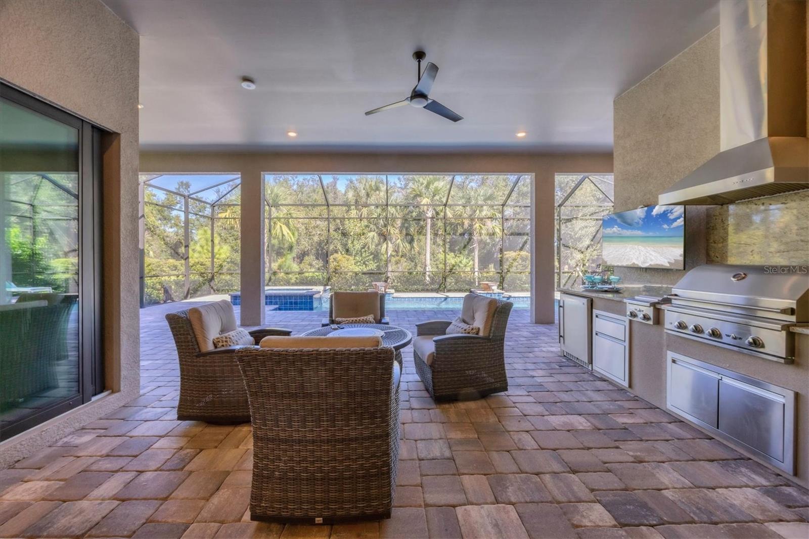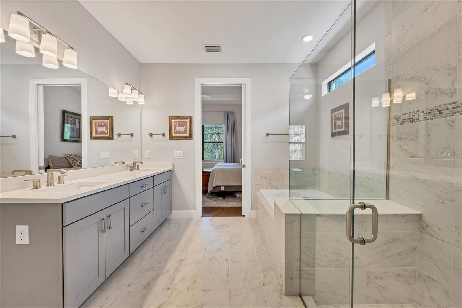 Stepping through the full-glass entry door of this magnificent 2024-built Pinnacle model, one is instantly enveloped in a cascade of natural light and an atmosphere of refined luxury. Every surface underfoot tells a story of meticulous selection: the entire home is finished in solid flooring, ensuring an elegant, cohesive look and the utmost ease of maintenance. Perfectly situated in Shoreview, one of Lakewood Ranch's most esteemed Pulte communities, this residence is designed for the discerning homeowner who demands both elegance and effortless living. Imagine a home where comfort is guaranteed and peace of mind is built in: this estate features hurricane impact windows throughout and the ultimate security of a whole-house generator. The heart of this home is its seamless connection to the outdoors, achieved through the signature corner pocket sliding doors that disappear entirely, merging the grand interior with the stunning extended lanai and pool area. This private sanctuary offers an exceptionally serene view, enhanced by the rare advantage of no homes on the left, creating a truly exclusive and tranquil backdrop for morning coffee or evening entertaining. Inside, every detail speaks to quality, from the continuous flow of hot water provided by the tankless water heater to the four-foot extension in the spacious garage, which is further upgraded with a dedicated mini-split AC unit--a perfect conditioned space for a hobby, gym, or workshop. Beyond the threshold, the location is the final, compelling chapter: you are mere moments from the dynamic dining and boutique shopping of Waterside Place, while the pristine Gulf Coast beaches, the cultural vibrancy of downtown Sarasota, the accessibility of the SRQ airport, and the retail excellence of the UTC Mall are all within effortless reach. This is not merely a residence; it is a secure, sophisticated, and perfectly positioned lifestyle, ready to begin.