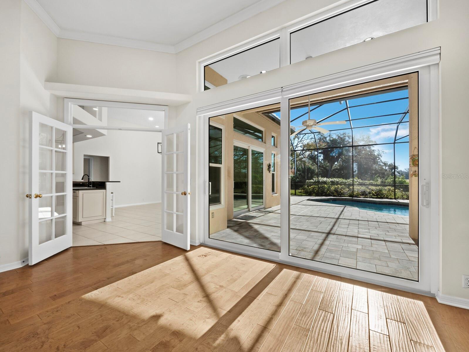 A peaceful retreat with an estate feel and exceptional privacy on a half-acre preserve lot in the gated Serenoa golf-course community. This meticulously maintained 4-bedroom, 3-bath, 3 car garage and pool home sits on an oversized homesite with no rear neighbor and only one neighbor to the side--mature oaks canopy the streets, a meandering side yard creek, and frequent deer, bunnies, and gracious crane visits create true country serenity. Inside, a bright split-plan layout provides privacy for the primary suite, while generous secondary bedrooms and spacious room sizes make everyday living easy. The great room with volume ceilings is built for entertaining and flows to a large lanai with pavered pool area and outdoor bar seating--perfect for gatherings. A formal dining room and living room complement the open kitchen/family room (with fireplace), and the side-entry garage enhances the estate look. Recent updates include a new pool cage, pool pump, newer impact windows and sliders, and electric fence. Serenoa offers optional membership at its golf club, uniquely designed custom homes on large lots, and beautiful oak-lined streets. You're minutes to I-75 and convenient to all Sarasota amenities--an active downtown, cultural venues, and Siesta Key, Lido, and Longboat Key for beach and water sports. Zoned for Lakeview Elementary, Skye Ranch School, Sarasota Middle, and Riverview High, with Twin Lakes Park a short ride away. This home is ideal for year-round living, or it can provide the ultimate snowbird lifestyle. Move-in ready, private, and perfectly positioned to enjoy the best of Sarasota.
