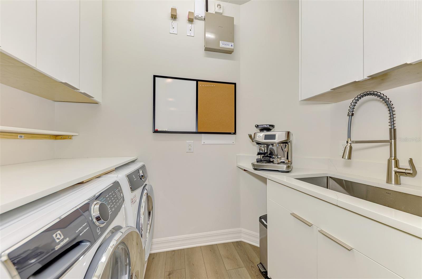 Experience luxury living in this model-like 3BR, 2B home with a den/office and sparkling, heated pool. Light-filled open floor plan with water views flows seamlessly to an outdoor entertaining area. A brand-new roof (October 2025) and high-impact windows (2024) with remote-controlled, high-impact hurricane shades for the sliders adds peace of mind. This home offers a perfect blend of style, comfort & privacy on a cul-de-sac--just 20 minutes from Sarasota's award-winning beaches and 30 minutes to vibrant downtown Sarasota.The designer kitchen embodies elegance with crisp white and gray cabinetry, sleek quartz surfaces, and a large island with seating. Stainless steel appliances, custom tile backsplash, and pendant lighting add a touch of modern flair. The dining nook has a high-end cabinet with pullouts. High 8-foot interior doors. Detailed crown molding adorns the high ceilings enhancing the home's airy, upscale feel. Luxury vinyl plank flooring throughout most of the home.Relax and entertain effortlessly in the light-filled great room that opens to a private pool and screened lanai--your own backyard oasis. The spacious primary suite features a walk-in closet with custom built-ins for optimal organization, including drawers, shelving, and hanging space. The newly remodeled master bathroom -- a luxurious retreat designed for both comfort and style. This elegant space features an enlarged walk-in shower with frameless glass doors, accented by modern tile work and high-end fixtures while updated lighting, two separate vanities and mirrors add a touch of sophistication. Warm, neutral tones and carefully selected finishes tie the space together, creating a serene and inviting atmosphere. The guest bathroom has been remodeled as well. This amazing home features an oversized garage with additional storage space. An abundance of lush Florida landscaping surrounds the home. A preserve area to one side of the home offers additional privacy.The Isles is a maintenance-free community. Socialize & make new friends in The Isles at the many community functions. There are 4 tennis courts, 2 pickle ball courts, 2 bocce courts, basketball court, tot-lot, state of the art fitness center and resort-style swimming pool for your enjoyment. The Isles is close to the world-renowned Siesta Key Beach, fine dining, doctors, golf courses, Legacy Trail and all the cultural venues downtown Sarasota has to provide. The Isles has an active pickleball and tennis community.