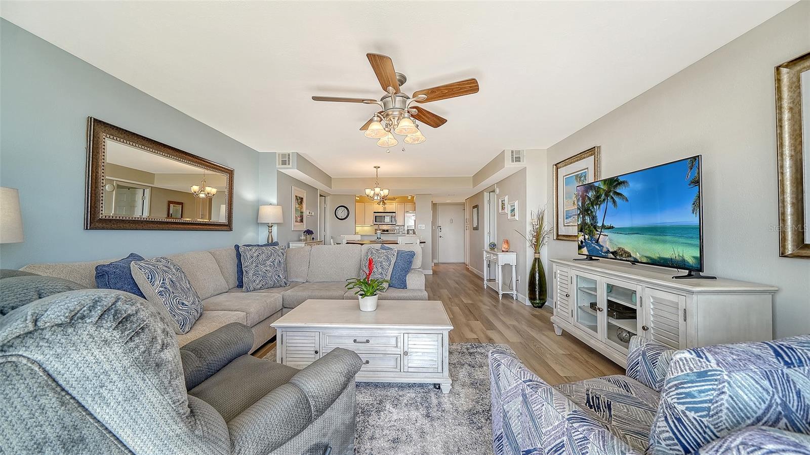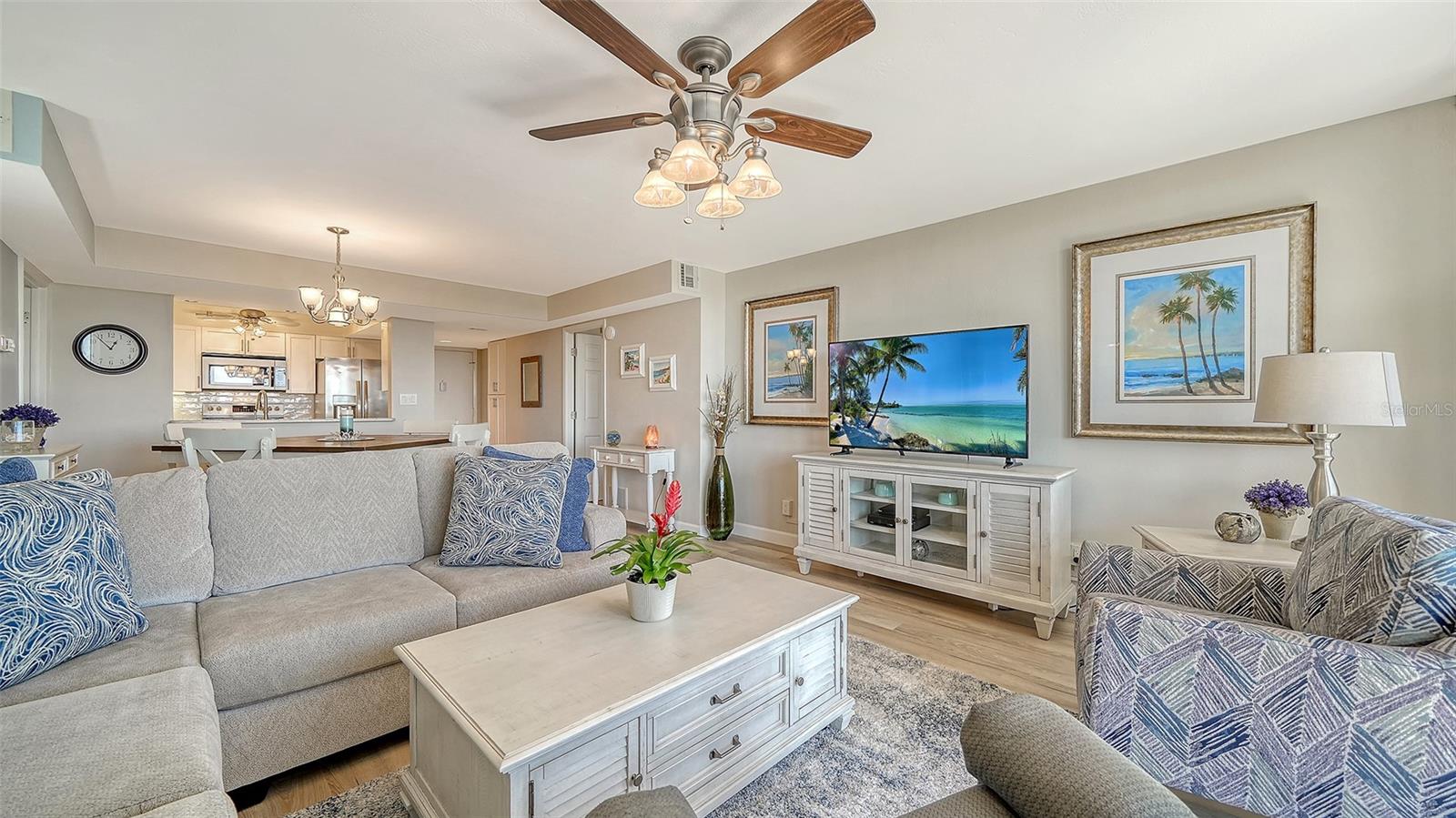 Discover coastal luxury on Siesta Key with this beautifully renovated and fully turnkey-furnished condominium at the prestigious Anchorage Yacht and Tennis Club. Featuring two spacious bedrooms and two modern baths, this residence blends comfort, style and investment potential. Ideal for personal enjoyment and potential rental income, Anchorage allows weekly rentals, 52 weeks per year, and offers onsite management and a rental office for effortless ownership. The sellers have never rented the property, as it has been used exclusively as their private residence, reflecting the utmost care and pride of ownership. Enter to find a tastefully remodeled interior showcasing fresh, neutral tones and modern coastal design. The condominium is handsomely appointed with coastal furnishings and dcor, just two years old. creating a light, inviting atmosphere throughout. The open-concept living area flows seamlessly to a private, condominium-width balcony, accessible through impact glass sliding doors. Enjoy southern exposure and all-day sunshine with views of the waterway and marina. The chef's kitchen is fully equipped with elegant quartz countertops, white cabinetry and stainless steel appliances, opening to the dining and living areas, ideal for entertaining or relaxing evenings at home. The expansive primary suite features a luxurious ensuite bath with a walk-in shower, a customized walk-in closet and private balcony access. Additional highlights include a deeded under-building parking space and ample guest parking. The HOA fees conveniently cover insurance, water, sewer, trash, cable TV and internet. Residents of The Anchorage enjoy an impressive array of resort-style amenities, including an Olympic-sized heated swimming pool, fitness center, lighted pickleball and tennis courts, clubhouse, barbecue and picnic areas, shuffleboard, kayak storage and launch area, and dock access for fishing or boating. Along a saltwater canal with boat dockage, Anchorage offers easy access to the Intracoastal Waterway via the south Siesta Key bridge (no fixed bridge). Plus, residents enjoy private beach access to the world-famous Siesta Key Crescent Beach. Combining resort-style living with the comfort of a residential community, this exceptional condominium is ideal for full-time living, a vacation retreat or a proven income-producing investment. Don't miss the opportunity to own your piece of paradise on Siesta Key!