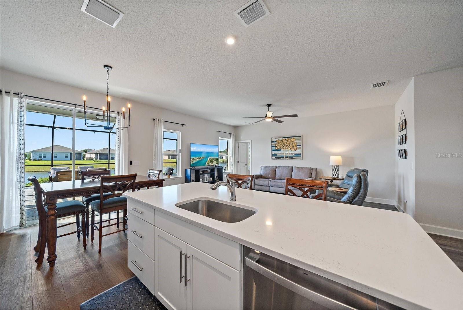 Discover this exceptional 2023-built residence nestled within the prestigious Willow Bend community, where contemporary elegance meets thoughtful functionality. This immaculate 3 bedroom, 2 bathroom with office/den home encompasses 1,808 square feet of meticulously designed living space, featuring sophisticated LVP flooring throughout and trey ceilings adorned with recessed lighting that creates an atmosphere of refined sophistication.The heart of this residence showcases an open floor plan seamlessly connecting the gourmet kitchen, complete with premium stainless steel appliances, a magnificent cooking island with seating, and convenient custom pantry closet. The versatile flex room presents endless possibilities, transforming effortlessly into a home office, den, or intimate sitting room to accommodate your lifestyle preferences.The primary bedroom suite serves as a private sanctuary, boasting an luxurious en-suite bathroom featuring a spacious walk-in shower with tile bench, privacy toilet, dual vanities and large walk-in closet for ultimate convenience. Additional practical elements include a thoughtfully positioned laundry closet for seamless household management.Step outside to experience the crown jewel: a spectacular screened lanai overlooking serene pond views and beautiful sunsets, featuring an innovative in-ground pool and spa combination. This unique aquatic feature transforms from refreshing swimming pool to relaxing hot tub or intimate spool, complete with air conditioning for year-round comfort. The welcoming front porch provides additional outdoor entertaining space with ceiling fans for optimal comfort.Willow Bend residents enjoy resort-style community amenities including a pristine pool, playground, and scenic walking areas, all with NO CDD fees and maintaining remarkably low HOA dues. Strategic positioning provides effortless access to major highways, ensuring convenient commuting while maintaining peaceful suburban tranquility.