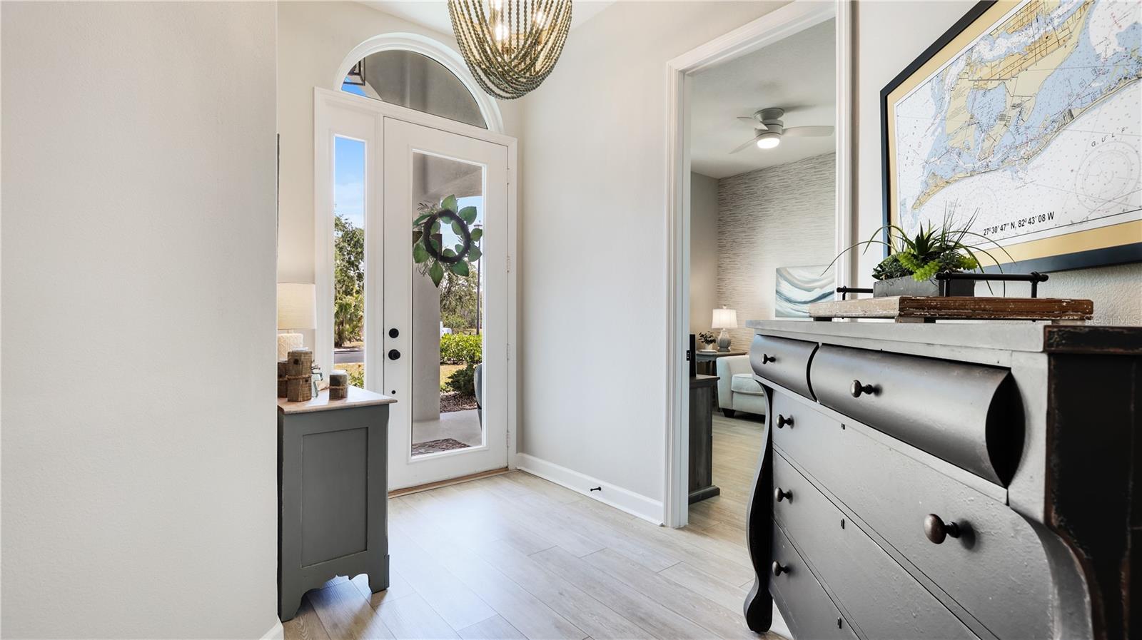 Welcome to this impeccably updated waterfront haven that feels like a brand-new home! Located in the coveted Sanctuary community on scenic Perico Island, this home is a must-see. Just a short drive or bike ride to the pristine beaches of Anna Maria Island, this 3 bedroom/2 bath residence (3rd bedroom is currently used as a den) offers the perfect combination of coastal charm and modern upgrades. Step into a light-filled, open-concept layout with vaulted ceilings that features a stunning new kitchen with quartz countertops, stylish cabinetry, and state-of-the-art appliances. The current owner has spared no expense with over $150k in upgrades, in both the interior and exterior of the home. In addition to the kitchen, other updates include: all new IMPACT WINDOWS and GARAGE DOOR, updated Pex plumbing, two custom walk-in closets, water softening system, fresh interior and exterior paint, new gutters, upgraded lighting and plumbing fixtures, plantation shutters, custom window treatments, and more. A stylish coffee bar next to a charming window seat, adds a touch of everyday luxury. The interior laundry room features quartz counters and matching cabinetry for a cohesive, polished look throughout. With a maintenance-free yard, you are free to enjoy the nearby lakefront clubhouse with heated pool, gym, steam room, tennis/pickleball courts, ping-pong & billiards all with a low monthly HOA fee. Enjoy peaceful water views from the screened porch and extended paver patio, perfect for entertaining or relaxing in a private outdoor setting. The attached 2-car garage provides ample storage and convenience. Located within a beautifully maintained community with close proximity to Perico Preserve, Neal Preserve, Robinson Preserve, walking trails, and the sparkling Gulf waters. This is your chance to enjoy the best of Florida's west coast living surrounded by natural beauty. Whether you're seeking a full-time or seasonal residence this coastal retreat offers the ideal blend of comfort, style, and location. Don't miss your chance to live moments from Anna Maria Island in a beautifully updated home-schedule your private showing today!
