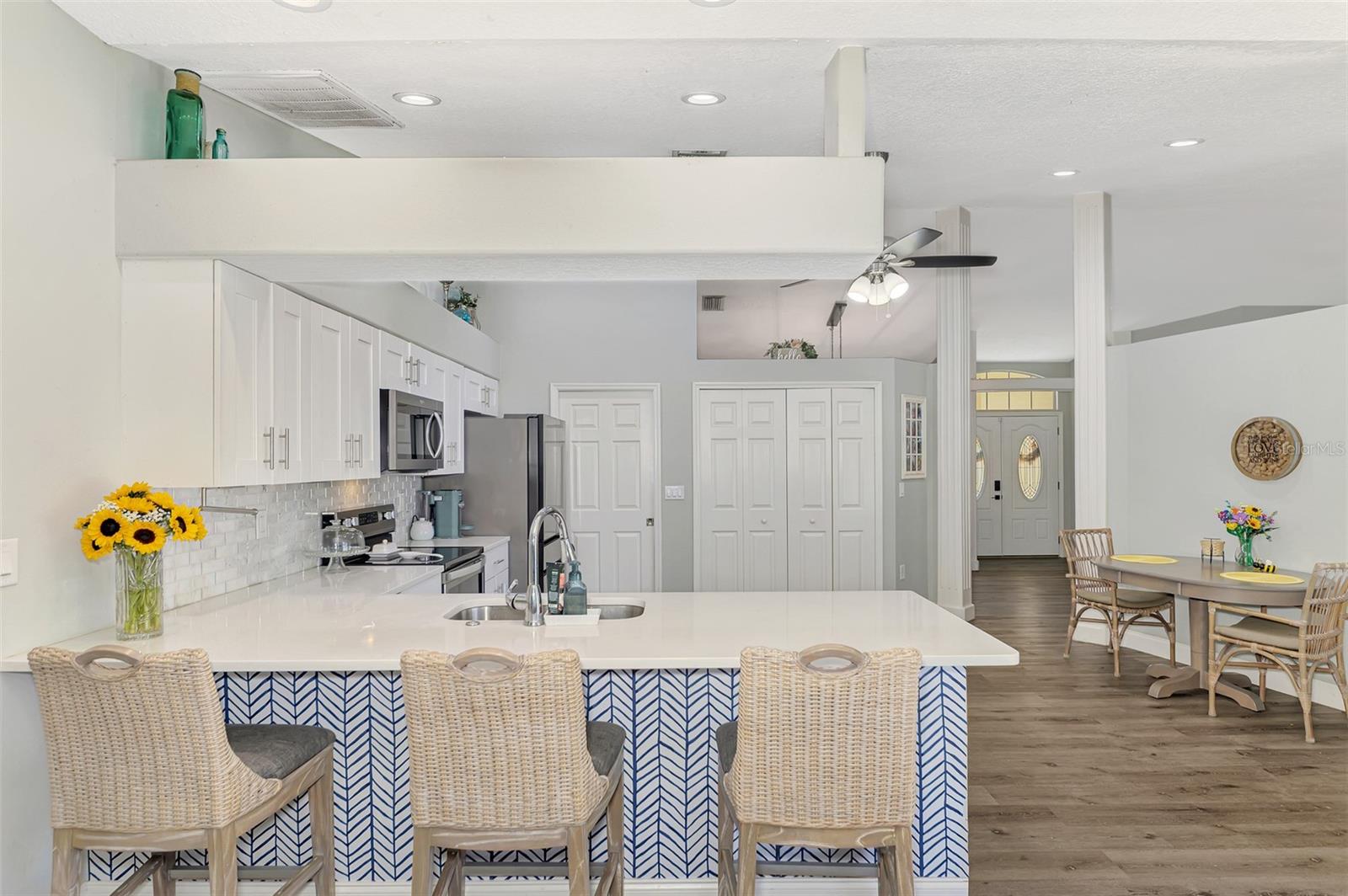 Beautifully updated 4BR/2BA pool home in the sought-after Bay Oaks Estates community of Osprey. This single-story residence's backyard borders the Legacy Trail and includes a private gate for direct trail access. Inside, high ceilings and natural light complement luxury vinyl plank flooring, fresh paint, new doors, baseboards, and fixtures. The kitchen features quartz countertops, marble backsplash, recessed lighting, an undermount sink, and newer Whirlpool appliances. A split floor plan provides privacy with spacious bedrooms, including a primary suite with lanai access, two closets (one walk-in), and a spa-like bath with soaking tub, walk-in shower, and dual quartz vanities. The screened lanai overlooks an inviting pool and spa with a private, tree-lined backdrop. Other highlights include a dedicated laundry room, 2-car garage with new door and opener, newer roof, A/C, and water heater. All improvements and system updates completed in 2020. Last year, the pool was resurfaced and the waterline tile replaced. Additional upgrades include new pool equipment, a saltwater system, and a heater. Low HOA and no CDD. Conveniently located near top-rated schools, Oscar Scherer State Park, shopping, dining, and world-class beaches including Siesta Key, Nokomis, and Venice.