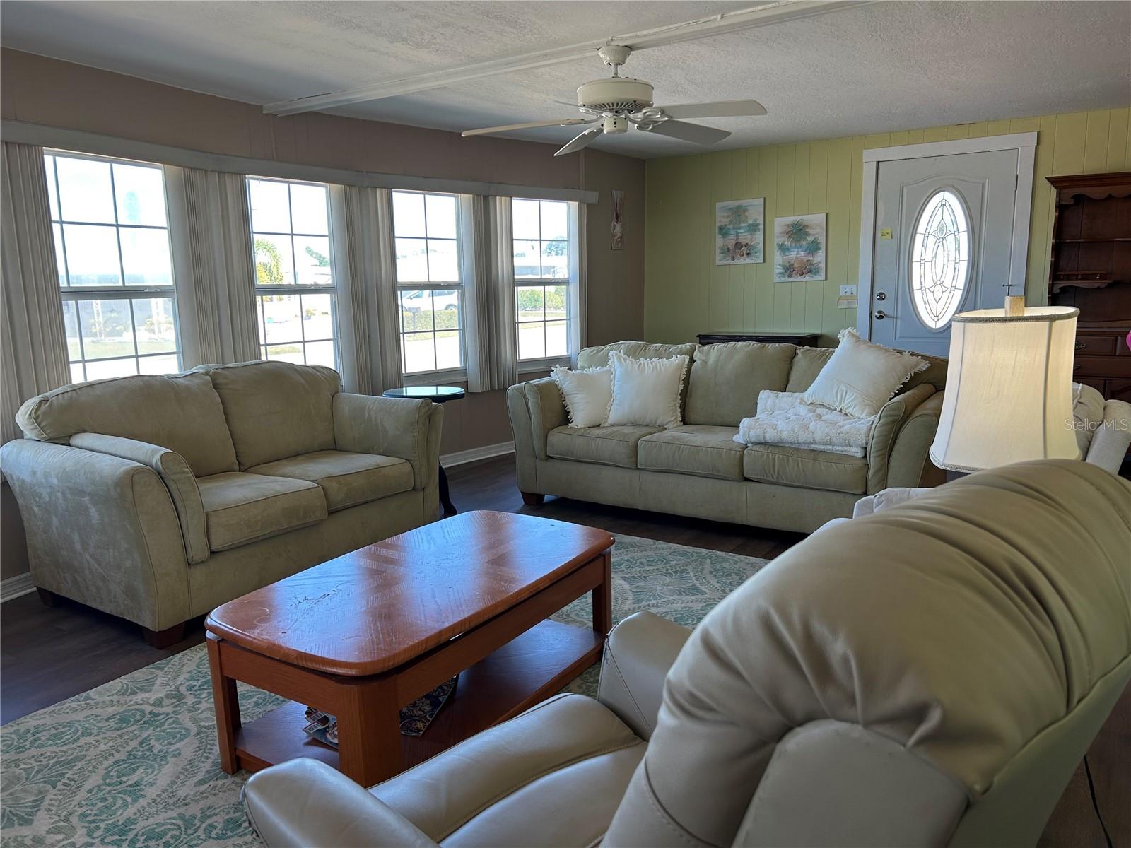 Checkout this handsome home ready for new owneers in popular Tri Par Estates! This property offers 1.5 lots - Unusually large lot. Offering 1100 square feet of living space, 2 bedroom, 2 bathroom, furniture included! Updates include 2025 new roof on the MH, some new flooring & ceiling updates in Living Rm, Dining Rm, Kitchen & Master Bedroom. Also includes 9 X 23 enclosed porch, 2nd parking pad, "golf cart is included" has not been run for 2 years+-. Large shed includes the W&D. This property is out of the flood zone code "X". Tri-Par Estates is a 55+ community in which you own your home and the land. A park fee of $2,472.00 based on 1.5 lots. Tri Par dues are part of the property taxes paid once a year, includes Frontier internet, cable also trash. There is a large pool, hot tub, mini golf, laundry facilities, fitness room, clubhouse, and many activities to enjoy. Just minutes to the airport and many other like necessities nearby like hospitals, shopping, restaurants and more. Please do not disturb resident. Airplanes & jets do fly over Tri Par Estates. Tri Par is a state park & recreation development.