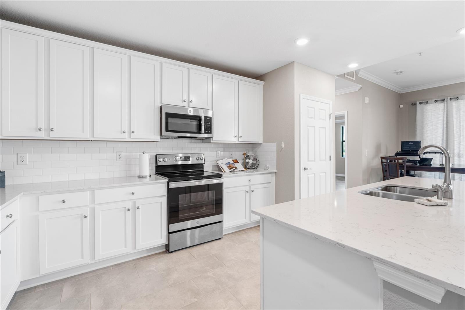 Enjoy resort-style living in this beautifully upgraded 2-bedroom plus den, 2-bathroom first-floor condo perfectly situated on a large scenic lake on the desirable lake side of the community (golf not included). This bright and open home features stainless steel appliances, a subway tile backsplash, elegant quartz countertops, and an oversized kitchen island ideal for entertaining. The spacious living area showcases crown molding and luxury vinyl plank flooring, while the primary suite offers a huge walk-in closet and a serene lake view. Relax on the oversized screened lanai, perfect for enjoying morning coffee or evening sunsets overlooking the water. Sarasota National is a gated, amenity-rich community offering something for everyone -- enjoy dining at the Palm Club Restaurant or the Tiki Bar, stay active in the state-of-the-art fitness center, or unwind at the resort-style and lap pools. Additional amenities include an event lawn, coffee lounge, and spa services, providing the ultimate Florida lifestyle. Conveniently located just minutes from Downtown Wellen Park, Historic Venice, the Atlanta Braves Spring Training Stadium, world-class golf courses, beaches, dining, and shopping -- this is the perfect place to live, play, and relax. Don't miss your opportunity to own a piece of paradise in Sarasota National!