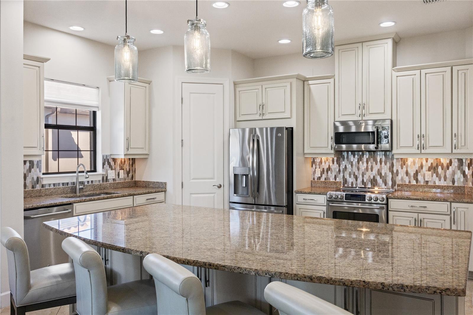 Beautifully maintained End unit condominium. Experience resort-style living in this beautifully maintained condominium in the gated, maintenance-free community of Esplanade. Offering 3 bedrooms, a dedicated office/den space, and 3 full bathrooms, this residence blends comfort, function, and style in a highly desirable Lakewood Ranch setting.An inviting open floorplan features ceramic tile in the main living areas, tray ceilings, and abundant natural light. The kitchen is designed for everyday ease and entertaining, offering granite countertops, stainless-steel appliances, quality cabinetry, and a large island/breakfast bar overlooking the dining and living space.The living area features a modern fireplace with a striking tiled accent wall, adding warmth, character, and a beautiful focal point.The primary suite provides a relaxing retreat with an ensuite bath including dual vanities, a walk-in shower, and a custom-built walk-in closet system. A second bedroom also features an ensuite bath -- offering comfort and privacy for guests. The third full bath serves the additional bedroom and main living area. Bedrooms are comfortably carpeted.An open office/den provides flexible space for work, reading, or creative pursuits.Step outside to a private screened lanai overlooking peaceful greenspace accented with landscaped palms -- an ideal place to enjoy morning coffee or unwind in the evening.Additional features include hurricane-impact windows, in-unit laundry, and an attached one-car garage. This home is also conveniently located near one of the quieter community pools, offering an intimate spot to relax close to home.Residents enjoy an impressive selection of amenities, including resort-style pools, a tiki bar, on-site restaurants, fitness center, tennis and pickleball courts, bocce, clubhouse, scenic walking paths, and community events. Golf is available on a pay-to-play basis -- no bundled membership required, providing flexibility and value.Conveniently located near Lakewood Ranch Main Street, Waterside Place, UTC, medical facilities, restaurants, shopping, and Gulf beaches.Enjoy maintenance-free living and access to exceptional amenities in one of the area's premier communities -- schedule your visit today.