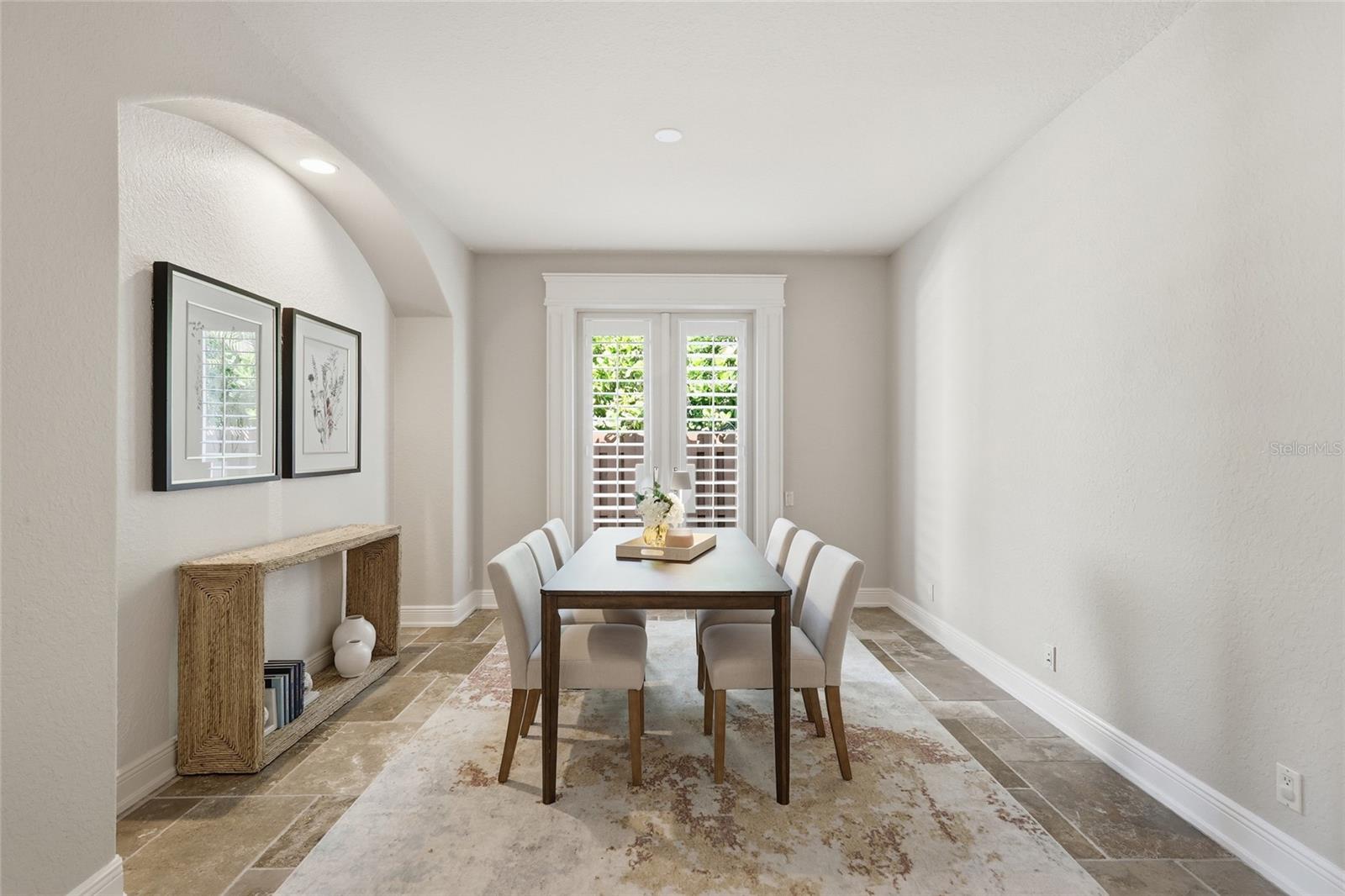 Discover an exquisite blend of Old-World charm and modern luxury in this custom Mediterranean jewel located in Sapphire Shores, the heart of Sarasota's Historic Museum Area. This property is NOT IN A FLOOD ZONE but just a short walk to Sun Circle, a scenic bayfront park on Sarasota Bay. The neighborhood is surrounded by the city's most renowned cultural institutions, including The John and Mabel Ringling Museum of Art, Sarasota Ballet, and Florida Studio Theater. Spanning 2,534 square feet under air, this elegant residence features three bedrooms and three baths, with two luxurious en-suites for ultimate privacy and comfort. High-end finishes such as travertine floors, granite countertops, and tray ceilings elevate the home's timeless sophistication. The open floor plan beautifully balances both leisure and formal areas. A gracious foyer flows seamlessly into the living room and open-concept kitchen creating an ideal setting for entertaining. You will also find both a casual dining area and a formal dining room for those special occasions. Designed for Florida's indoor-outdoor lifestyle, the home's salt water pool and exotic sunken fire pit make the backyard a true retreat. When hosting gatherings, you'll find plenty of room for parking in the unique motor court framed by a decorative block wall accented with Frank Lloyd Wright styled vases. Whether you're drawn to the rich history of Sapphire Shores, the vibrant arts scene, or simply desire a refined retreat near the water, this home offers a rare opportunity to own a piece of Sarasota's finest. 2 miles north of downtown Sarasota and a short drive to St. Armands Circle and the beaches of Lido and Longboat Key. Conveniently located near University Parkway anchored by Sarasota Bradenton Airport on the west and University Town Square shopping and dining district on the east.