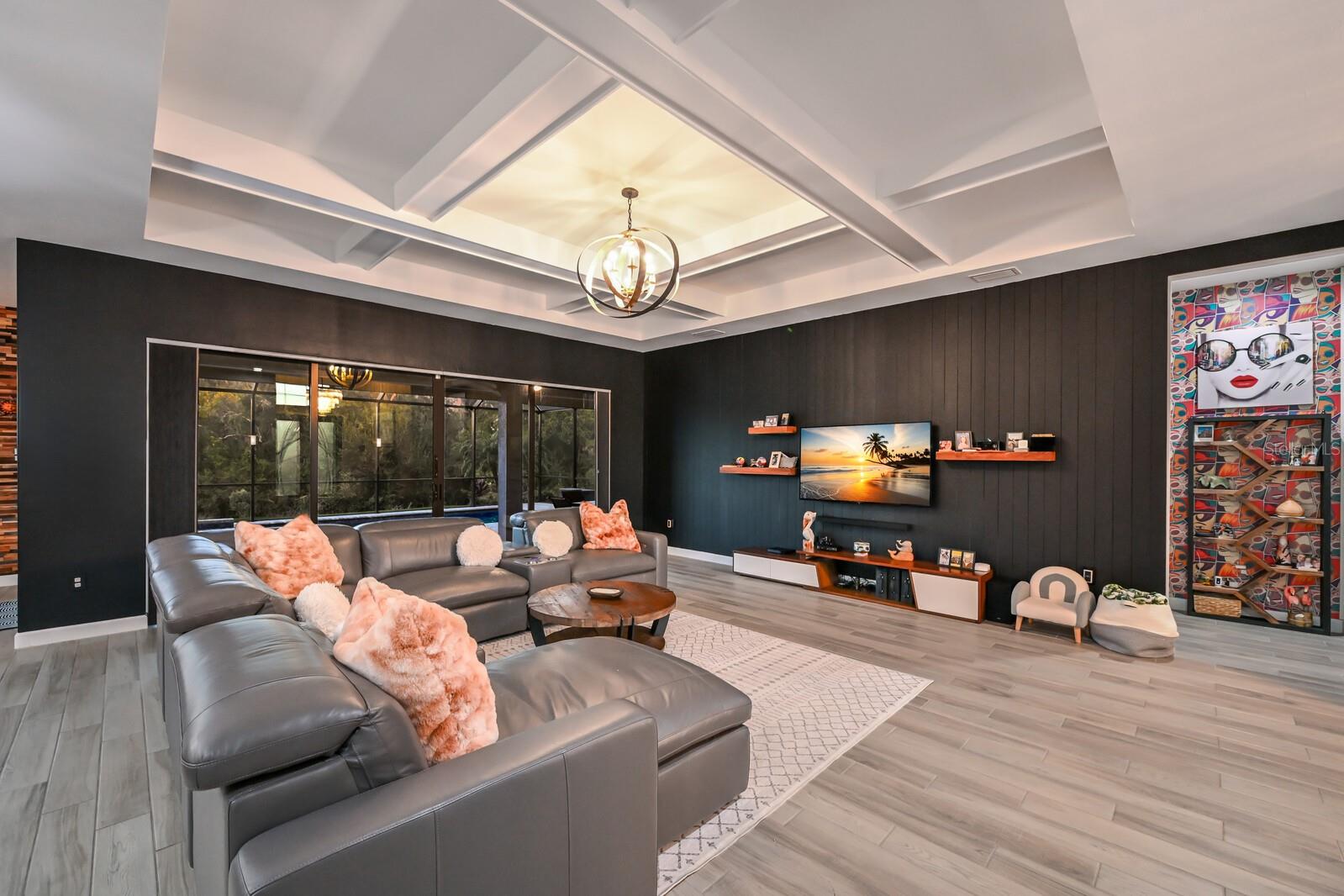 STEP into this STUNNING 3 bedroom, 3 bathroom, 3 car garage Sunset model by Lennar, located in the highly sought-after GATED community of Lorraine Lakes in Lakewood Ranch!! This home has undergone a complete REMODEL and is truly one-of-a-kind, offering MODERN LUXURY, comfort, protection, and PRIVACY with every possible upgrade you could imagine. As you step through the GRAND double front doors, you're greeted by an ASTONISHING chandelier and ELEGANT entryway that gives you a glimpse of the home's open concept floor plan. The living room features a beautiful COFFERED ceiling, a CUSTOM shiplap feature wall, and four panel sliding glass doors with CUSTOM SHADES for privacy that open to the lanai and pool area, creating the perfect space to unwind after a long day. The modern, UPGRADED kitchen is a SHOWSTOPPER, showcasing ceiling-to-floor cabinets with pull out drawers, pull out spice racks, a built-in oven/air fryer, gas cooktop with a STYLISH hood, modern backsplash, a walk-in pantry, a built-in coffee bar, and a large WATERFALL EDGE island with seating that's perfect for everyday meals or entertaining guests. The cabinets extend into the dining area, which includes a wood accent wall and sliding doors offering beautiful views of the backyard. The primary suite is privately located on one side of the home, featuring sliders leading to the lanai, a tray ceiling with CUSTOM WOOD ACCENTS, two spacious WALK-IN CLOSETS, and a LUXURIOUS ENSUITE bathroom complete with dual sinks, a large tiled walk-in shower featuring two shower heads, a rain head, and a built-in shower seat for a true spa-like experience. On the other side of the home, one bedroom features a custom BUILT-IN WALL SEAT with storage, while another bedroom includes its own PRIVATE bathroom that conveniently opens to the lanai, making it perfect for use as a POOL BATH. There is also a spacious STUDY/DEN, ideal for a home office, playroom, or fitness space. The laundry room includes cabinetry, a sink, upgraded washer and dryer, and a custom built-in mudroom. Step outside to your private backyard OASIS with a fully screened lanai featuring a HEATED SALTWATER POOL AND SPA, custom WOOD CEILING, and LANAI CAGE LIGHTING that enhances the ambiance. The OUTDOOR KITCHEN comes equipped with a refrigerator and cabinets, ideal for entertaining family and friends while enjoying views of the breathtaking sunsets. For extra protection and peace of mind, this home includes MOTORIZED HURRICANE SHUTTERS on both the front door and lanai, and ATTIC INSULATION for enhanced energy efficiency. Additional upgrades include LUXURY VINYL FLOORING throughout, CUSTOM CLOSETS, PLANTATION SHUTTERS, a whole-home WATER SOFTENER SYSTEM, and a garage equipped with TRX flooring, CEILING RACKS, and CABINETRY for ample storage. The EXTENDED PAVER WALKWAY, upgraded landscaping, and outdoor lighting complete the home's refined curb appeal. Located in Lorraine Lakes, this resort-style community offers a clubhouse, multiple community pools, a state-of-the-art fitness center, tennis, pickleball, basketball, and volleyball courts, a splash park, and even an on-site restaurant so you can enjoy Florida living to the fullest without ever leaving your neighborhood. Lakewood Ranch is known for their A+ rated school system and is perfectly located just a short ride to downtown Sarasota, St. Pete, world class shopping, fine dining and the FAMOUS Gulf beaches! Don't wait to make this your home and begin your FLORIDA Lifestyle!