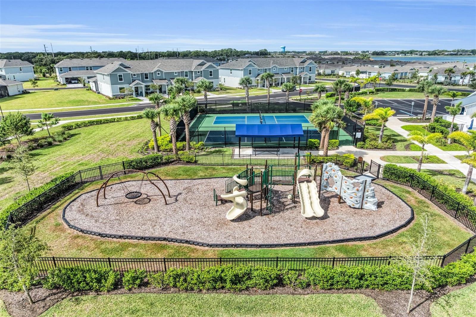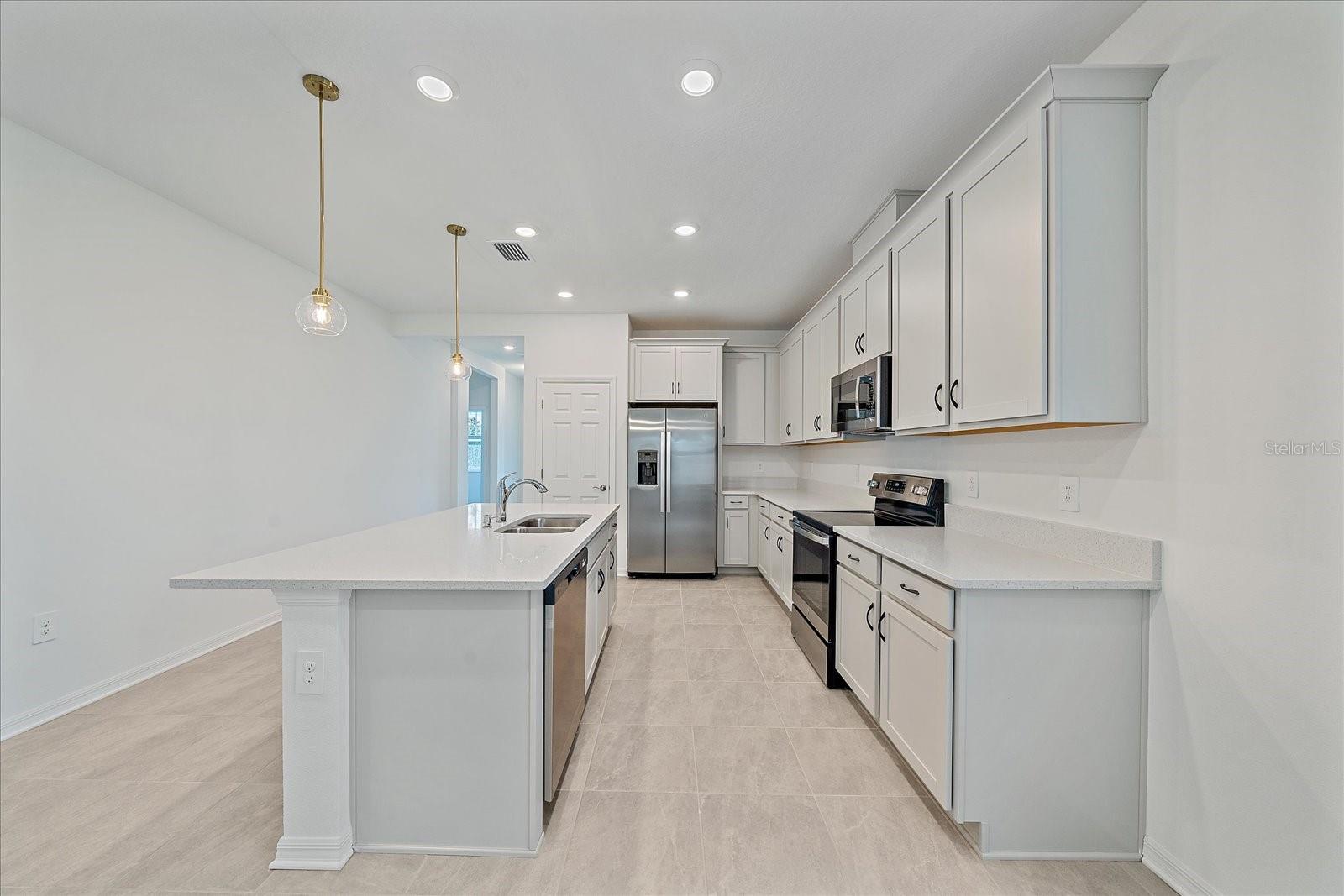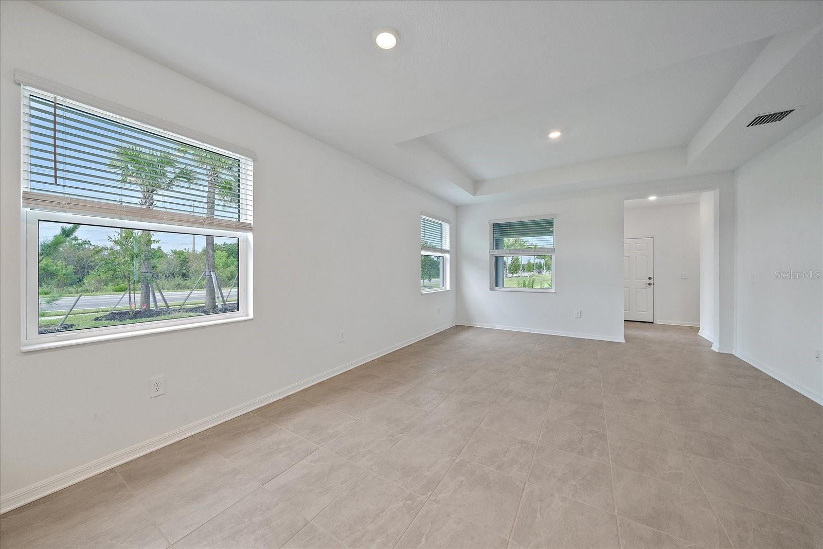 Perfectly positioned in Nautique at Waterside, this single-story M/I-built Bimini floorplan offers a walkable lifestyle just moments from the energy of Waterside Place. You'll enjoy lakefront dining, boutique shopping, community events, and the popular Sunday Farmers Market, all while being a short drive to downtown Sarasota and nearby Gulf beaches.The 1,743-square-foot layout includes 3 bedrooms, 2 baths, a flex room, and a two-car rear-load garage. The long foyer is flanked by two bedrooms and a shared bath on the right and a flex space, ideal for a home office or media room, on the left. The main living area features an open kitchen with abundant cabinet and counter space, a large island, quartz countertops, and tile flooring throughout the primary living spaces. The owner's suite is tucked off the great room and includes a spacious walk-in closet and a well-appointed bath with dual sinks and a large walk-in shower. A laundry room is located at the rear of the home before leading to the attached two-car garage, offering practical storage for beach gear, bikes, and seasonal items. The home is equipped with impact windows and doors throughout for peace of mind.Nautique amenities include a pool overlooking Kingfisher Lake, pickleball courts, a playground, a dog park, and miles of walking and biking trails. Lawn care and irrigation is included in the monthly HOA.