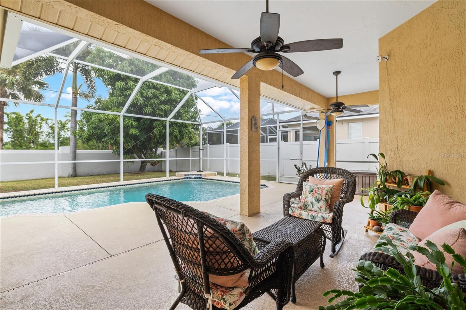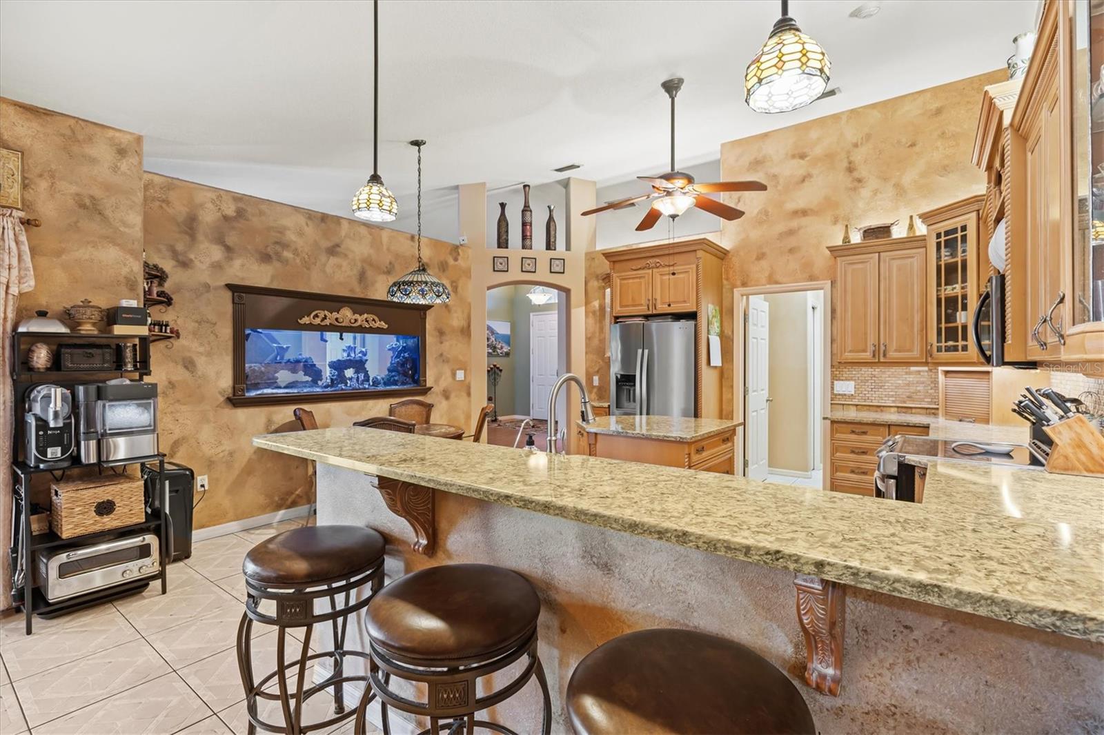 Welcome to Meadow Walk, where comfort and style come together in this stunning 4-bedroom, 2.5-bathroom pool home with a 3-car garage. Sitting on nearly a quarter-acre lot, this property showcases attractive curb appeal with beautifully maintained, low-maintenance landscaping. A screened front entry leads to double front doors, inviting you into a bright and spacious interior designed for both relaxation and entertaining.Inside, the foyer opens to soaring ceilings that create a grand first impression. The formal dining and living rooms are filled with natural light, and the living room features a unique two-way aquarium that connects to the kitchen, adding a touch of charm and character. The kitchen is a dream layout, offering abundant cabinetry, granite countertops, a large island, barstool seating, and a cozy breakfast nook. It seamlessly flows into the family room, highlighted by a tray ceiling and French doors that open to the lanai.The split-bedroom floorplan ensures privacy, with the owner's suite situated on one side of the home. The oversized suite features a tray ceiling, private sliding glass door to the pool area, walk-in closet, and a spacious ensuite bathroom complete with dual sinks, a soaking tub, and a separate shower. The additional three bedrooms are generously sized, with nearby bathrooms providing convenience for family or guests.Enjoy the practicality of an indoor laundry room with ample storage, and step outside to the screened-in lanai that's perfect for entertaining, featuring ceiling fans and plenty of lounging space around the sparkling pool. Beyond the screened area, a patio and fully fenced yard provide additional outdoor enjoyment and privacy.Ideally located near the scenic Celery Fields with beautiful walking trails, this home is close to premier shopping at UTC Mall, dining at Waterside, and within an A-rated school district including Tatum Ridge Elementary, McIntosh Middle, and Sarasota High School. This Meadow Walk gem truly has it all--schedule your private showing today!