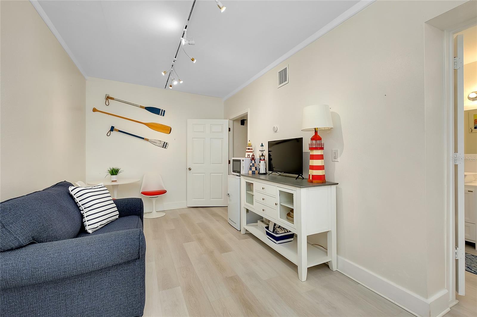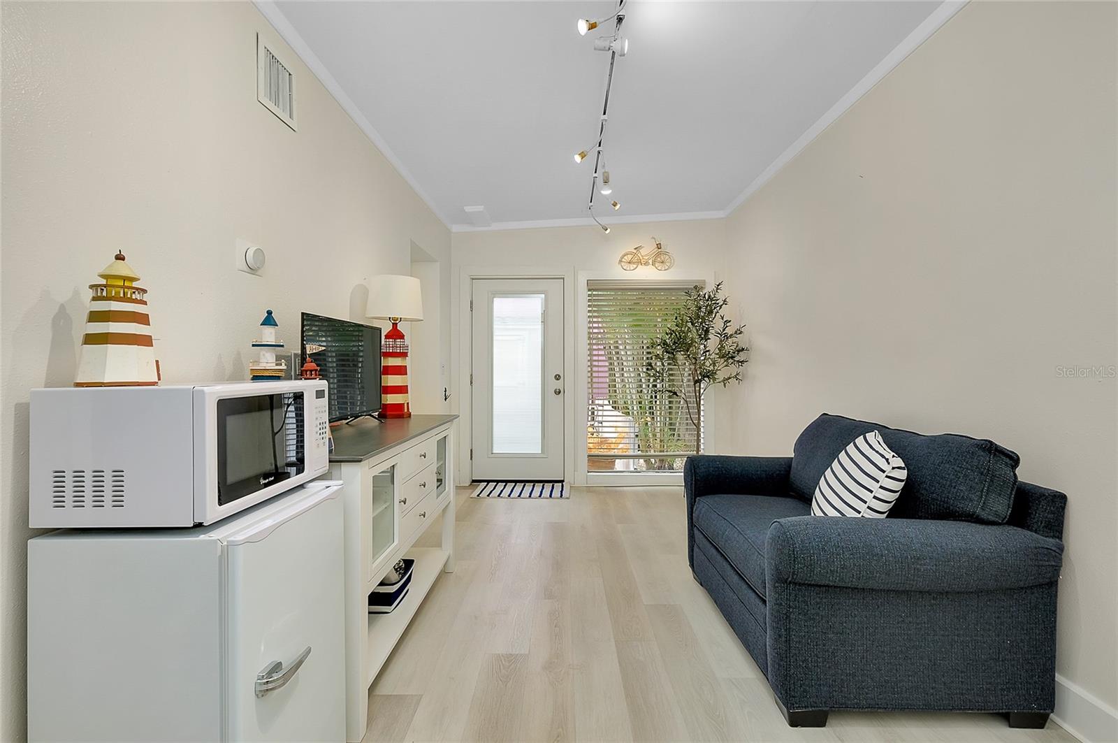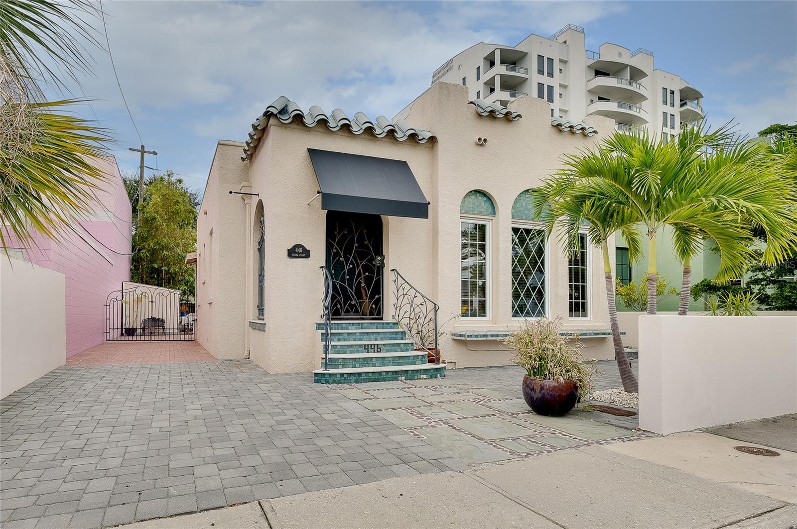 Nestled in one of Sarasota's most sought-after neighborhoods, this beautifully restored Burns Court residence offers the rare opportunity to own a true piece of Downtown history. Blending timeless charm with modern comfort, this property is ideal as a rental investment, a live-work setup, or simply a vibrant in-town retreat for those who crave the downtown lifestyle. The main home offers one bedroom and one and a half baths, thoughtfully remodeled to blend charm with modern comfort. High ceilings, gleaming wood floors, impact-rated windows, natural gas, and a whole-home water-filtration system enhance the living experience. The cozy living room centers around a classic fireplace, while the chef's kitchen shines with GE Caf appliances, solid wood cabinetry, stone counters, and a welcoming breakfast bar. The primary suite features a beautifully updated bathroom with double sinks, a large walk-in shower, and a custom closet system for optimal organization. Completing the home is an enclosed front porch -- a perfect spot to unwind and enjoy the day's end. A separate 1-bed/1-bath guest cottage extends the property's versatility, complete with a separate living space, kitchenette, and spacious bath with double sinks and a walk-in shower. The attached screened lounge--perfect for entertaining--opens to a private, brick-paved courtyard with a storage shed and lush tropical landscaping.With DTC zoning, the possibilities are endless--residential, rental, live/work, or even small business use (verify with city guidelines). Surrounded by multimillion-dollar condominiums, galleries, cafs, boutiques, and restaurants, this home puts you in the heart of it all. Just two blocks from Main Street and moments from the Sarasota Bayfront and marina, this residence places you at the heart of downtown living. Enjoy close proximity to Selby Gardens, Owen's Fish Camp, the Burns Court Cinema, and an array of local shops and cafs. Opportunities like 446 Burns Court are few and far between--don't miss your chance to own a landmark property in Sarasota's most vibrant and walkable district.