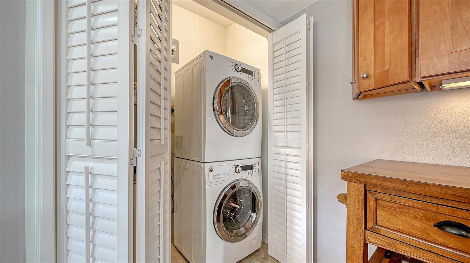 Rare Opportunity - This Coveted West of the Trail Community. Discover this exceptional corner residence located just steps from the Intracoastal Waterway in one of Sarasota's most sought-after communities, Baywood Colony Southwood. This beautifully remodeled 2-bedroom, 2-bath end unit offers abundant natural light through numerous windows adorned with plantation shutters. The inviting front screened lanai is fully enclosed with sliding glass panels and added plantation shutters for a moderns feel, providing the perfect space for year-round relaxation.The interior shows like a model home, featuring a gorgeous open kitchen with granite countertops, a wide breakfast bar, stainless steel appliances and top-of-the-line soft-close wood cabinetry with under-cabinet lighting. A washer and dryer are conveniently located inside the unit. Elegant tile flooring throughout. A/C system replaced in 2018, roof was replaced by HOA in 2019, and entire building was recently re-plumbed ensuring peace of mind. This ground-floor unit includes a covered parking space directly behind the residence, along with a secondary entry door from the carport for added convenience. Enjoy the Florida lifestyle in the saltwater heated pool, or play tennis and pickleball just steps from your door. Take a short walk to the Baywood Colony fountain to enjoy breathtaking sunsets over the bay. With only 32 condos in the community, residents enjoy a sense of privacy and tranquility reminiscent of a boutique resort. The location is ideal--just 2.2 miles to the nearest beach access and walking distance to Phillippi Estate Park, a scenic 60-acre natural area offering kayaking, fishing, nature trails, a playground, and a weekly Wednesday farmers market along with various community events such as art fairs, concerts, and cultural activities. This pet-friendly, maintenance-free community includes basic cable, exterior and grounds maintenance, roof and windows, and pest control all included in the low monthly fee of just $1,273 and best of all, it is not age-restricted. Experience the perfect combination of comfort, convenience, and coastal charm in this one-of-a-kind Sarasota retreat.