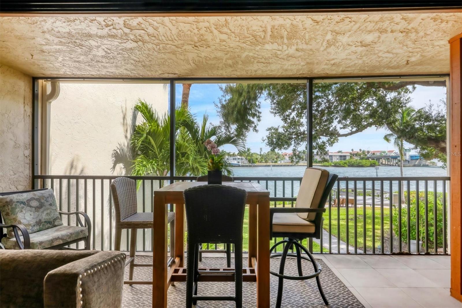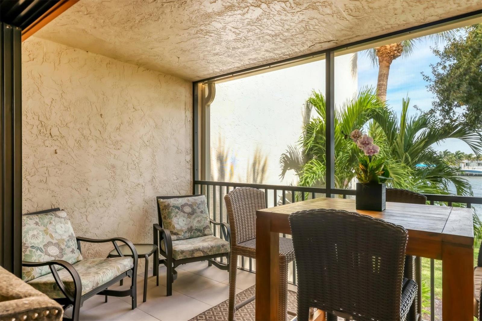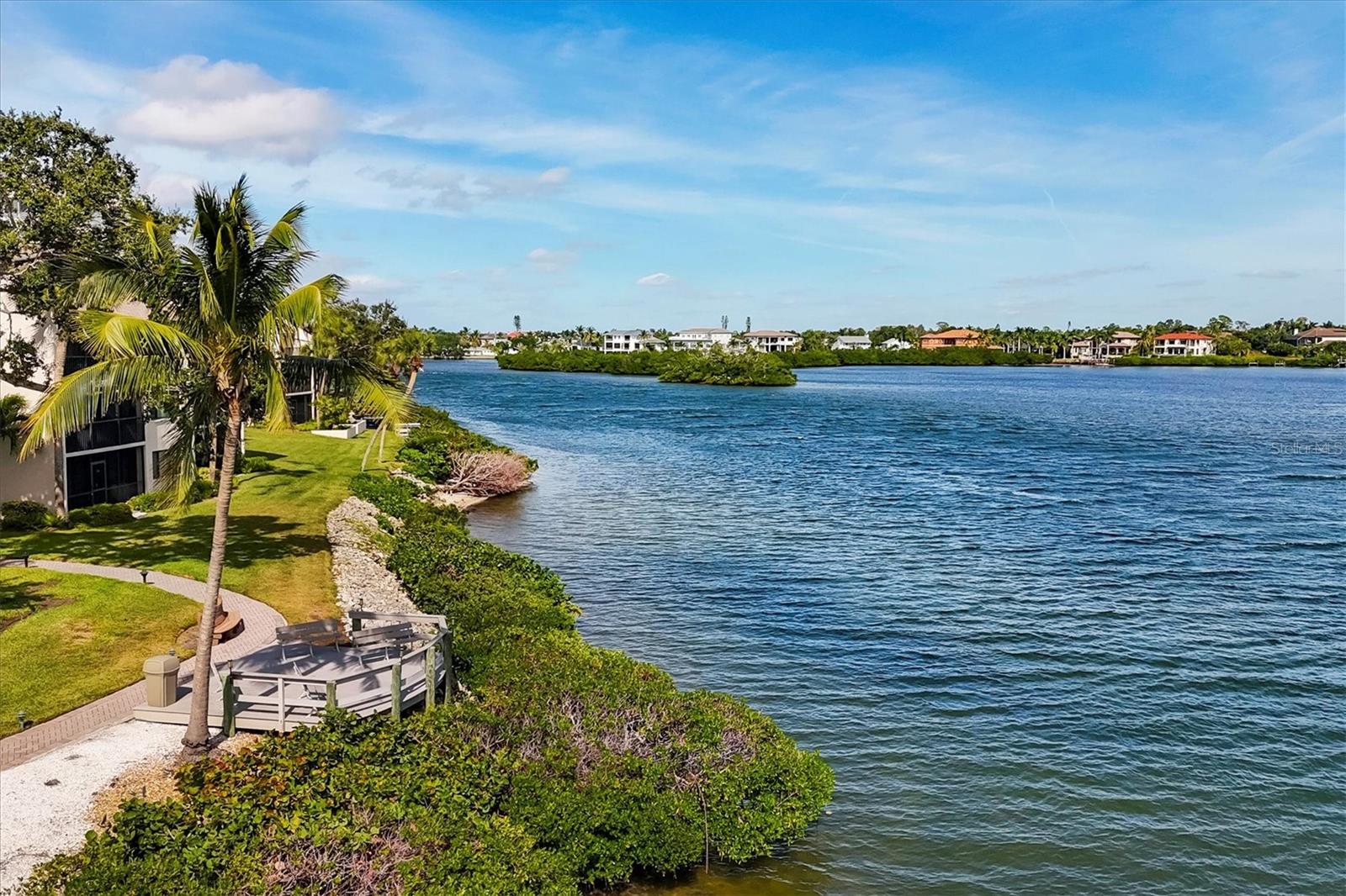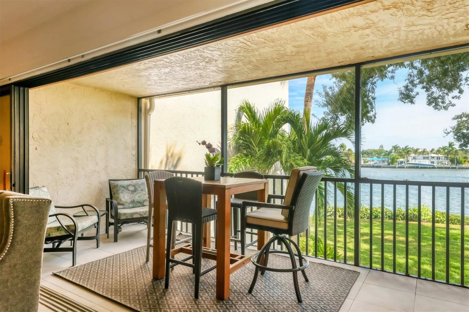 Welcome to this gorgeous WATER FRONT condo in desirable Midnight Cove II on beautiful Siesta Key! This coastal designed, TURNKEY furnished 2 bedroom beauty is move-in ready.. just bring your bathing suit and a toothbrush and you are off to the beach with its deeded walkway access or hop on your boat that you can dock just steps away! Huge glass sliding doors open to the screened and tiled lanai with a stunning and expansive view of the inter-coastal waterway and south bridge. It's your private birds eye view to watch boats, dolphins, birds and all the abundant nature in your own little piece of paradise! Kitchen is updated and charming with granite counters, soft close cabinets and drawers, a coffee bar and eat-on counter, all open to the tropical views and updated tiled living areas. Bathrooms are stylish with a newly tiled walk-in shower and raised vanities. Condo has a convenient laundry closet with washer and dryer, and an outside storage closet with plenty of room for your sports equipment and beach toys. If you are looking for a rental investment, it may be leased on a weekly basis and offers an onsite management company. The amenties are top-notch and include a heated pool, clubhouse, deeded beach access, direct inter-coastal waterway access, fishing, boat docks, basketball court, tennis/pickle ball courts, grilling areas, and kayak storage. Location of Midnight Cove II is sought after...walking distance to the local market, famed restaurants and bars, and shopping. Also it s close to pop over the bridge to the mainland to enjoy the arts scene, downtown and all else Sarasota has to offer! Or... jump on the free trolley.. access just outside of the community and it takes you to the bustle of the Siesta Village or to the South end of the island to Turtle Beach! So much to explore and enjoy in your new Siesta Key home! Buy a condo, and LIVE THE ISLAND LIFE-STYLE!
