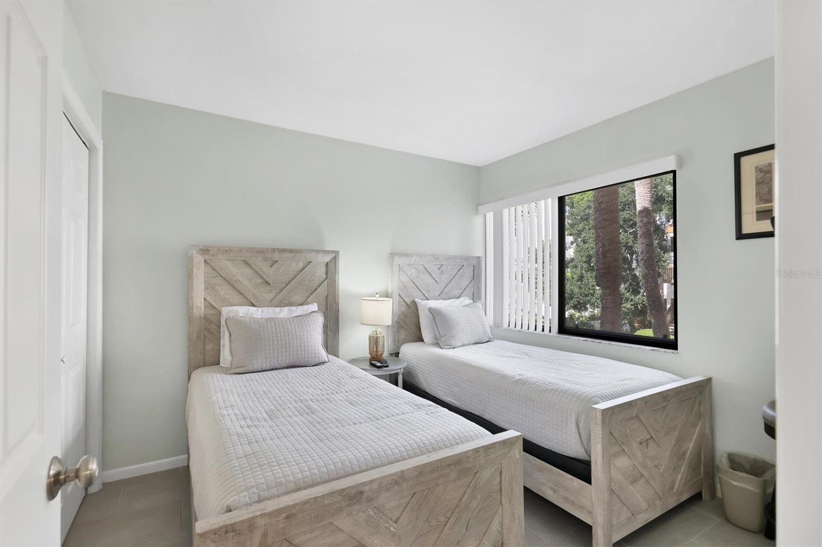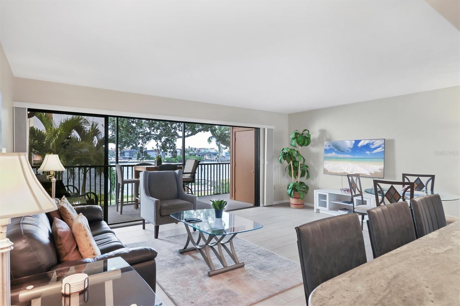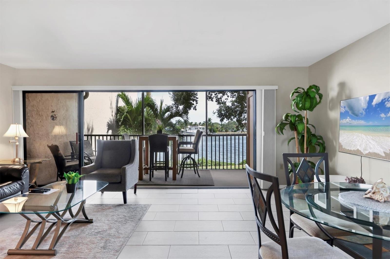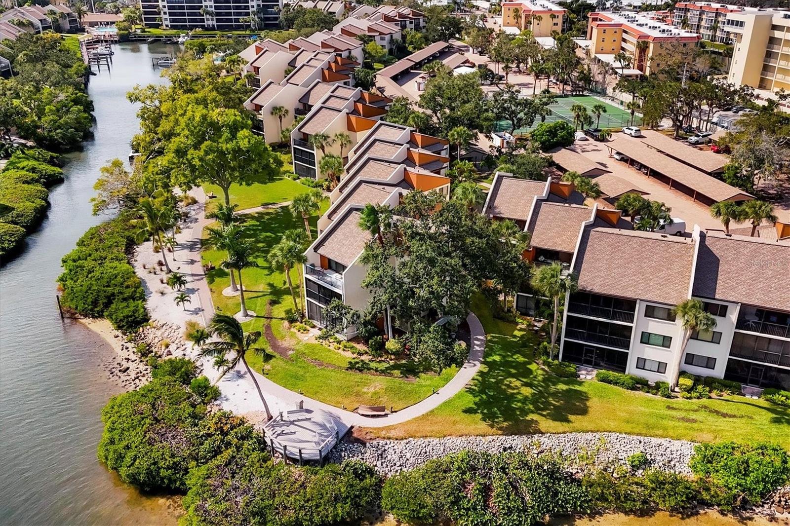 Welcome to this gorgeous WATER FRONT condo in desirable Midnight Cove II on beautiful Siesta Key! This coastal designed, TURNKEY furnished 2 bedroom beauty is move-in ready.. just bring your bathing suit and a toothbrush and you are off to the beach with its deeded walkway access or hop on your boat that you can dock just steps away! Huge glass sliding doors open to the screened and tiled lanai with a stunning and expansive view of the inter-coastal waterway and south bridge. It's your private birds eye view to watch boats, dolphins, birds and all the abundant nature in your own little piece of paradise! Kitchen is updated and charming with granite counters, soft close cabinets and drawers, a coffee bar and eat-on counter, all open to the tropical views and updated tiled living areas. Bathrooms are stylish with a newly tiled walk-in shower and raised vanities. Condo has a convenient laundry closet with washer and dryer, and an outside storage closet with plenty of room for your sports equipment and beach toys. If you are looking for a rental investment, it may be leased on a weekly basis and offers an onsite management company. The amenties are top-notch and include a heated pool, clubhouse, deeded beach access, direct inter-coastal waterway access, fishing, boat docks, basketball court, tennis/pickle ball courts, grilling areas, and kayak storage. Location of Midnight Cove II is sought after...walking distance to the local market, famed restaurants and bars, and shopping. Also it s close to pop over the bridge to the mainland to enjoy the arts scene, downtown and all else Sarasota has to offer! Or... jump on the free trolley.. access just outside of the community and it takes you to the bustle of the Siesta Village or to the South end of the island to Turtle Beach! So much to explore and enjoy in your new Siesta Key home! Buy a condo, and LIVE THE ISLAND LIFE-STYLE!