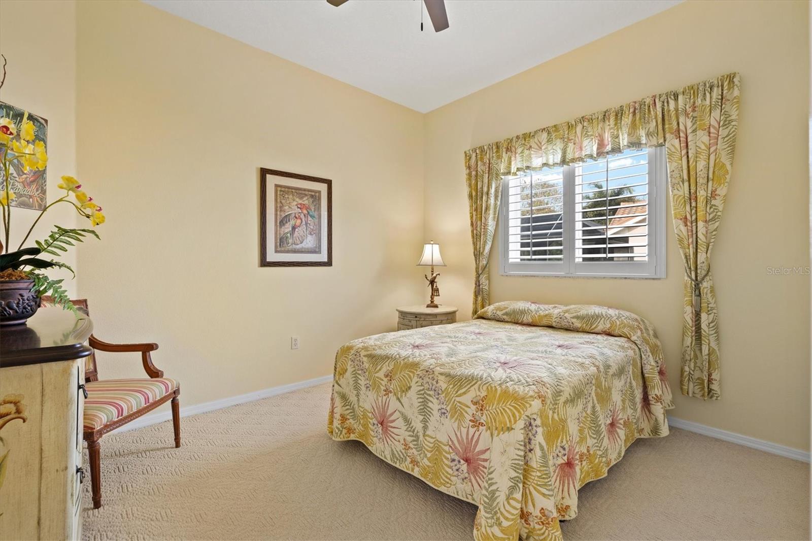 Located in the gated golf community of Calusa Lakes, this single-story pool home offers golf course views, a split-bedroom floor plan, and a highly desirable 3-car garage on a 0.28-acre lot. Surrounded by mature landscaping, a pavered driveway and double front doors create an inviting first impression.Inside, this 4-bedroom, 2-bathroom residence offers over 2,400 square feet of living space with high ceilings, crown molding, and impact windows throughout, creating a bright and move-in-ready feel. Formal living and dining areas provide space for entertaining, while the open kitchen and family room layout is ideal for everyday living. The kitchen features ample cabinetry, generous counter space, and an eat-in nook overlooking the pool.The family room is anchored by a stone wood-burning fireplace, adding warmth and character. The owner's suite offers private lanai access, dual walk-in closets, and an ensuite bath with dual sinks, soaking tub, and separate walk-in shower. The fourth bedroom is currently used as a TV room and easily functions as a home office or flex space. Bedrooms two and three are located on the opposite side of the home with a guest bath in between. An indoor laundry room with utility sink and storage adds everyday convenience.Step outside to the screened lanai and heated pool, resurfaced in 2017 with travertine tile, overlooking the serene golf course setting. Thoughtfully placed landscaping provides privacy while preserving the view, creating a true outdoor retreat.Calusa Lakes is a gated community with low HOA fees and no CDD, set among 460 acres of preserved pines, oaks, lakes, and natural beauty. Residents enjoy 28 lakes, a semi-private 18-hole golf course with optional membership, Har-Tru tennis courts, clubhouse dining, and an active lifestyle. Conveniently located in Nokomis between Sarasota and Venice, with easy access to I-75, shopping, dining, boating, the Legacy Trail, and Nokomis Beach.