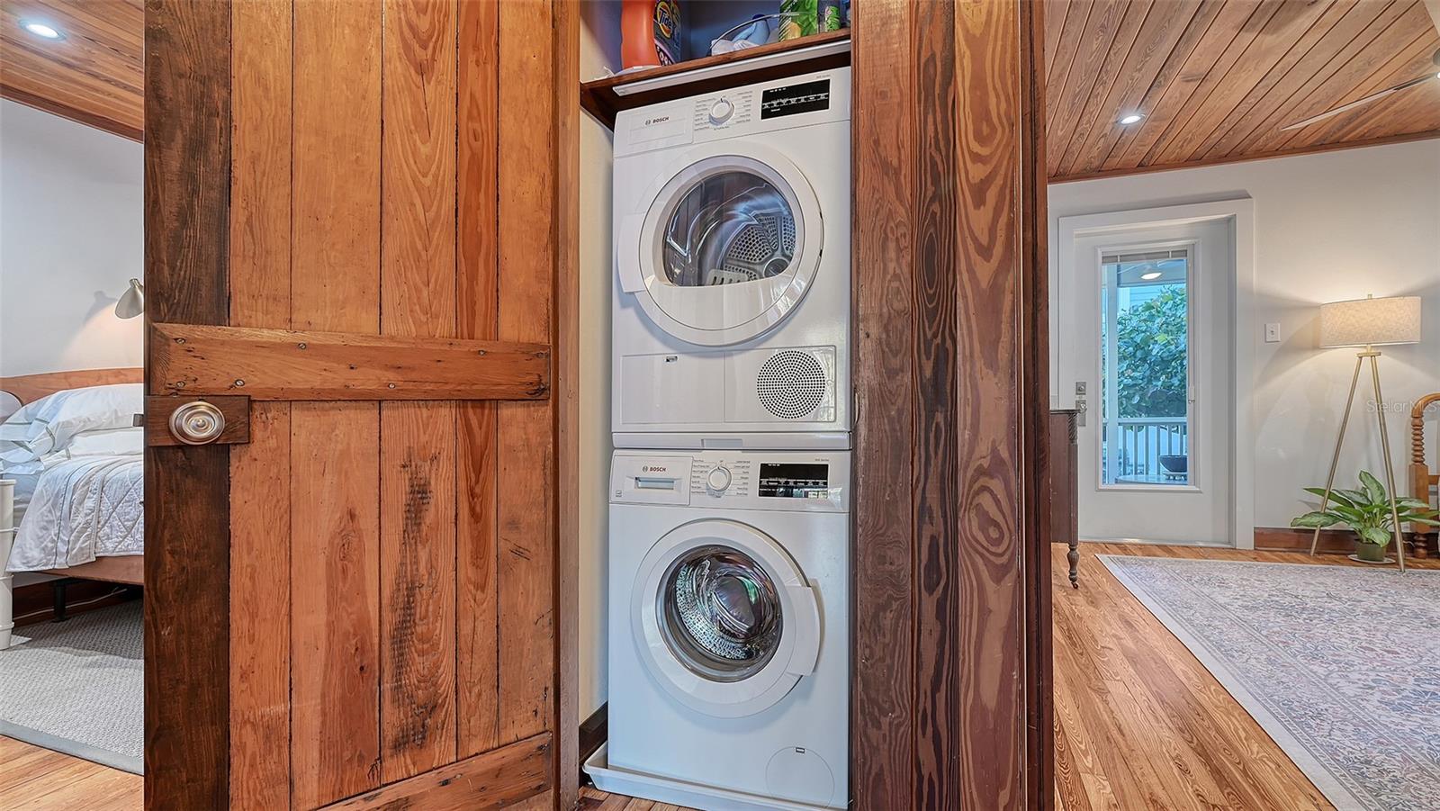 Own a piece of Sarasota history, the sought-after Frederickson Home - a 1939 bungalow in Laurel Park. Meticulously and completely restored in 2022 to preserve its historic charm while incorporating modern luxury. Originally hand-built from old Florida pine by master craftsmen, this historically designated home underwent an extensive renovation, including a new foundation, plumbing, electrical wiring, HVAC, and roof. The original windows were fully restored by artisans from Wood Window Makeover - School of Window Craft. The main house features two bedrooms, two bathrooms, a family room, and a sunroom, with the primary suite offering an en suite bath. A professionally designed eat-in kitchen, screened back porch, and water softener system add to the home's functionality and style. Enhancing the property is a newly constructed detached twostory accessory dwelling, completed in 2023. Built to hurricane-rated standards, it includes a climate-controlled two-car garage with epoxy floors, an EV charger, a home gym, a workshop, and ample storage. The second-floor one-bedroom, one-bath apartment with a full kitchen and walk-in closet is perfect for guests, a home office, or rental income. Thoughtful details, such as windows trimmed with historic salvaged pine, ensure the addition seamlessly blends with the original home. Located outside the flood zone, this private retreat is secured by a gated six-foot privacy fence and features a secluded yard and patio. Just blocks from downtown Sarasota, enjoy easy access to top restaurants, the Farmers Market, Selby Gardens, Payne Park, and the Legacy Trail. This is a rare opportunity to own a historically designated home, beautifully restored for modern living.