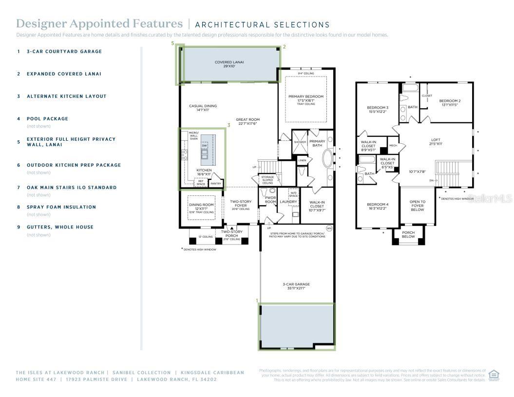 Under Construction. A custom designed private pool with hot tub, sun shelf, and water features can be enjoyed while soaking in the water views from this East-facing home site. The Kingsdale's welcoming covered entry and two-story foyer open immediately onto a beautiful flex space with coffered ceiling, stunning great room, and desirable covered lanai beyond. The well-designed kitchen overlooks a bright casual dining area, and is equipped with a large center island with breakfast bar, ample counter and cabinet space, and roomy pantry. The lovely primary bedroom suite is highlighted by a coffered ceiling, expansive walk-in closet, and deluxe primary bath with dual vanities, large soaking tub, luxe glass-enclosed shower with seat, linen storage, and private water closet. Secondary bedrooms feature sizable closets, one with private full bath, two with shared full hall bath with dual-sink vanity. Additional highlights include a generous loft, convenient powder room, 3 car garage, and additional storage space. Schedule an appointment today!