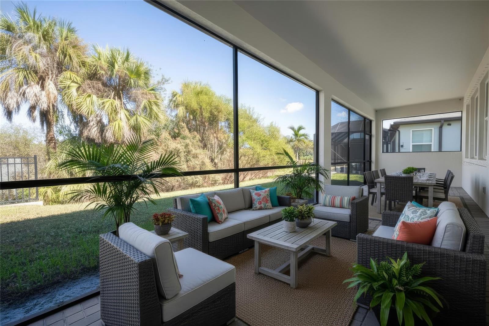 Welcome to this beautifully upgraded residence in the sought-after community of Trevesta, where four generously sized bedrooms and three full baths await. From the moment you arrive, you'll appreciate the exceptional curb appeal: fresh landscaping, a paver driveway leading to the three-car garage, and a custom glass front door that hints at the high level of finish within. Enter into a bright, open floor plan that bathes in natural light and offers effortless flow. At the heart of the home is a chef-ready kitchen -- stainless steel appliances, built-in oven and microwave, quartz countertops, stylish tile backsplash, large island, and a walk-in pantry with custom shelving -- all designed for performance and style. The kitchen opens seamlessly to the great room, supporting both everyday living and entertaining. In the great room, master suite has oversized picture windows and window treatments add a touch of architectural character and help preserve the beautiful views of the outdoor space.The master suite offers a true retreat, complete with a large walk-in closet featuring double sides, and an ensuite bath with dual sinks, quartz countertops, and a beautifully tiled Roman walk-in shower with rain showerheads. The additional bedrooms are spacious, well-appointed, and ready for family or guests. Step outside into your private oasis with preserve view: a screened lanai and fully fenced backyard with no rear neighbors -- perfect for relaxing, grilling, or hosting gatherings while preserving your view of open green space or nature behind. Additional upgrades include epoxy flooring, gutters, irrigation system, and hurricane shutters.Residents of Trevesta enjoy resort-style living: a zero-entry pool with cabanas, a splash pad and playground, a 5,600 sq ft clubhouse with on-site management, a 24-hour fitness center, and scenic lakeside walking and jogging trails. HOA fees include basic cable, internet and irrigation. Dunkin Donuts, Pizza, Jeremiah Ice, dollar stores, Pet stores right in front of the community, and Publix is 5 min away. With quick access to major highways, world-renowned beaches, and the cities of St. Petersburg, Tampa, Bradenton, Lakewood Ranch and Sarasota, this home offers thoughtfully designed modern upgrades in a tranquil setting. Don't miss the opportunity to make this stunning Trevesta home yours!