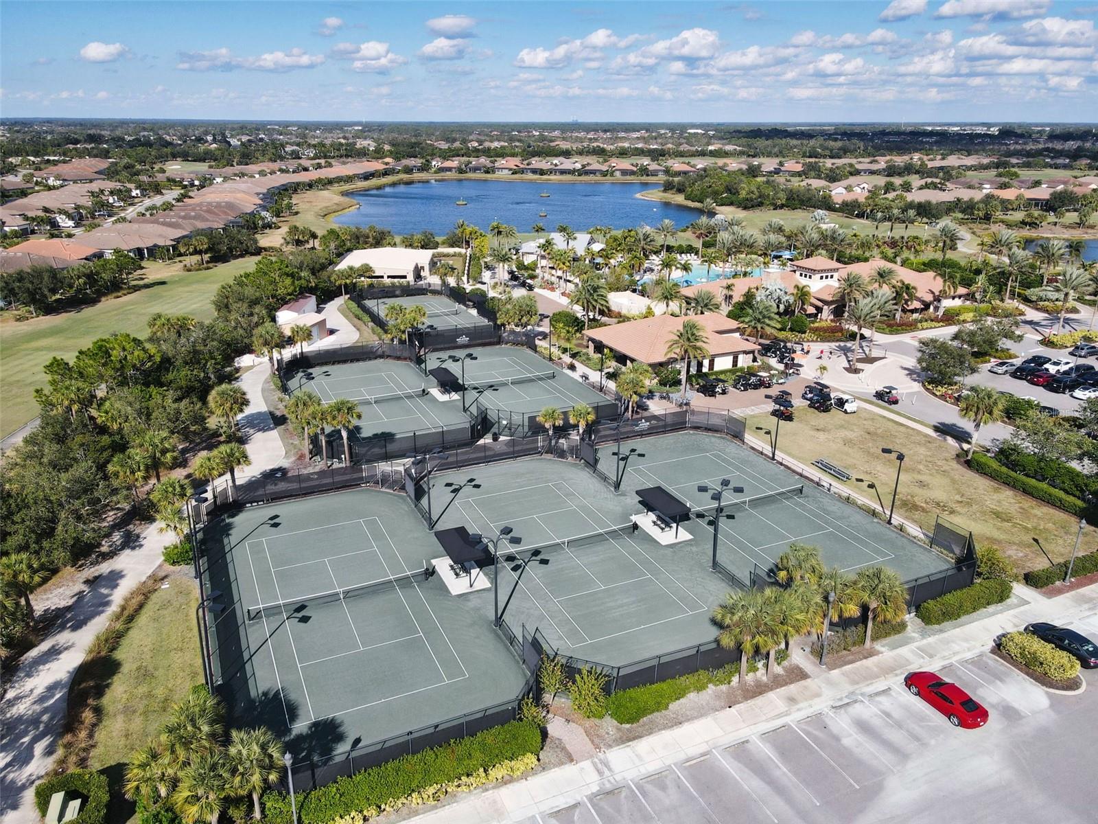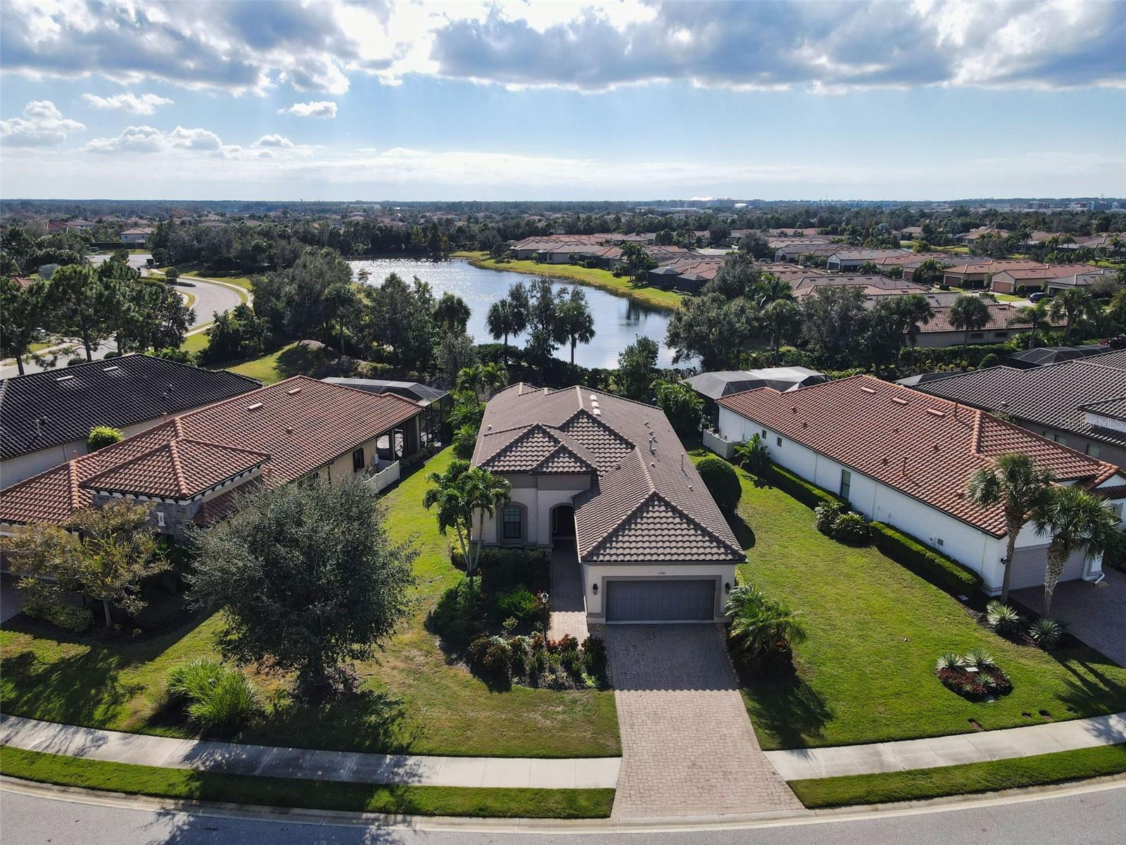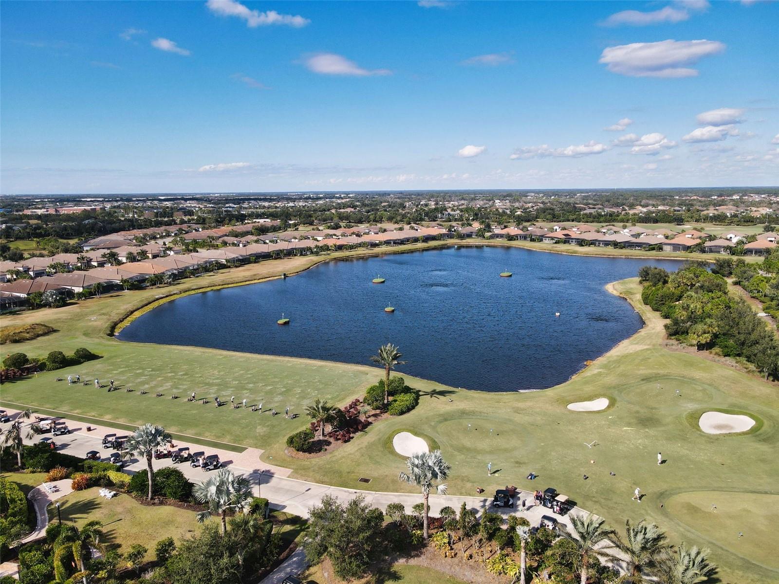 Welcome to 5242 Napoli Run, an exceptional residence located in the highly desirable Esplanade Golf & Country Club in Lakewood Ranch. This beautifully upgraded 2-bedroom plus den/office, 2.5-bath home offers 2,053 sq. ft. of elegant living space and includes a golf-deeded homesite, providing golf membership for two--all included in the HOA fees. Step inside to discover a thoughtfully designed floor plan enhanced by premium upgrades throughout, including stylish flooring, upgraded bathrooms, and custom closets that elevate both comfort and functionality. The spacious gourmet kitchen and open-concept living areas make this home ideal for entertaining or enjoying quiet evenings in.One of the standout features of this property is its expansive screened-in back porch, complete with a built-in outdoor gas fireplace--perfect for year-round relaxation. The backyard offers exceptional privacy with lush landscaping and a tranquil pond view just beyond, creating a serene outdoor retreat. Esplanade is renowned for its amenity-rich lifestyle, featuring a resort-style community pool, tennis courts, pickleball courts, a state-of-the-art fitness center, on-site restaurant, Tiki bar, and beautifully maintained walking paths. With its vibrant community atmosphere and unparalleled amenities, Esplanade remains one of Lakewood Ranch's most sought-after neighborhoods.Updates completed recently in this home include: New quartz countertops, new showers, LVP flooring in bedrooms and office, custom closets, new light in kitchen/foyer, plantation shutters, new hot water heater (2025) and hurricane screens on all Lanai/porch openings. **Some photos have been virtually staged.