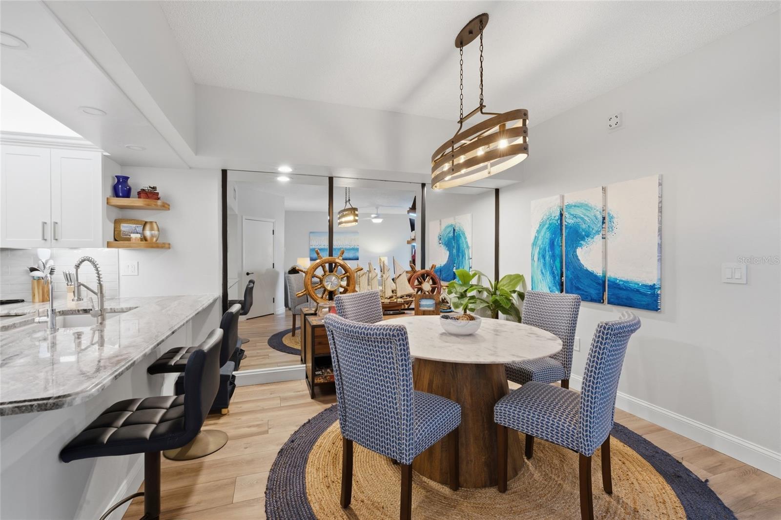 Stunning TURNKEY, fully updated first-floor condo in the highly desirable Ashton Lakes community--just minutes from world-famous Siesta Key! This beautifully renovated 2-bedroom, 2-bath residence is truly move-in ready and includes an assigned covered parking space with a relaxing lake and fountain view. Step into the living room featuring custom built-in shelving, a shiplap accent wall with an electric fireplace and mantel, and an open layout connecting the dining area and breakfast bar. The modern kitchen boasts solid white cabinetry, quartz countertops, tiled backsplash, and stainless-steel appliances. The primary suite offers a walk-in closet and an updated en-suite bath with a walk-in tiled shower. The guest bedroom is roomy, with an adjacent updated bath, a custom tile floor and a tub. Enjoy peaceful lake views from the screened lanai, complete with a built-in refurbished Jenn-Air electric grill--perfect for year-round outdoor living. Recent upgrades include luxury vinyl plank flooring, updated lighting, ceiling fans, and recently replaced appliances. This condo is offered TURNKEY and furnished with newer furniture, making it an ideal winter retreat investment property or full-time residence. Ashton Lakes offers exceptional amenities: 2 community pools (one heated, with lap lane), 4 pickleball courts, 2 tennis courts, clubhouse, shuffleboard, grilling areas, and boat/RVparking. A private footbridge provides direct walking access to shopping with grocery, pharmacy, hardware, dining, and more--including Detwiler's Farm Market. With easy access to I-75, US-41, top-rated beaches, parks, shopping, restaurants, schools, and medical facilities, this condo is perfectly positioned for convenience and coastal living. Monthly or longer rentals up to 4 times per year are permitted. Come discover your slice of paradise in one of Sarasota's most beautifully maintained communities!