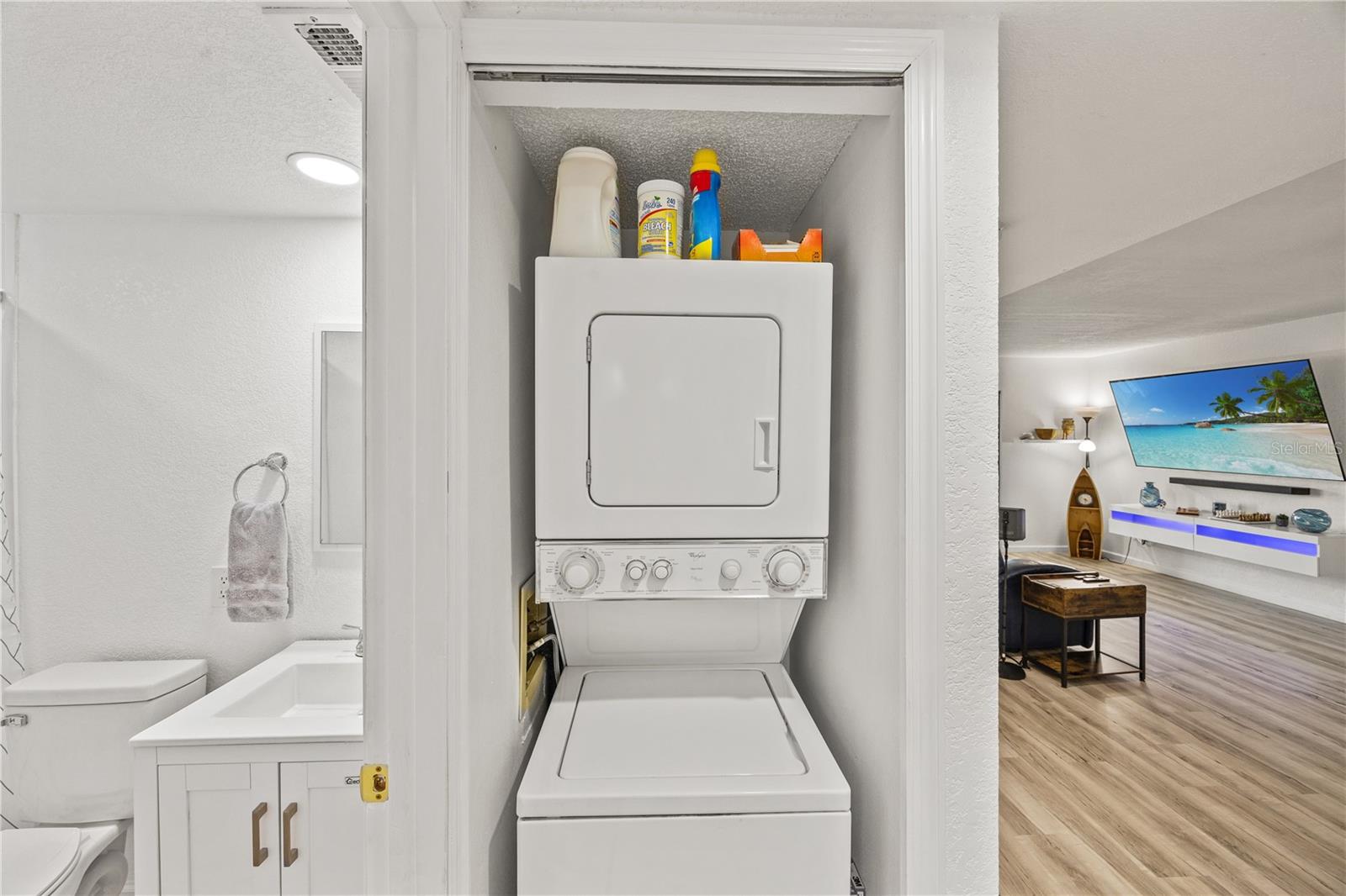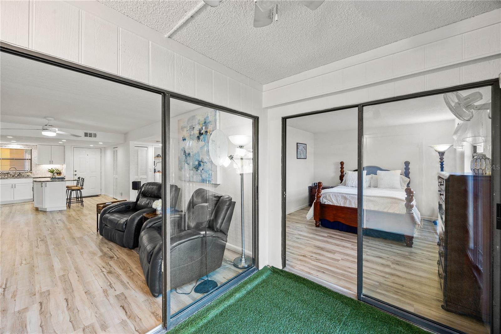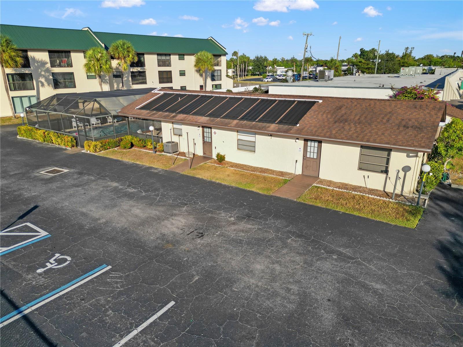 Welcome to an impeccably renovated, two-bed, two-bath, 2nd floor corner condominium, perfectly situated within a highly sought-after 55+ active community. This bright and inviting unit has been transformed with high-end, contemporary finishes designed for sophisticated, maintenance-free living. It is perfect for the "turn-key retiree", the "social" snowbird or the "modern" down-sizer. The residence boasts brand new hi-end laminate flooring through-out, a brand-new gourmet kitchen, featuring premium quartz counter-tops, a full suite of stainless steel appliances, and abundant cabinet space. Throughout the unit, you will find a fresh interior paint palette complemented by stylish, newly installed fans and light fixtures, enhancing the modern aesthetic. The open-concept layout maximizes the outdoor view, ensuring the owner can enjoy it even while in the kitchen. The spacious primary bedroom suite offers a true sanctuary, complete with direct access to a private, screened lanai. The bedroom includes generous storage solutions, supplemented by an additional dedicated storage closet on the lanai.Residents enjoy a superior array of amenities, including a screened, heated swimming pool, a well-appointed clubhouse with a catering kitchen, and a shuffleboard court. The unit conveys with a deeded, assigned covered parking space. A brand new, metal roof ensures year of worry free living.The comprehensive monthly association fees provide exceptional financial value, covering essential utilities such as water, sewer, trash, as well as high-speed internet and basic cable, ensuring a truly worry-free lifestyle.This is a pet-free community that maintains a commitment to stability and quiet enjoyment.The location offers unmatched convenience, with effortless access to major shopping centers, diverse dining options, comprehensive medical facilities, and scenic waterfront parks.This condominium offers the perfect synthesis of comfort, convenience, and vibrant community living.