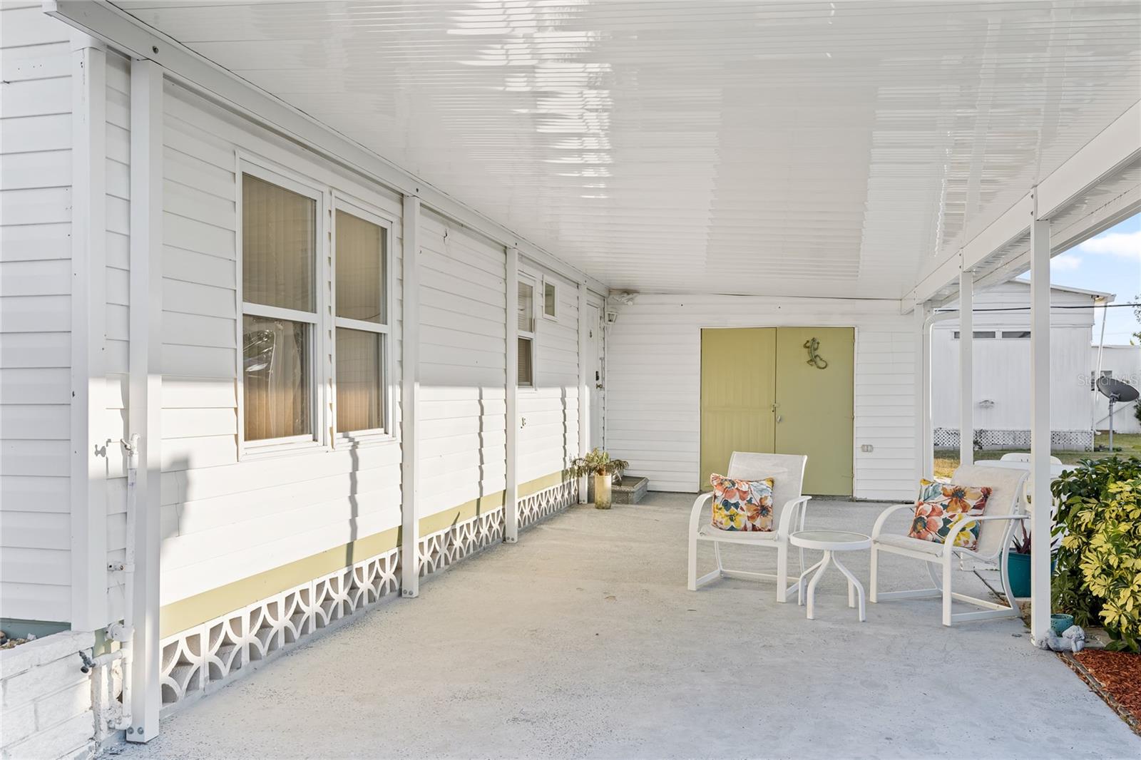 ASK ABOUT OWNER FINANCING! Located in desirable, gated 55+ Leisure Lake Co-Op! 1 spacious primary bedroom with bathroom & easy walk in shower plus lanai/bonus room that can be used as a 2nd bedroom. This bonus area is appointed with a wall AC for year round comfort & a separate bathroom also with walk in shower & separate entrance. New carport May 2025 would fit two cars nicely! Newer windows. Cute, light and bright and move in ready. Sold turn key furnished. Stackable washer & dryer stay. Two storage sheds for extra storage. Community pool is heated. Amenities include pickleball, tennis court & shuffle board, fitness center, clubhouse, laundry & library. Active & golf cart friendly community with year round activities. Located on a quiet street with no thru traffic. Free shuttle to the Palmetto bus station & about a mile away to the 7-11. (Certain streets in Leisure Lake allow pets but not Peace Manor). Close to 275, 41 & 301, Walmart is under 3 miles away & within an hour of 3 major airports: Tampa International, Clearwater/St Pete & Bradenton/Sarasota. LOW LOW HOA $212/mo includes mowing 1x week, water, trash, recycling & sewer.