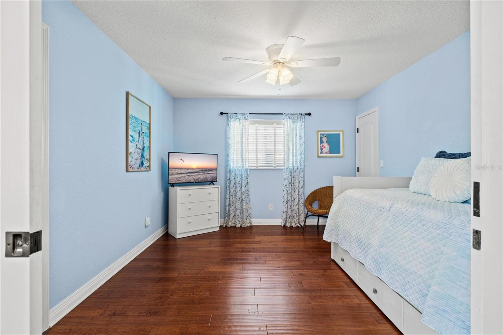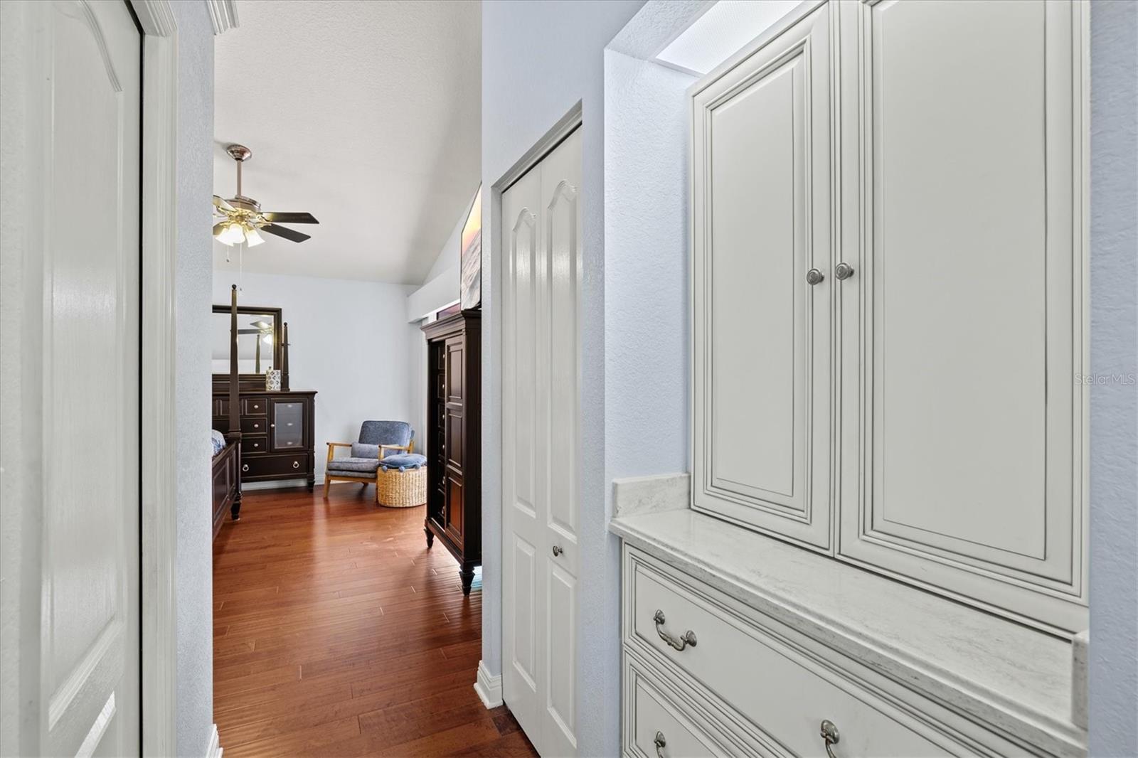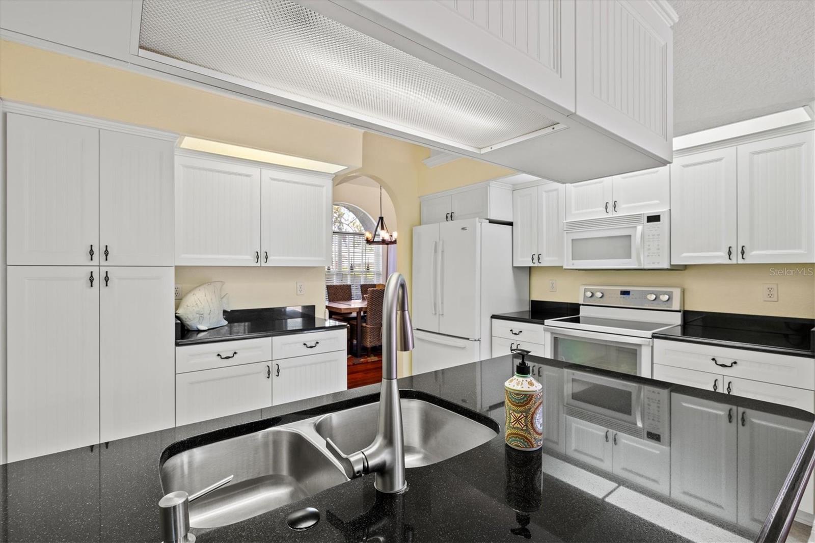 Welcome to your new home in the sought after Lake of the Woods community. Situated on 0.20 acres, this 3 bedroom, 2 bathroom home with a 2 car garage is move in ready with a brand new roof installed in Spring 2025. The neighborhood offers low annual HOA fees, no CDD fees, and a prime location just five minutes from historic Venice Island. This coastal community keeps you close to the water without the worry of a flood zone, so no flood insurance is required. Attractive curb appeal welcomes you the moment you arrive, with refreshed landscaping, new plantings, and sidewalks winding through this beautiful tree-lined setting. Through the double doors, you will find more than 1,800 square feet of interior living space with an ideal layout, soaring ceilings, and abundant natural light. Hardwood flooring and crown molding run throughout the home, and your eyes are immediately drawn to the pocket sliding doors that open to the lanai and create a seamless indoor outdoor living experience. The formal dining room sits just off the kitchen for easy entertaining and is lined with classic beadboard wainscoting that adds character to the space. The kitchen provides plenty of storage with ample cabinet space, granite countertops, barstool seating, a nearby breakfast nook, and a built in desk overlooking the backyard. An indoor laundry room adds everyday convenience. The oversized owner's suite features sliding glass door access to the lanai, a large walk in closet, and a spacious ensuite bathroom with dual sinks, a soaking tub, and a separate stand up shower. The split bedroom floorplan offers privacy, with the additional bedrooms located near the guest bathroom, and one bedroom enjoying direct access to it. The third bedroom offers flexible use and can easily serve as a guest room, cozy den, or a home office to suit your needs. The extended lanai is the perfect spot to unwind at the end of the day. Additional upgrades include a newer AC unit, newer water heater, updated sprinkler and pump system, and a garage with built in features and additional cabinetry ideal for a workshop. Lake of the Woods residents enjoy miles of scenic walking and biking paths throughout this welcoming master planned neighborhood. Within minutes you can explore historic downtown Venice Island with its boutiques, cafs, farmers markets, and concerts in the park, as well as the brand new Wellen Park Town Center for shopping, dining, and entertainment. For beach lovers, Venice Beach and the iconic Sharky's Pier are just a short drive away, and world famous Siesta Key is only 35 minutes from your doorstep. What more could you ask for? Schedule your showing today.