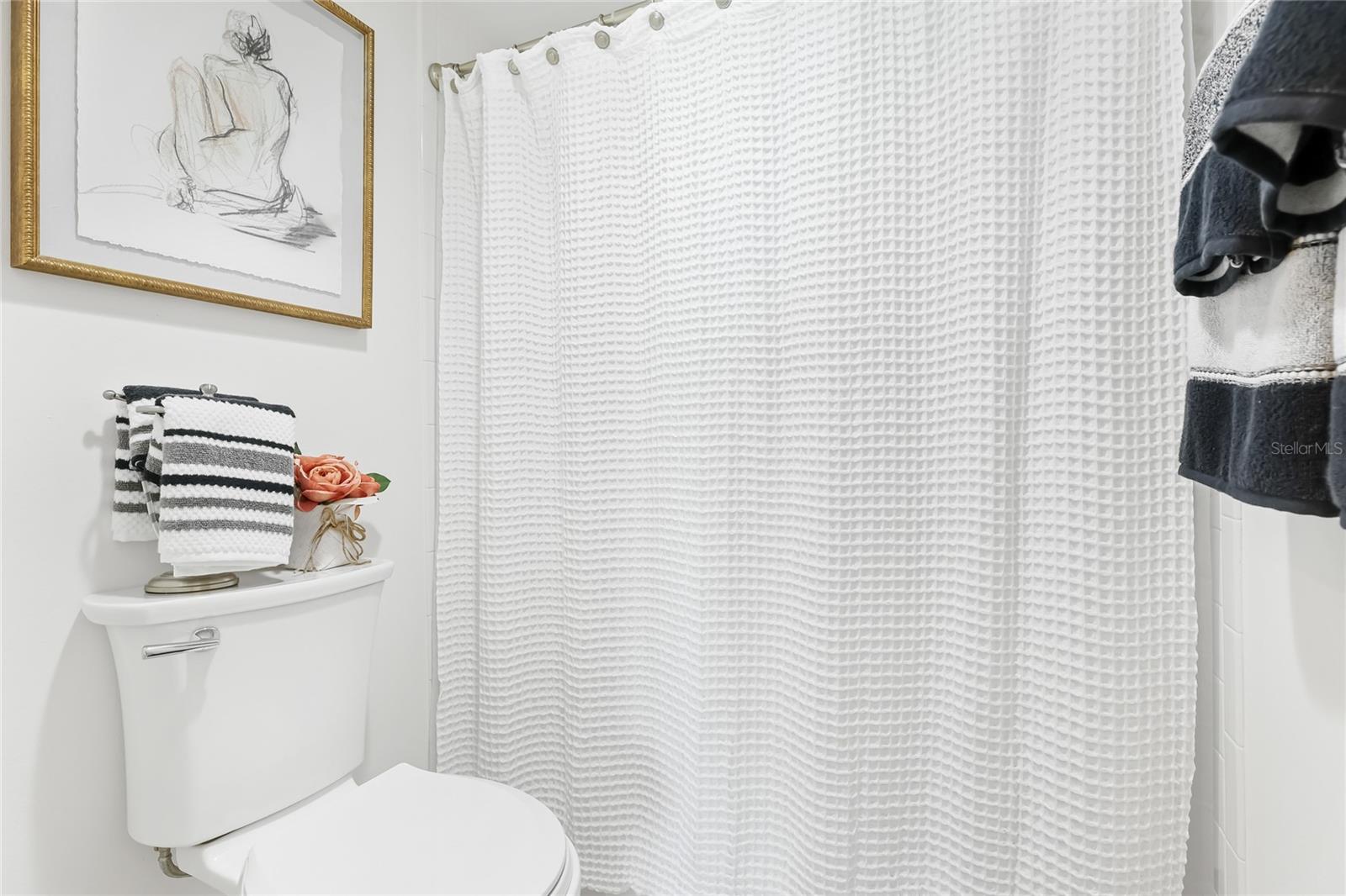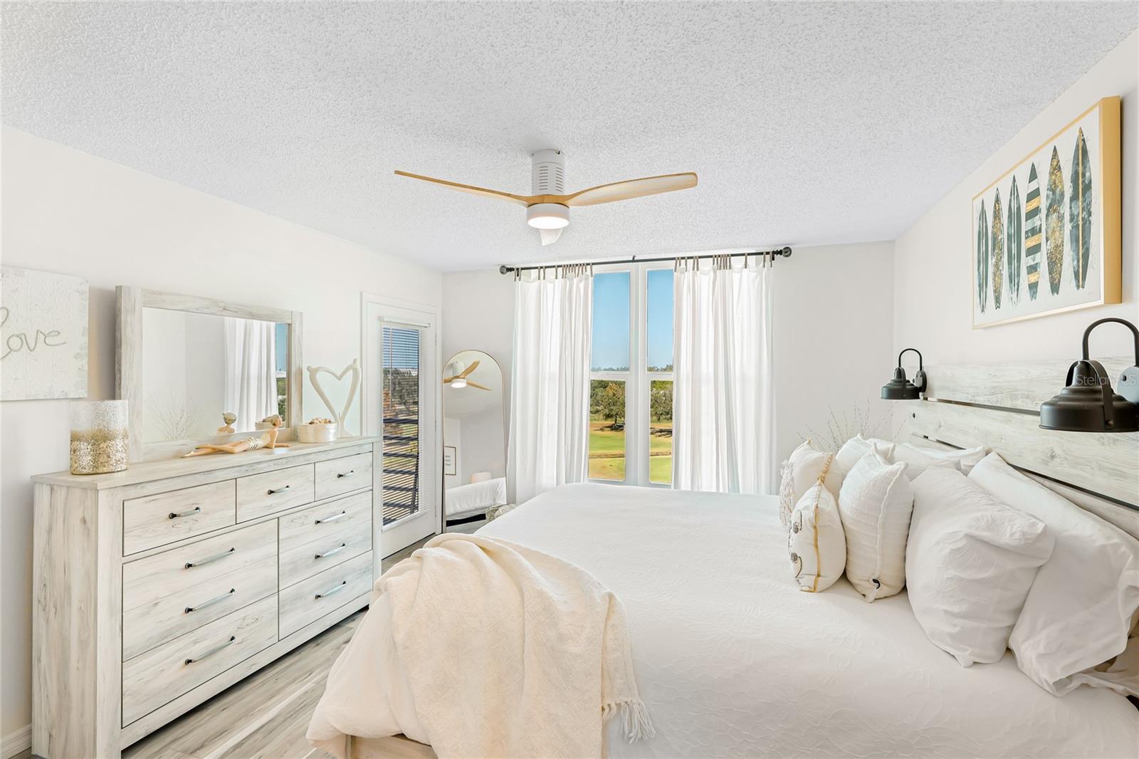 Beautifully updated turnkey 2 bed 2 bath condo overlooking the golf course! Welcome home to this elegant & upscale space. Rest & recharge on your light & bright lanai with your morning coffee. This unit faces north and stays cool & comfortable, affords low energy bills & all new HVAC in 2023. Completely remodeled kitchen in 2023 features high end lighting, new coastal grey lower cabinets, white uppers, floating custom built pine shelves with industrial hardware, granite countertops & matching backsplash with breakfast bar opening up to the dining room, farmhouse sink & custom built pantry with solid Knotty Pine, wainscot backdrop accent wall & tons of storage. Top of the line LG Smart Appliances with EasyClean Print Proof Stainless Steel full size double door refrigerator with your choice of craft or ball ice for all your get togethers, stove has fan convection & air fry & high end LG dishwasher with 3rd rack & dynamic dryer. Beautiful 2" luxe grey blinds in dinette & front bedroom & luxury vinyl coastal flooring in both bedrooms. 16x16 ceramic tile in main living area has been professionally steamed & acid washed after the remodel & a custom built in electric fireplace with nickel gap facade & solid pine mantel that offers charm & ambiance to this one of a kind space. Escape to your master bedroom that also boasts golf course views & has a private entrance to the lanai & spacious en suite with sophisticated vanity, mirror, sink, new stylish lighting & wainscot accent wall, separate walk in shower for all ages & huge walk in closet. Rare size brand new full size washer & dryer & laundry room inside of your unit to use at your convenience. this is a split bedroom designed for privacy and the front bedroom is right next to the full bath with tub/shower & new vanity. Professionally painted throughout & all new base boards. Covered 1st floor parking garage & assigned space is only a couple of footsteps to the elevator. The building has been newly renovated with a new roof, all new paint, elevator & staircase have been updated & all assessments have been paid. This building is only one of four that has a private pool plus the clubhouse heated pool & includes an exercise room, library, gazebo & grilling area with a very nice built in cooking station. Located just 30 min to Sarasota/Bradenton airport & an hour from Tampa Intl, close to Blake Medical, shopping, dining & only 15 min to world class Anna Maria Island beaches! This community is open to all ages & is NOT 55+ only!