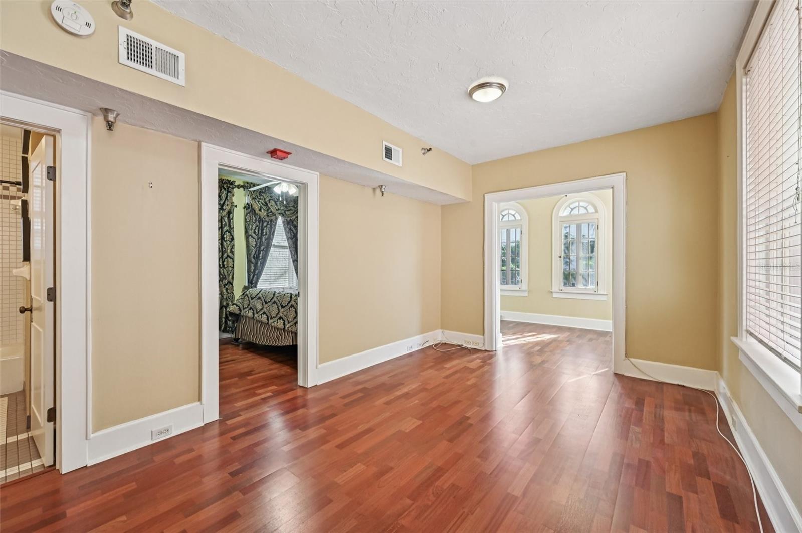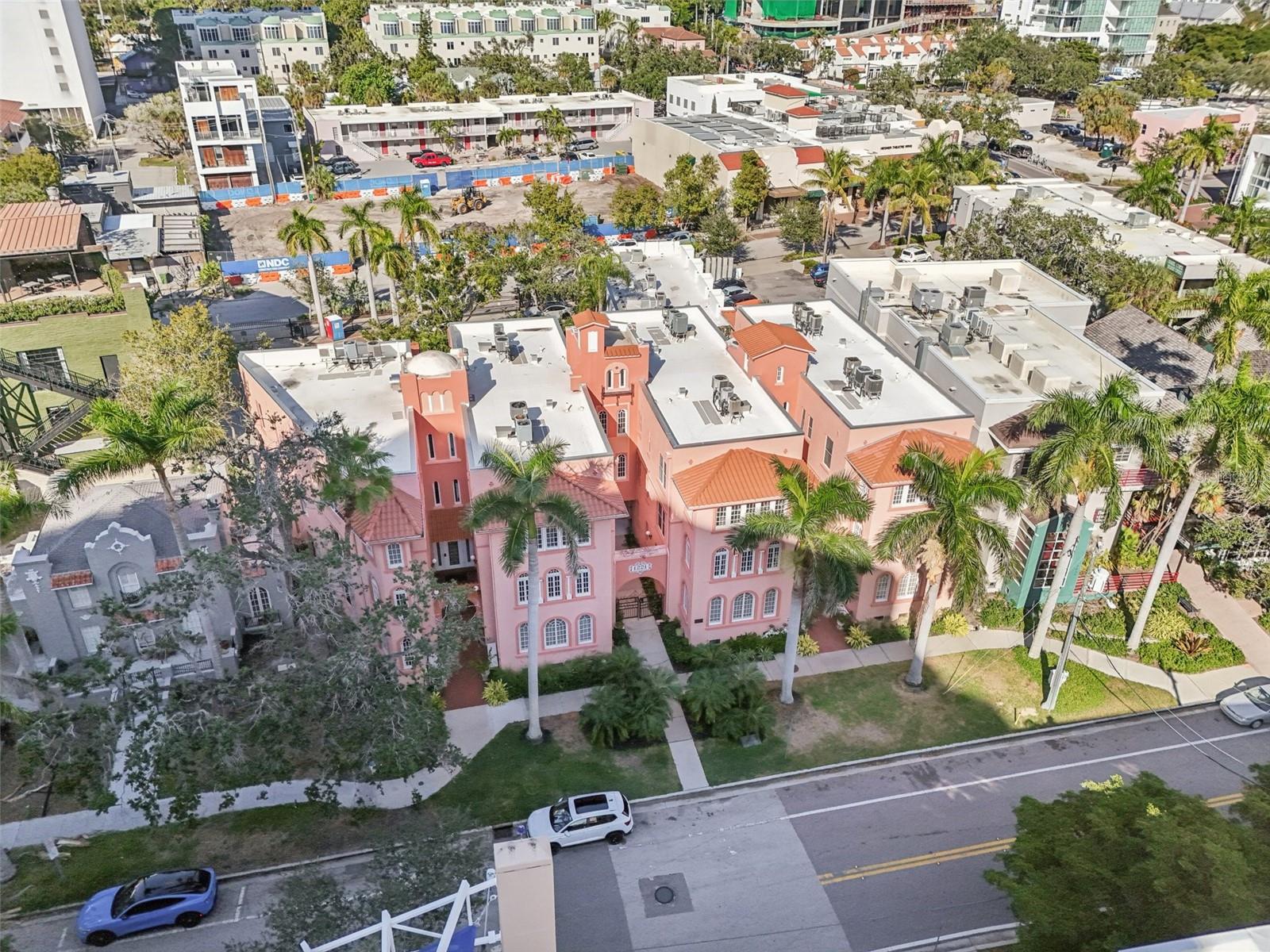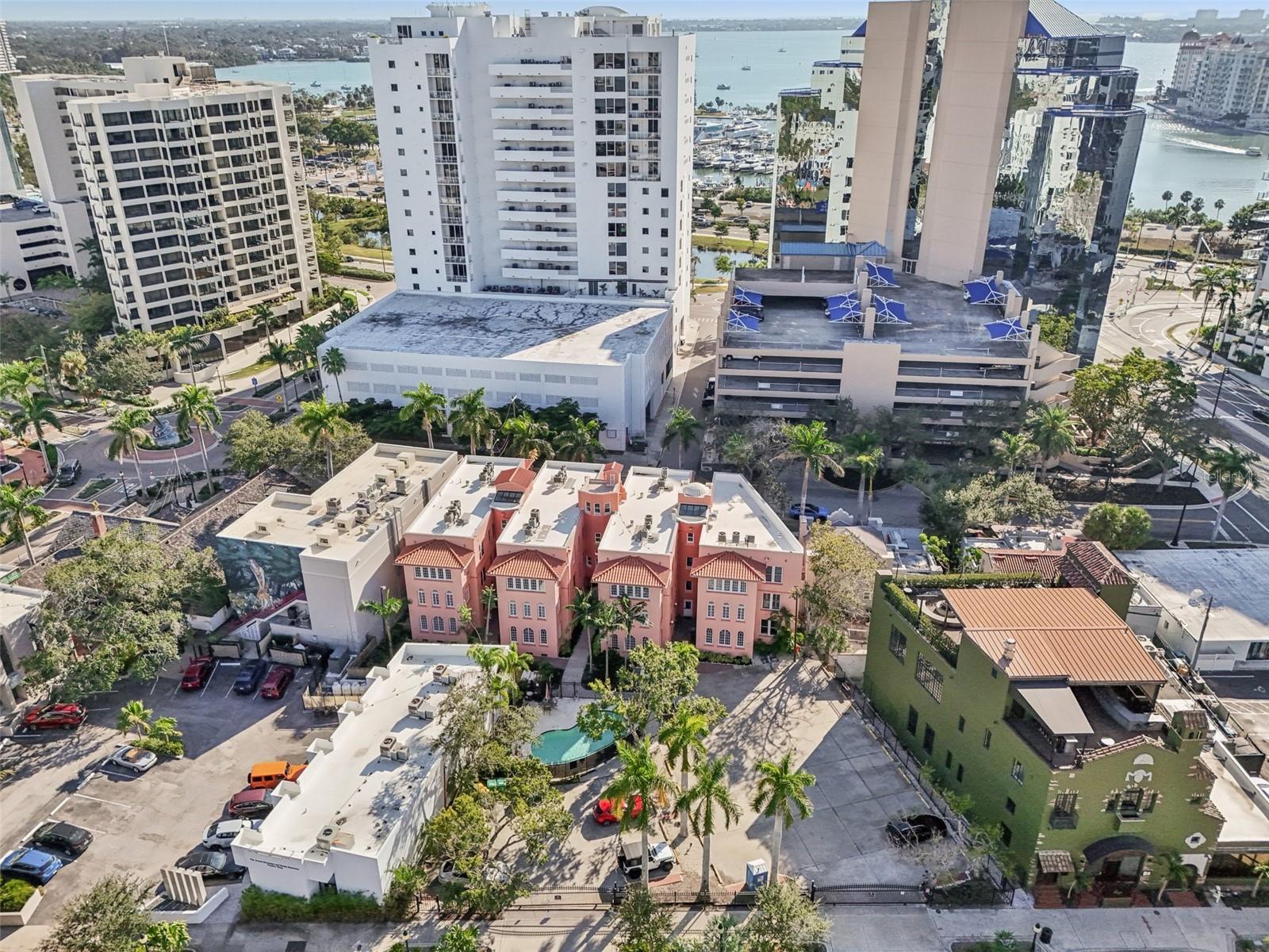 Wonderful opportunity to own a charming piece of Sarasota History in a prime location at an incredible value. This one bedroom, one bath floor plan with a gorgeous sun room (ideal for a den or study) is located in the Frances Carlton building, a designated Historic Sarasota Structure, built in 1924 in the Mediterranean Revival style. The condo community has only 20 residences and offers a lovely community pool, outside gathering area and a gated parking lot with designated parking spaces. Step into this condominium and imagine the possibilities. Your Great Room is spacious and open to the delightful light-filled Florida Room with arched Palladian windows. Your Primary Bedroom has 3 large windows and a built-in closet. The bathroom features a large tub with shower and your kitchen is well laid out and functional. There is a washer/dryer combo in the kitchen as well. This condo also offers an inside storage area. The condo features beautiful wood-plank laminate in the living areas and tile in the kitchen and bathroom. The A/C was replaced in 2025. Walk to the Sarasota Waterfront and enjoy lunch at Marina Jacks or stroll to Main Street, the Selby Library, theaters, galleries, restaurants & coffee shops and everything beautiful Downtown Sarasota has to offer. Close to world class beaches and St. Armands Circle as well. Frances Carlton has a wonderful ambiance and is a well managed condominium complex with excellent security. It is also the first condominium building in the state of Florida to have passed the Structural Integrity study. Schedule your showing today!