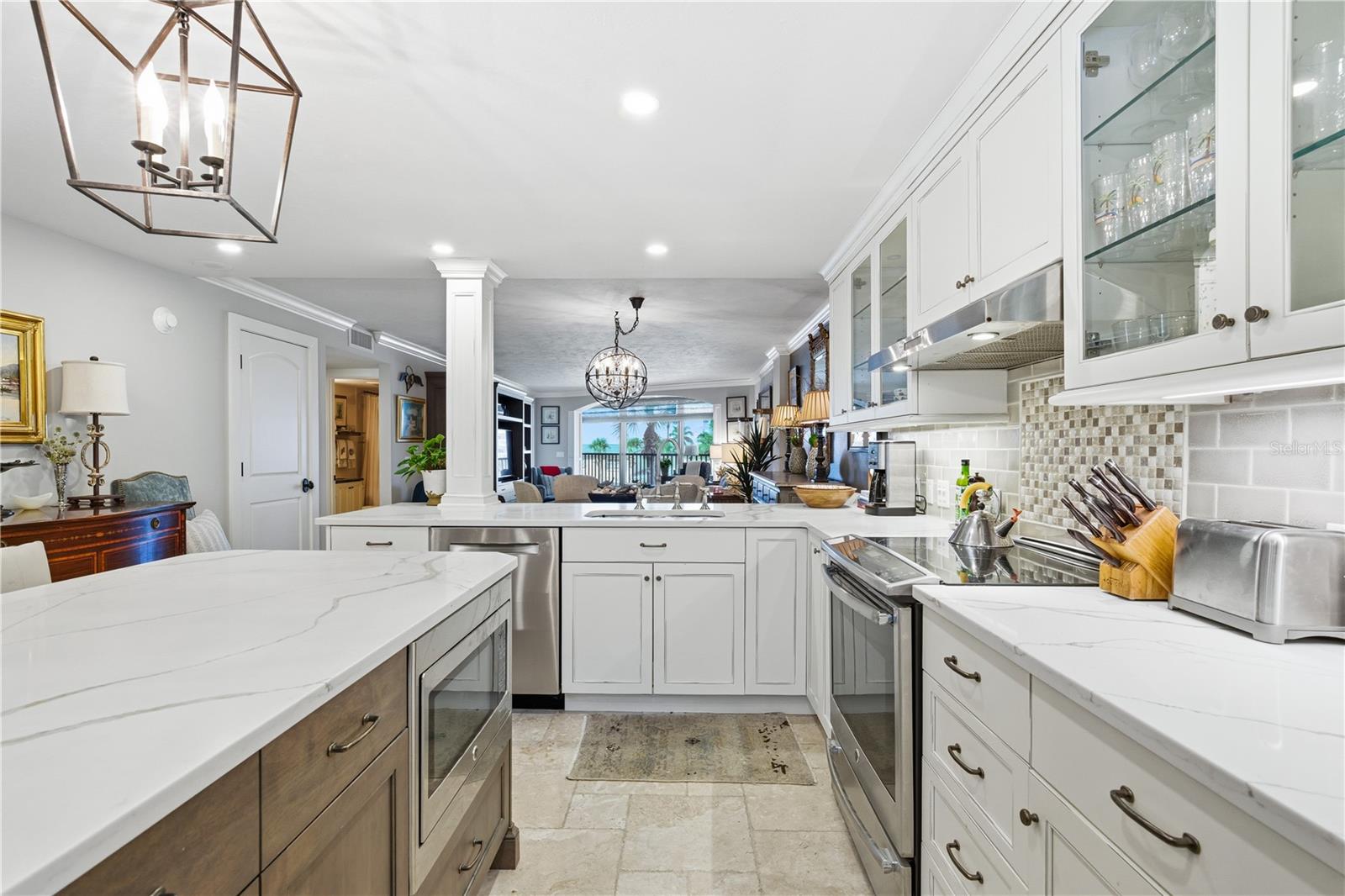 Welcome to Casarina, one of Siesta Key's most beautifully updated beachfront communities--and a place that truly captures the best of coastal living. This beautifully renewed 2-bed, 2-bath residence in Unit 302 blends comfort, quality, and a relaxed island feel from the moment you walk in. The entry opens to a light-filled space accented with custom-built-in cabinetry, detailed mouldings, and upgraded luxury lighting that makes the home feel warm and inviting. The enclosed lanai adds valuable living space and creates a bright, peaceful spot to unwind with your morning coffee or enjoy quiet evenings after a day on the beach. The kitchen is refined and functional with modern updates, under-cabinet lighting, and a smooth flow into the dining and living areas--perfect for easy everyday living or hosting guests. The primary suite offers a calm retreat with a renovated bath and generous closet space, while the guest bedroom provides comfort and privacy for visitors. You'll also appreciate the in-unit laundry with additional storage space. Casarina offers a true resort-style experience across 7 acres of lush, tropical landscaping. The entire property has been thoughtfully reimagined to elevate outdoor living. Generous in size, the pool offers ample room for both lap-style swimming and relaxed lounging, all set just steps from the sand. The surrounding oversized sun deck provides abundant seating, shaded areas, and open spaces to soak in the Florida sunshine. Residents enjoy pickleball and tennis courts, a grilling pavilion with outdoor kitchen space, and private pathways that lead to the community's deeded Crescent Beach access--one of the most pristine stretches on Siesta Key. The building features secure key-fob entry, a sleek glass elevator, and impeccably maintained grounds that create a peaceful, upscale coastal environment. A rare private garage space, highly coveted in beachfront communities, adds exceptional convenience and value. Living in Casarina means embracing a laid-back coastal lifestyle where every day feels like a getaway. Enjoy morning beach walks on powder-soft quartz sand, sunset dinners at waterfront restaurants, and a vibrant local scene filled with boutique shops, live music, and outdoor recreation. With its welcoming community and effortless blend of luxury and leisure, Casarina offers a lifestyle that truly feels exceptional.