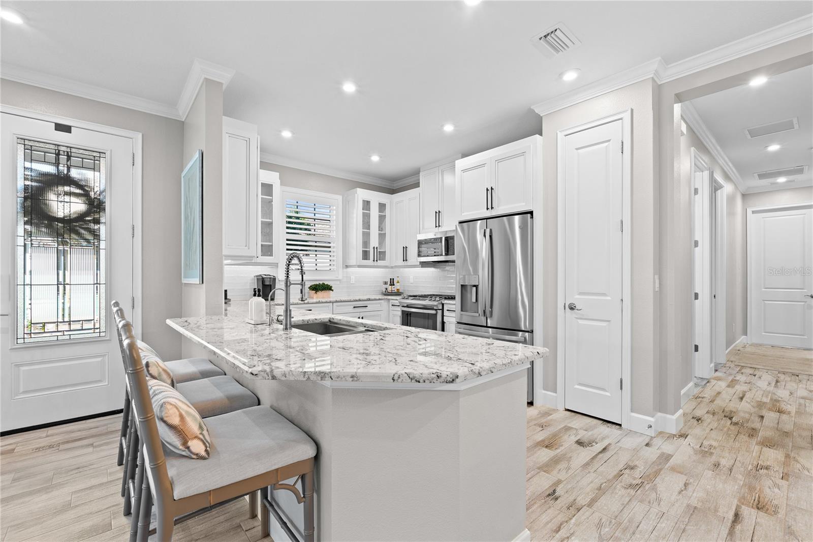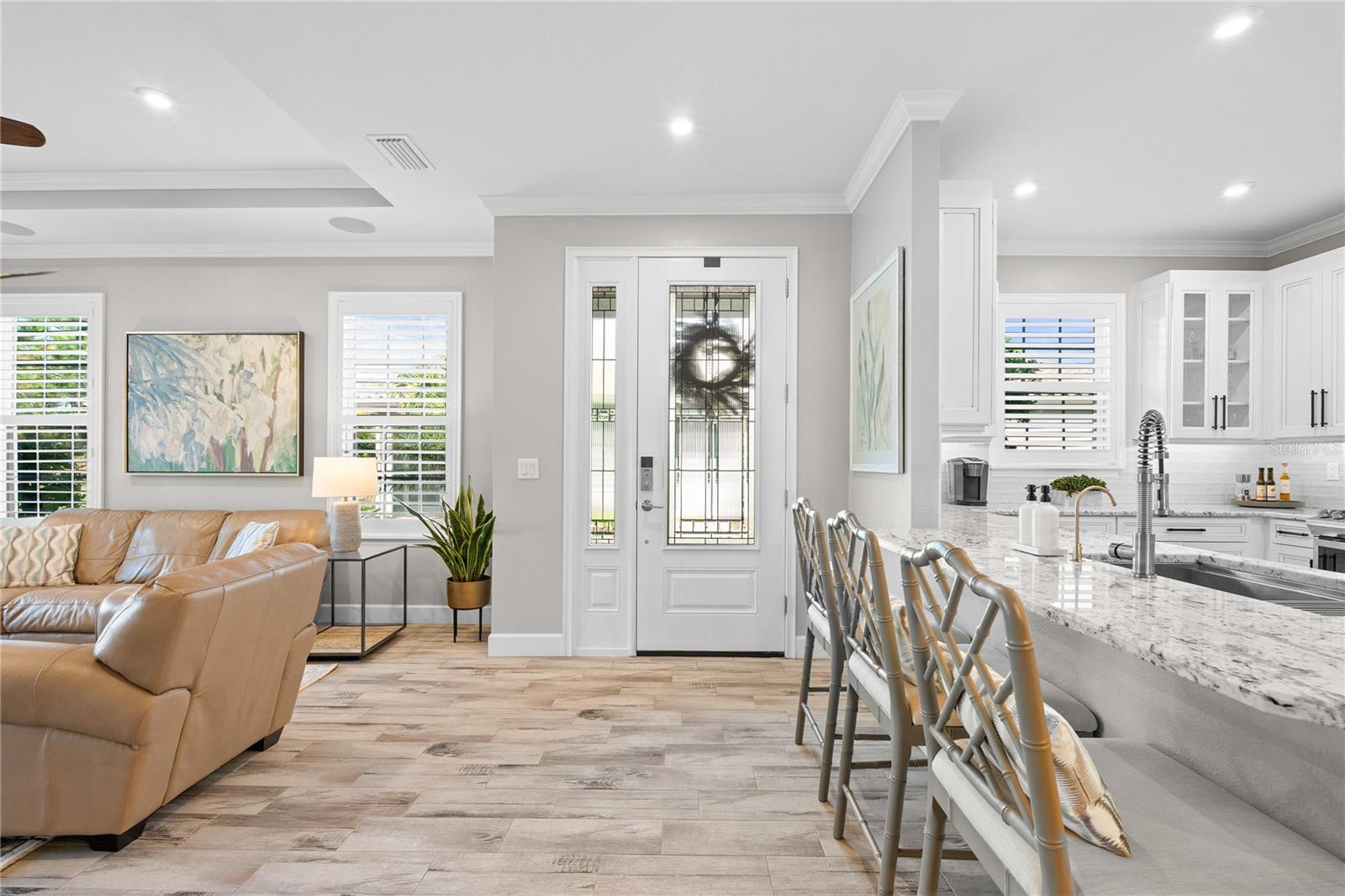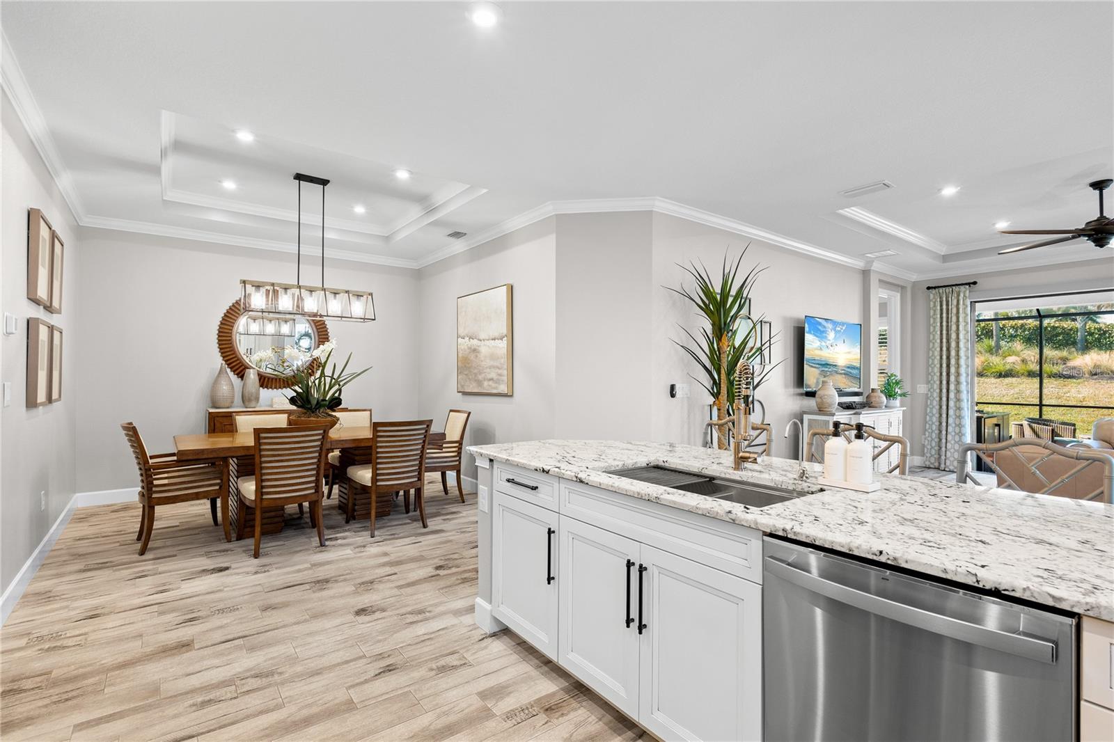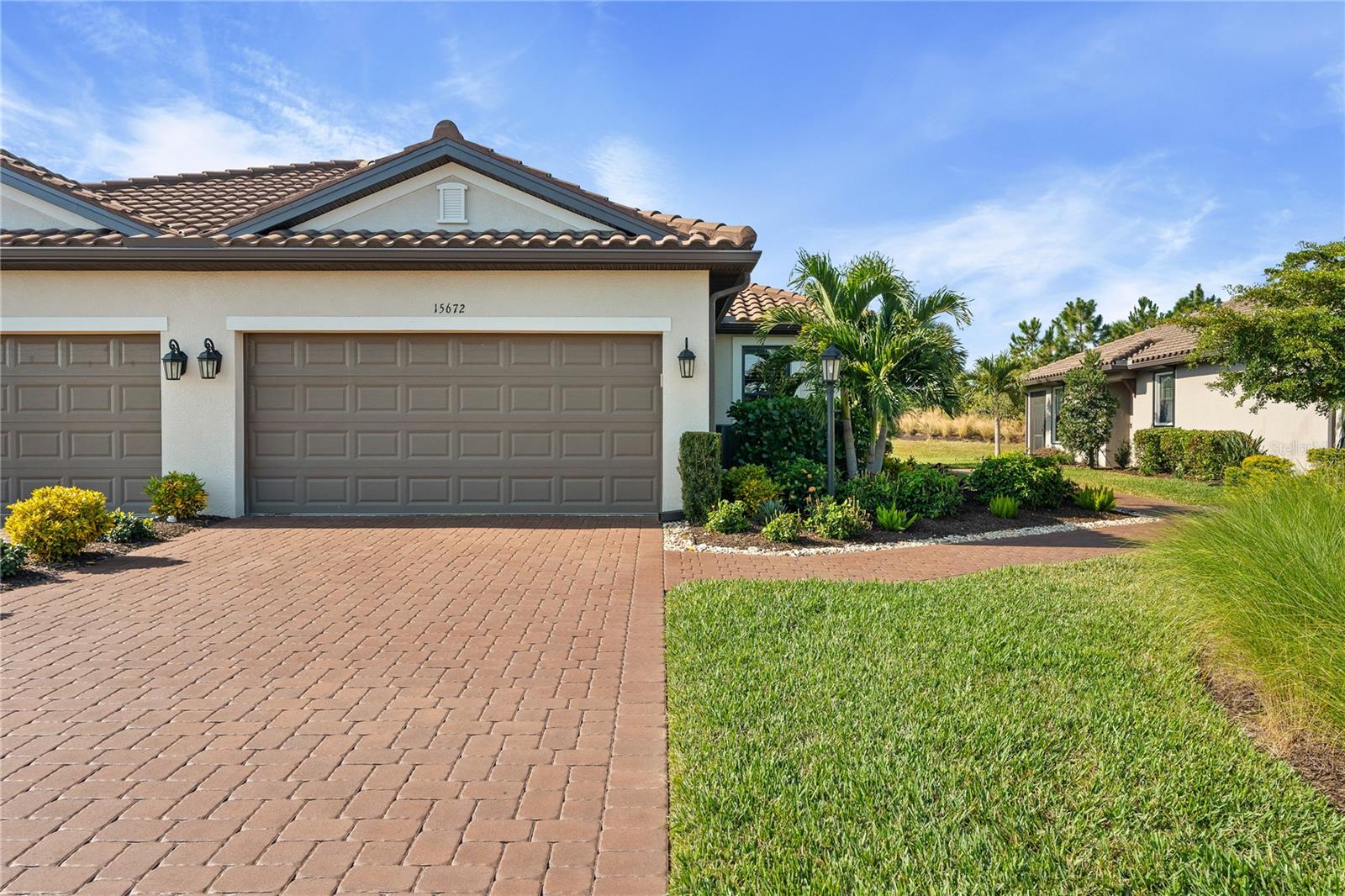 Welcome to a low-maintenance country club lifestyle in Azario in this beautifully upgraded and thoughtfully customized villa. This exceptional residence blends modern elegance with low-maintenance living, offering a rare opportunity for those seeking style, comfort, and resort-level amenities in one of Lakewood Ranch's premier neighborhoods. Step inside to discover a light-filled, impeccably upgraded interior. The custom kitchen features upgraded appliances, designer lighting, and tray ceilings, all complemented by whole-home plantation shutters and sleek tile flooring throughout--no carpet anywhere. The split floor plan provides privacy with bedrooms on opposite ends and a versatile den that functions perfectly as a home office or flex space. Additional built-in storage has been added throughout the home, giving you the practical convenience everyone wants but few villas provide.The real showstopper? The expansive 500 sq. ft. lanai, designed for true Florida living. Enjoy a gorgeous outdoor kitchen, generous seating areas, and plenty of room to relax or entertain. It's one of the most functional, well-designed villa layouts available on the market.Beyond the home, Esplanade at Azario delivers a lifestyle that feels like a year-round vacation. Residents enjoy a stunning clubhouse, a resort-style pool and spa, a state-of-the-art fitness center, and a bustling social scene. Outdoor enthusiasts can take advantage of pickleball and tennis courts, scenic walking and biking trails, and of course, the community's acclaimed championship golf course with pristine fairways and breathtaking views.This exceptional villa offers the perfect blend of luxury, convenience, and community--move-in ready and designed to impress.