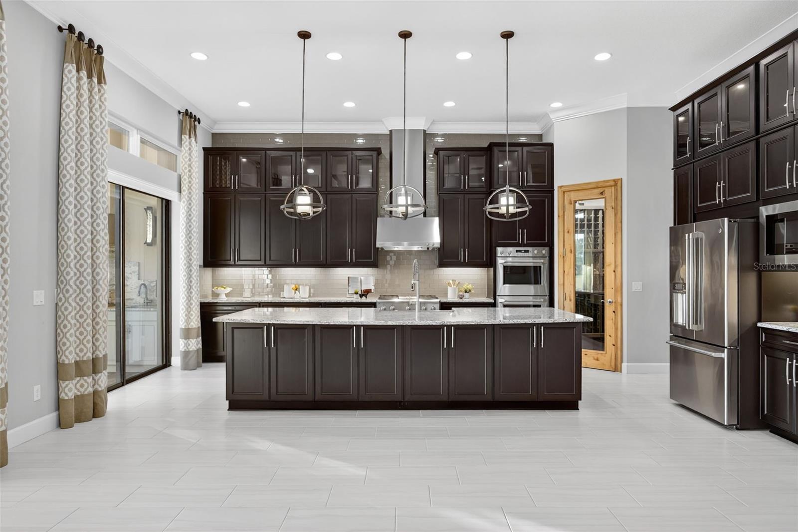 Discover unparalleled luxury in this exquisite Lakewood Ranch Esplanade home, situated on the community's largest lake with stunning southwest golf and water views. This three-bedroom, three-and-a-half-bath residence, complete with an office and dining room, showcases a sophisticated interior featuring high ceilings (12-foot with 13-foot trays), extensive crown molding, plantation shutters, and custom drapery. The functional, elegant kitchen is a chef's dream, equipped with Monogram appliances, ceiling-height cabinetry, quartz counters, and an instant hot water dispenser, while the pantry has been expertly converted into a climate-controlled, 300-bottle wine room. The master suite offers a serene bay window and custom closets, and each additional bedroom includes an ensuite bath. The outdoor oasis is designed for ultimate relaxation and entertaining, boasting a heated pool and hot tub with waterfall features, an outdoor kitchen with a grill and refrigerator, a gas fireplace, a power awning, and picture-view screens; advanced features like power hurricane blinds and Sonos speakers enhance the experience. The home further includes practical luxuries such as a three-car garage with heavy-duty storage, a full-house Eco water filter system, a tankless water heater, and an extended driveway with a custom iron entry door. Residents gain access to Esplanade's top-tier amenities, including championship golf, fine dining at the Culinary Center, two fitness centers, tennis, pickleball, and a vibrant social calendar, all ideally located near Sarasota, St. Pete, Tampa and some of the best beaches on the Gulf Coast of Florida. Fabulous dining, shopping and event locations abound. A forever home location with rivers north, south and the bays of the Gulf to the west. Making ease for some of the best sights in water activities. Be the first to step toward this home, as it won't be available long.