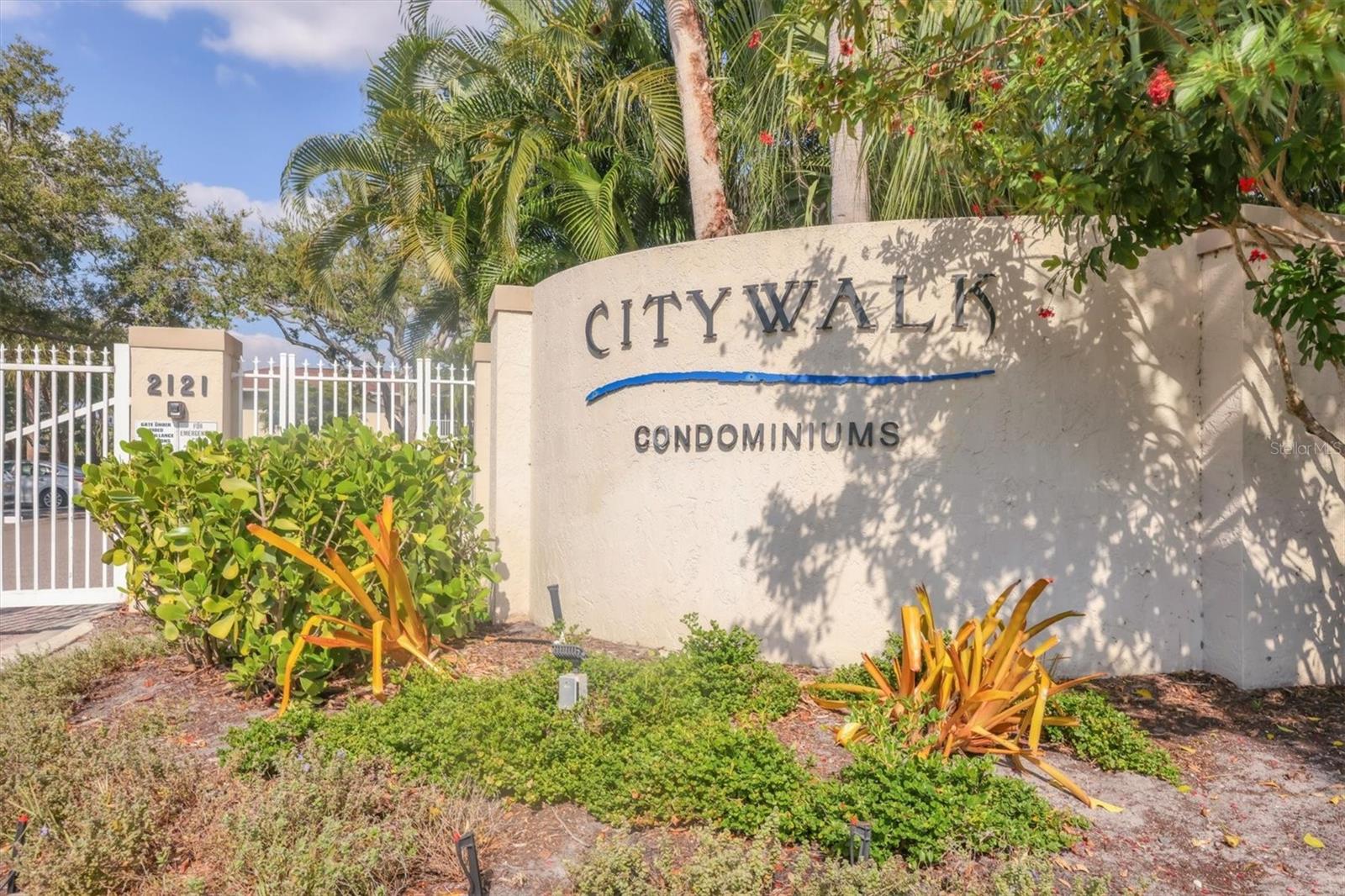*Best opportunity Downtown* Location Location Location - Rarely available 2BR /2BA ground floor unit in sought after CityWalk. This is a gated complex of 71 units in a downtown location with direct private access to the Legacy Trail and 29 acre Payne Park. Amenities include a heated pool and spa, fitness room and the community is pet friendly. This pleasant condo features a well-designed layout with comfortable living areas, spacious bedrooms, two full baths, in-unit laundry, and a private screened lanai, making it an excellent choice for a primary residence, vacation getaway, or investment rental. Located just minutes from Sarasota's world-famous beaches, including Siesta Key, Lido Key, and St. Armands Circle, this home offers easy access to the best of Sarasota. Marie Selby Gardens, Sarasota Art Museum, fine restaurants, shopping, biking trails, everything is right outside your door!