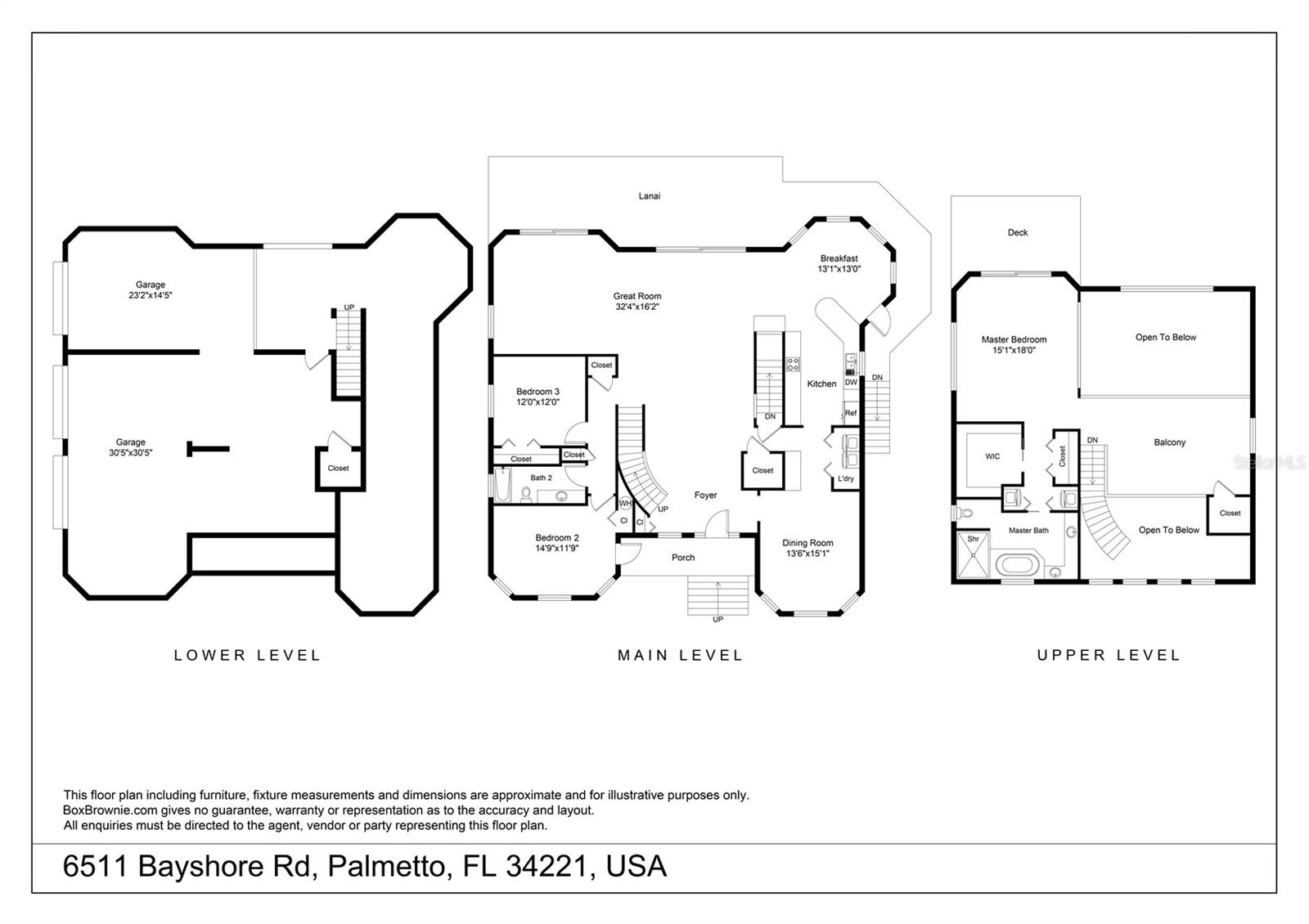 Experience the Ultimate in Waterfront Living! Step into a world where every day feels like a private retreat. This remarkable 3-bedroom, 2-bathroom bayfront estate sits on over 1.3 acres of pristine waterfront, offering unparalleled privacy, breathtaking sunsets, and a life immersed in nature. Picture mornings spent sipping coffee as dolphins glide by, afternoons exploring the water, and evenings entertaining on your private dock and expansive yard under skies streaked with gold and pink.Inside, the home exudes sophistication and comfort. Polished Egyptian limestone floors and brushed oak accents flow throughout, while the gourmet kitchen with granite countertops and abundant cabinetry invites culinary creativity and effortless entertaining. Sunlight pours in through new hurricane impact windows and sliders, filling every corner with warmth.Thoughtful upgrades elevate both function and style, including a 2025 standing seam metal roof, dual Trane HVAC systems with ultraviolet air purifiers, remodeled bathrooms, and a 3,100-square-foot garage with space for a workshop and fitness area. Two laundry areas, an elevator shaft from the garage to the upper level, and an RV pad with full hookups combine convenience with luxury.Outside, mature landscaping with live oaks, royal palms, and fruit trees creates a serene, private paradise. Outdoor living is effortless, from refreshing outdoor showers after kayaking to enjoying wildlife visits from eagles and dolphins. Nearby, Palm View Marina and Terra Ceia Preserve provide endless recreational opportunities. A life defined by waterfront serenity, natural beauty, and unforgettable moments awaits. Make every day extraordinary, schedule your private showing today!