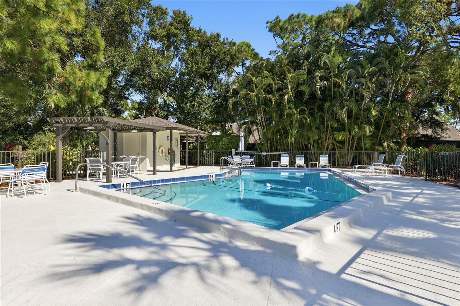 Tucked inside a quiet cul-de-sac within the desirable Woodmans Chart, this beautifully updated villa offers a lifestyle wrapped in nature, comfort, and convenience. Recently refreshed with 2025 exterior paint, the home greets you with crisp curb appeal. A private side courtyard welcomes you inside and also leads to the oversized two-car garage, offering room for cars, a golf cart, bicycles, and even a workshop areaStep through the front door and you're greeted by soaring vaulted ceilings and clerestory windows that pours in natural light. The layout is warm and welcoming, with generously sized living and dining spaces that feel both open and comfortable. An interior atrium with a soothing water fountain sits at the heart of the home--a perfect spot for morning reflection, plants, or an indoor-outdoor reading nook.The kitchen, thoughtfully positioned to overlook the dining area, provides lovely views of the surrounding greenery, a daily reminder of the serenity this home offers. Sliding doors open to an expansive screened lanai where you can relax year-round. Whether you're sipping coffee as the sun rises or unwinding after a long day, this outdoor space becomes an extension of the home. Each room is designed with comfort in mind, and the primary suite enjoys its own tranquil backdrop of mature landscaping.Practical upgrades bring confidence and peace of mind: a new roof in 2024, re-lined pipes with warranty, and a 2023 water heater.From here, it's only a short stroll to one of Woodmans Chart's two community pools, giving you the pleasure of a resort experience without the upkeep. The condo association also features its own private tennis court, while residents can still enjoy access to the master association's tennis facilities.The Meadows is known for its exceptional blend of recreation and natural beauty. Residents have access to 14 miles of scenic trails, 85+ lakes and waterways, three golf courses, 15 tennis courts, pickleball, dog parks, and multiple community pools and gathering spaces. The Meadows Country Club offers optional membership with additional amenities, including golf, dining, and social events.And when you want to venture out, you're minutes from everything--UTC Mall, Waterside Place, premier restaurants, Benderson Park, Lakewood Ranch, SRQ Airport, and Sarasota's breathtaking beaches. It's a location that makes everyday living both easy and inspiring.This villa brings together a peaceful setting, upgraded comfort, and an unbeatable Sarasota lifestyle--an inviting retreat that feels like home from the moment you arrive.