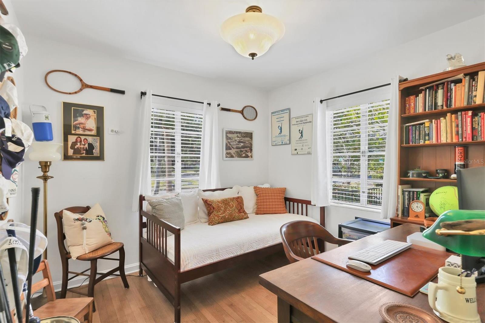 Discover this charming mid-century craftsman-style home, beautifully maintained and set on a spacious corner lot at the edge of the desirable River District. With 4 bedrooms, 2 baths and a 1-car garage, this inviting residence offers hardwood, laminate, and tile flooring throughout.A versatile flex room sits just beyond French doors--an ideal space for a home office, art studio, craft room, media room, exercise room, or even a home-school classroom. Perfect for today's live/work lifestyle.The comfortable living and dining area is centered around a striking wood-burning fireplace, which is also plumbed for gas. The primary suite includes a generous bath with dual sinks, a large closet, and direct access to the garden. Outside, enjoy the beautifully landscaped yard with mature trees and ample space to add a pool. A metal roof complements the home's architectural character.Recent updates include replaced cast-iron plumbing, upgraded kitchen appliances, and new granite countertops. Ideally located, this home offers easy access to the Riverwalk to the east, the Gulf beaches to the west, and an abundance of shopping, dining, and entertainment options.