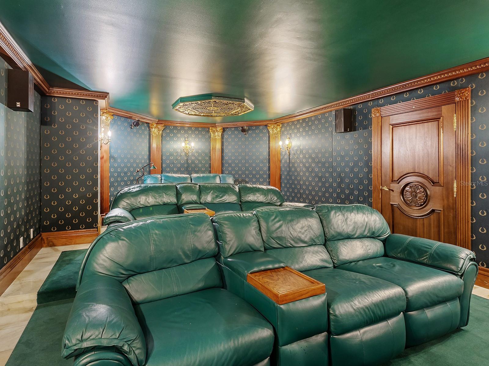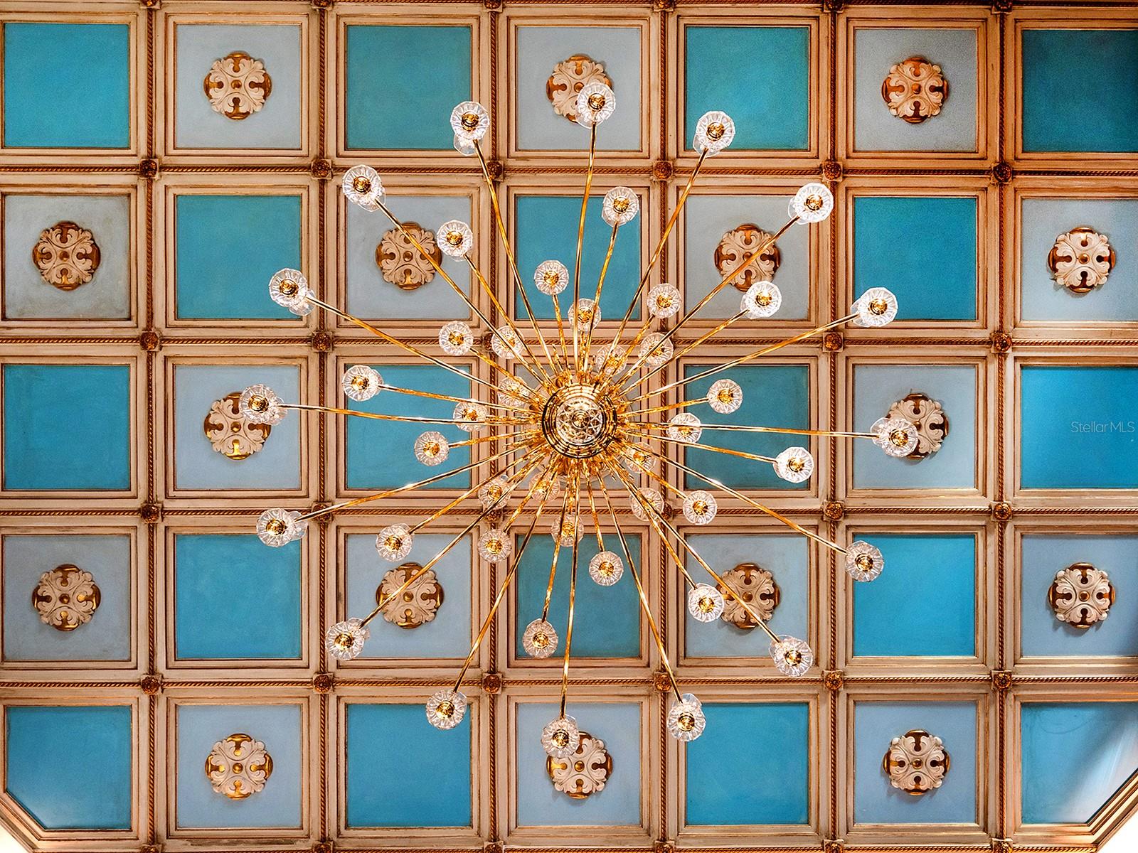Welcome to Villa Meraviglia - A Home Beyond Imagination. An extraordinary Neo-Classical Italian Renaissance Estate set on 1.22 bayfront acres in Sarasota's exclusive Oyster Bay Estates. Featuring 146 feet of pristine, direct frontage along the sparkling waters of Little Sarasota Bay, where sweeping panoramic views unfold, this walled and gated estate feels like a grand villa on the shores of Lake Como. A bold metallic gate, crowned with a striking Medusa head, sets the tone for the arrival experience, while two additional gold leafed gates - each equipped with electromagnetic openers - provide secure access, including a private entry to the neighboring yacht club. Encompassing more than 800 feet, the custom perimeter wall is more than a boundary: it's a commanding architectural statement of luxury and artistry. Completely reimagined and expanded under the guidance of a classically trained Italian architect, the residence blends timeless European artistry with modern luxury. Inspired by Italy's Villa del Balbianello and the iconic Casa Casuarina, the home showcases exquisite craftsmanship showcasing Venetian plaster walls, custom millwork gilded in 23-carat gold, hand-painted frescos, and pecky cypress ceilings. Spanning nearly 10,700 square feet of refined interiors, and over 4,000 square feet of air-conditioned space tailored for creativity and leisure, the home includes gracious entertaining areas, four ensuite bedrooms, four full and two half baths, and dual Clive Christian inspired kitchens designed for both family living and large-scale entertaining. Marvel at frescoed ceilings, stone-inlaid courtyards, and tranquil terraces that redefine elegance. Outside, lovely layered terraces and lush gardens frame peaceful, unobstructed bay views. A private dock with boat and jet-ski lifts anchors the waterfront lifestyle, while a resort style pool clad in shimmering mosaic tile, an octagonal pavilion, and a beautifully crafted summer kitchen elevate the outdoor experience to true luxury resort living. The sunken poolside kitchen is a beloved family gathering space ideal for relaxed al fresco dining. A large propane grill rises smoothly from its concealed appliance lift, while 100 year old Chicago reclaimed brick flooring, herringbone-pattern ceiling, and a beautiful maple wood dining set, create a warm, inviting ambiance. Thoughtfully curated seating areas capture breathtaking views in every direction, perfectly paired with spectacular year-round sunsets. Dive into luxury with the pool decking that elevates the iconic design of the Versace Property. Large, smooth marble stones imported directly from Italy weave a tapestry of geometric patterns that echo classic mythology. These intricate mosaics, true to Versace's legendary style, envelop the pool and its surroundings with a bold, artistic flair. A delicate Medusa mosaic graces the walkway, seamlessly connecting the pool area to the dock. Every element, from the imported Italian roof tiles to hand cast balustrades and hand painted frescos to the bespoke lighting and hardware reflects a deep commitment to authenticity, artistry, and permanence. Perfectly private yet ideally located near The Field Club and just minutes from Sarasota's cultural scene, fine dining, and Gulf beaches, Villa Meraviglia stands as a rare masterpiece of design and craftsmanship. A world apart--where Old World elegance meets idyllic coastal living and every detail is a Living Gallery of beauty and craft.