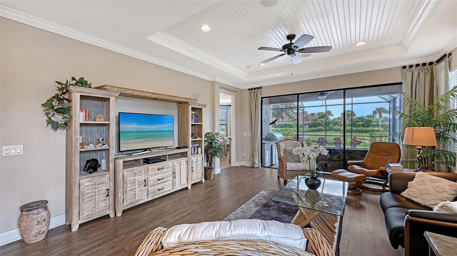 Welcome to Cobblestone, a premier gated community in Sarasota's desirable Palmer Ranch. This former model home offers exceptional style and quality throughout, featuring 2 bedrooms, 2 baths, and a den/office. The open floor plan showcases hardwood floors, tray ceilings, and a beautifully appointed kitchen with backsplash. The spacious primary suite includes a walk-in closet and a dual-sink vanity. Step outside to your own private oasis--an extended lanai with outdoor kitchen, complete with sink and refrigerator, plus a sparkling private pool with a waterfall feature, all overlooking the peaceful lake. Situated on a premium corner lot, this home has been lovingly cared for by its original owner.Cobblestone offers exceptional resort-style amenities including a clubhouse, fitness center, resort-style and heated community pools, spa, tennis courts, pickleball, bocce ball, and a dog park. Enjoy walking access to the Legacy Trail, and a short drive to restaurants, shopping, and the world-renowned Siesta Key Beach. No flood zone and no CDD fees. This is Sarasota living at its finest!