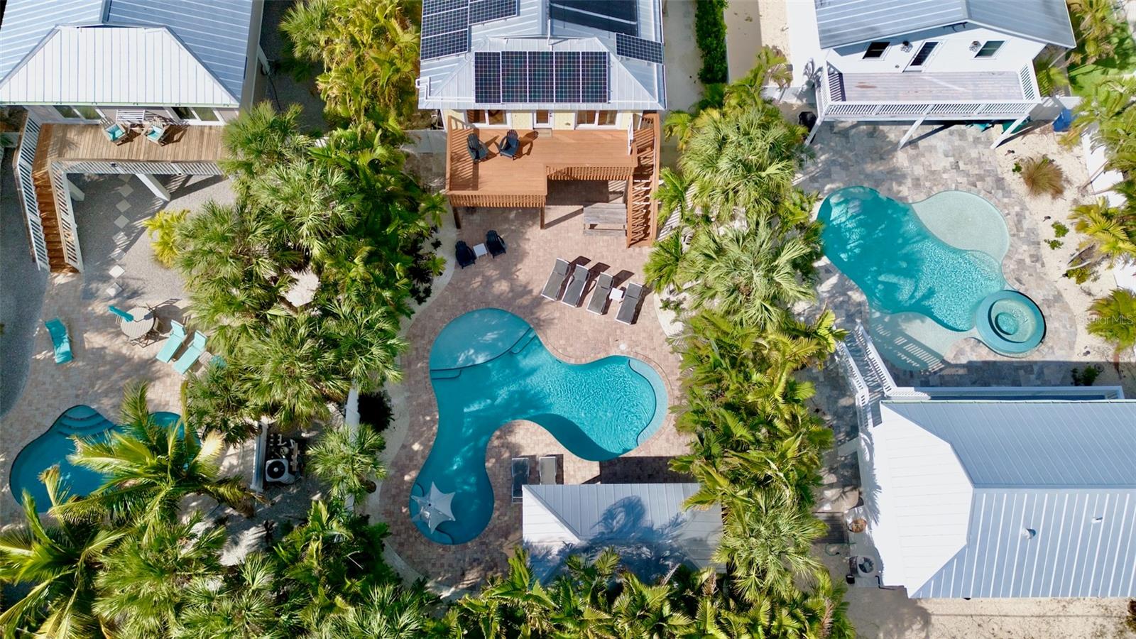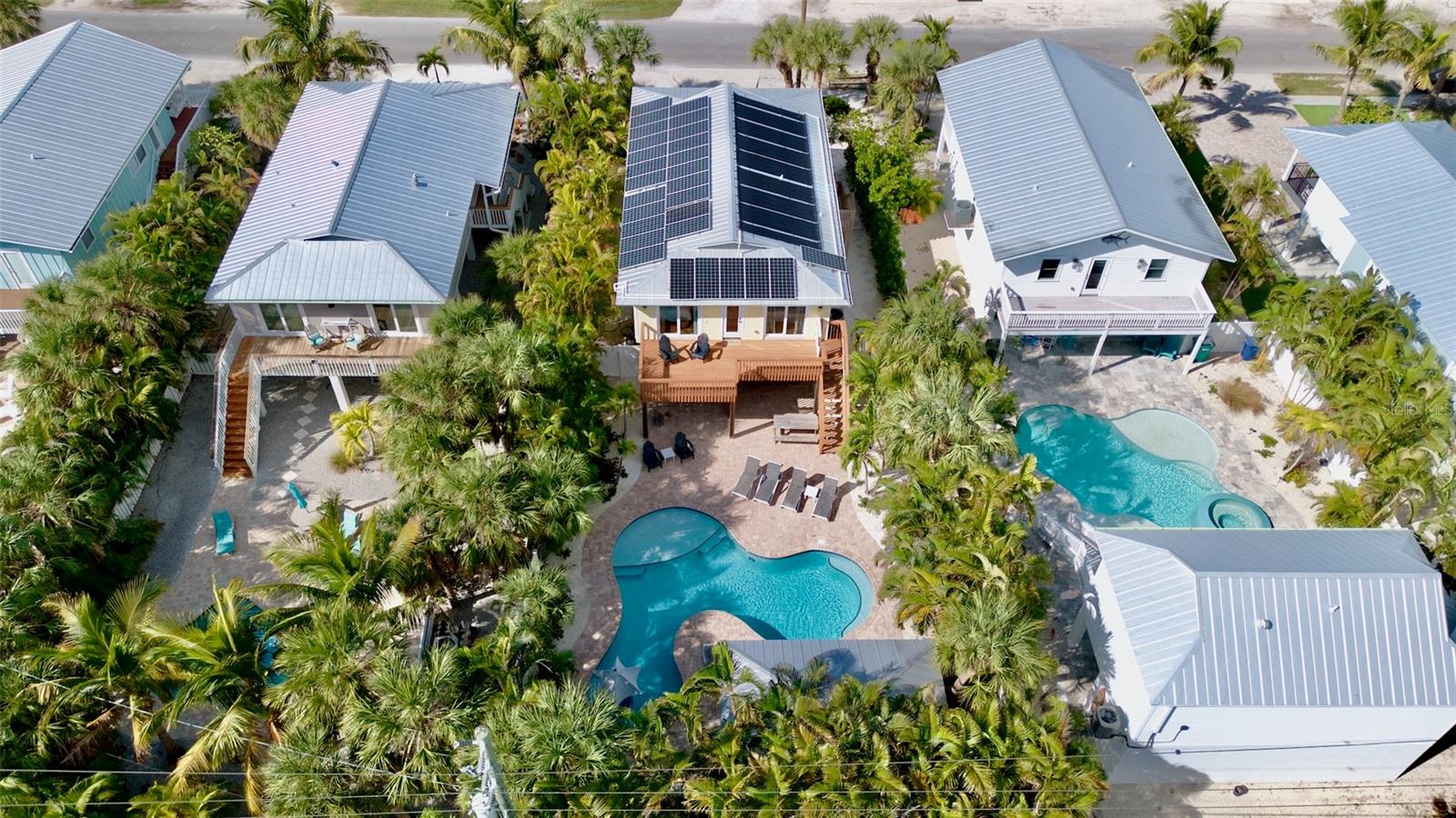 Welcome to Cabana Breeze, an elevated, eco-friendly retreat on the coveted north end of Anna Maria Island. Complete with solar panels--this four-bedroom, two-bath home sits just a short walk from Anna Maria City Beach and steps from Pine Avenue's popular shops and restaurants. The outdoor oasis features a large lagoon-style heated pool with in-water seating, two shaded cabanas for dining and bar lounging, and a recreation room with foosball, TV, and a tiki bar. With its prime location and resort-style amenities, Cabana Breeze also makes an excellent investment as a high-performing vacation rental.Inside, the open great room offers coastal charm with comfortable seating, wood floors, a modern dining area, and a updated kitchen with granite counters, stainless steel appliances, and a breakfast bar. Sleeping arrangements include two king bedrooms--both with patio access--plus two queen bedrooms and a queen sleeper sofa for added flexibility. The primary suite features a walk-in shower and double vanity, while the remaining bedrooms share a well-appointed hall bath.Combining sustainable living, an exceptional location, and strong rental appeal, Cabana Breeze is the perfect blend of island comfort, convenience, and investment potential. Don't miss your chance to own this exceptional AMI retreat- call today to schedule your private showing.