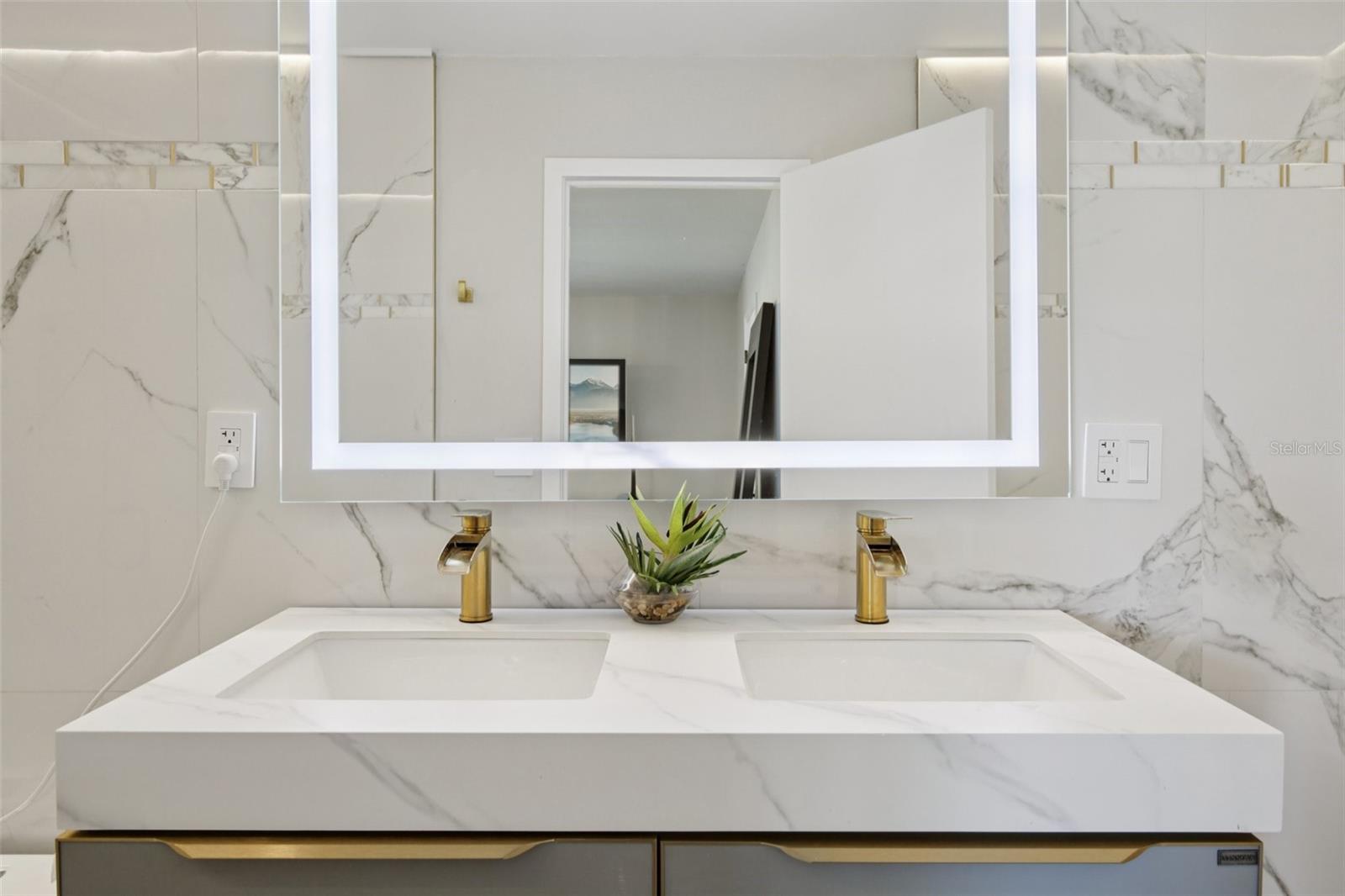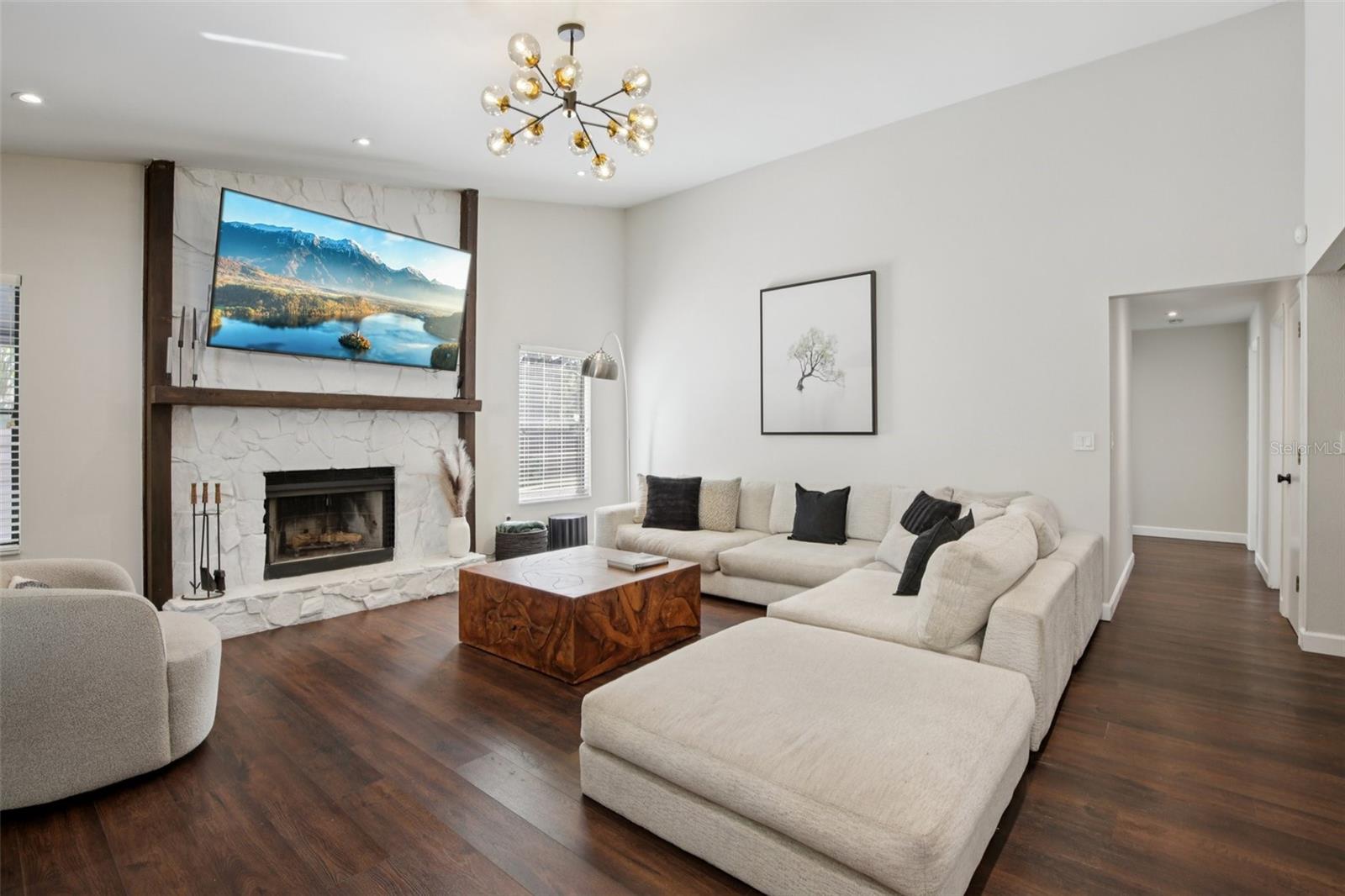 Welcome to this beautifully updated 4-bedroom home in the desirable Eastpointe community of Sarasota. Freshly renewed inside and out, this property blends modern style with everyday comfort in one of the area's most convenient locations.The exterior features brand-new professional paint, giving the home crisp, modern curb appeal. A long driveway leads to the covered entryway with sleek black accents and mature landscaping.Inside, soaring ceilings in the spacious open living area create an inviting atmosphere. The living room is anchored by a floor-to-ceiling stone fireplace with rich wood accents, complemented by updated luxury flooring throughout.The primary suite is impressively spacious with room for a sitting area, a statement chandelier, and large windows that fill the room with natural light. The primary bathroom is a true luxury retreat, featuring floor-to-ceiling marble-style tile, a floating double vanity with LED backlit mirror, gold fixtures, a frameless rainfall shower and a freestanding soaking tub.Step outside to a fully fenced yard and a screened-in lanai perfect for relaxing, entertaining, or enjoying quiet Florida evenings.LOCATION, LOCATION, LOCATIONThis home is situated near some of Sarasota's most desirable amenities:5-7 minutes to UTC Mall, with endless dining, shopping, and entertainmentMinutes to the new Mote SEA Aquarium at UTC -- a major attraction and local highlightClose to Target, Whole Foods, Cooper's Hawk, The Mall at UTC, and Nathan Benderson ParkEasy access to I-75, making commuting simpleShort drive to Sarasota's world-famous beachesAdditional features you'll love:Updated flooring throughoutFresh exterior paint Enormous primary bedroomLuxury spa-style primary bathFully fenced yard with screened lanaiLong driveway with ample parkingMove-in ready This home offers the perfect blend of modern upgrades, comfortable living, and unbeatable convenience. A must-see!
