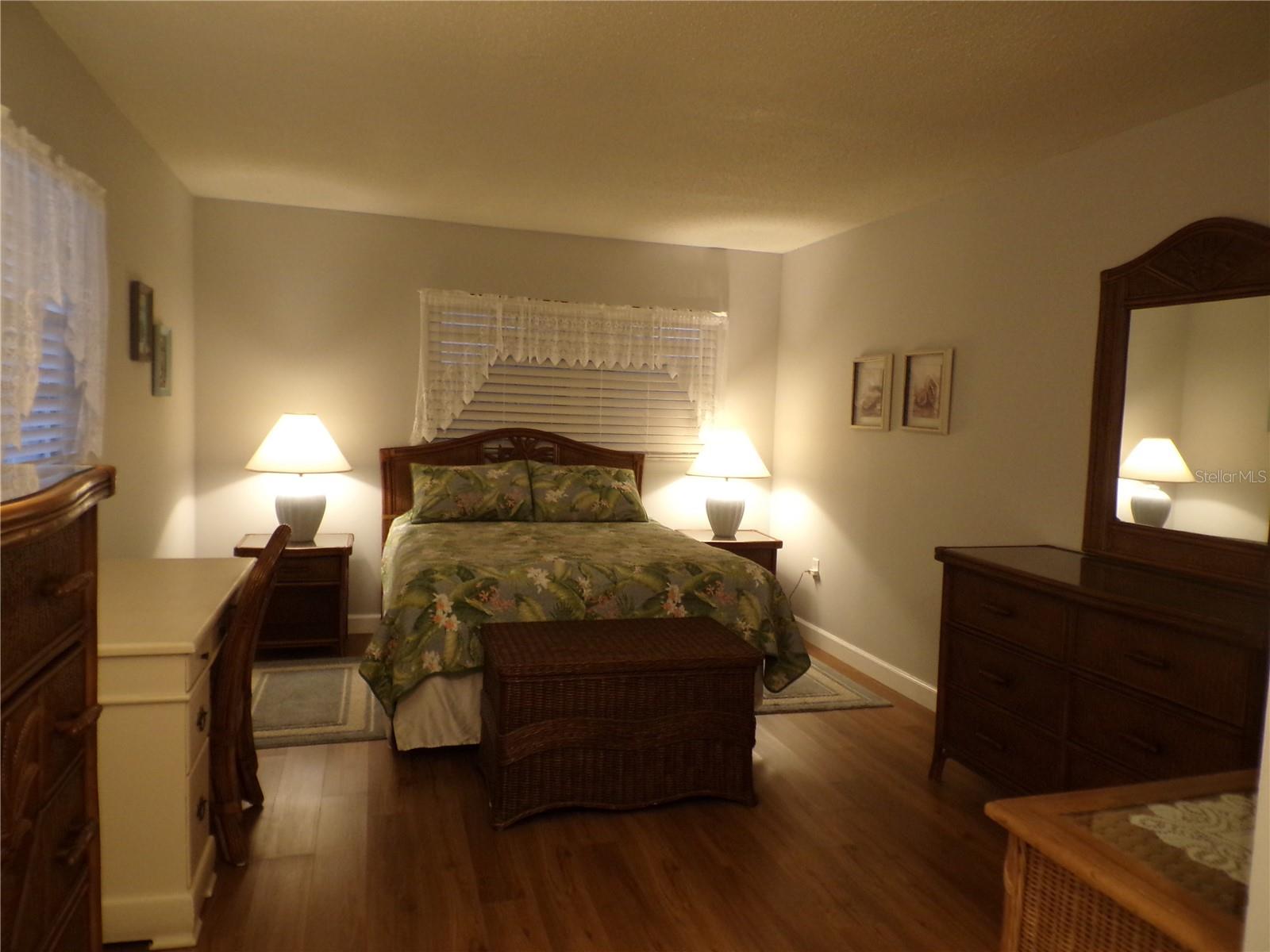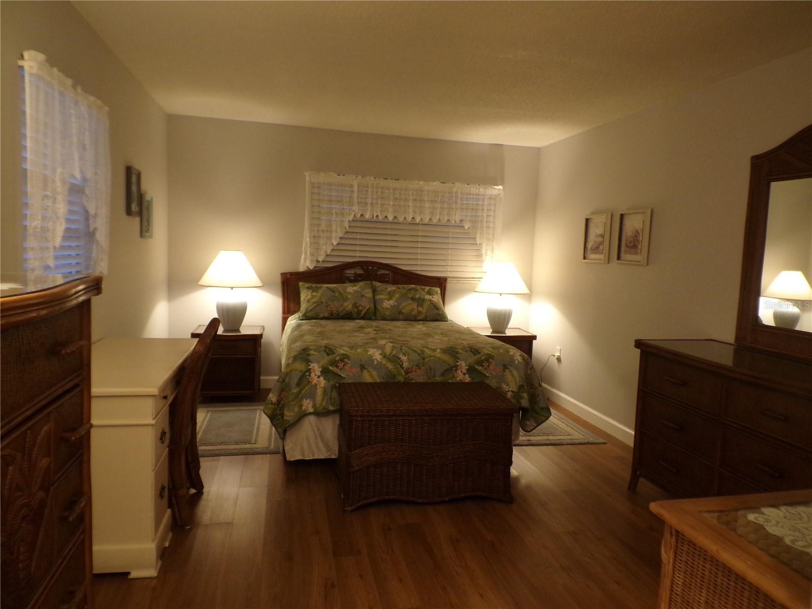 This Villa is a Stunner!!! Move Right into this Gorgeous Turnkey Furnished 1 Bedroom 1.5 Bath End Unit with Carport Parking at your door in Popular Park Acres! The Unit has been completely renovated and has been meticulously maintained by its proud owners! Come Home to your Gorgeous Kitchen Featuring White Shaker Style Cabinets with soft-close drawers accented by Black and White Granite Countertops with an Undermount Sink and Stainless-Steel Appliances. The Owner custom designed the Kitchen that includes extra cabinetry on the left wall & a Granite Windowsill at the sink window overlooking the Carport. The kitchen is open to both the foyer and the great room for a smooth flow. What a Nice Open Floorplan with a Great Room that includes a Bamboo/Glass Dining Table and a Luxurious Dark Red Leather Sofa bed with a Matching Recliner along with beautiful Bamboo accent Tables & Lamps. Tropical Florida Decor is prevalent throughout the unit. The Primary bedroom is spacious and Includes Top of the Line Florida Style Bamboo/Wicker Furniture with an Inlaid Palm tree Design. There is a Large En-suite Bathroom with a separate water closet with shower/tub combo. Also includes 3 Separate Bi-Fold Closets for all of your Wardrobe needs. The Primary Bath features a Gorgeous Mahogany vanity with Black Granite Tops and dual sinks along with updated Bronze Fixtures including a matching mirror & sconce style lighting. The Half bath is located at the entry, great for guests, and also includes an updated Mahogany Vanity with a Black Granite Top & updated Bronze Fixtures. This lovely home also features Vinyl plank flooring throughout the entire unit for easy care cleaning. There is a storage room flanking the Lanai for all the extras & the unit also includes a stackable Washer/Dryer Unit in the Hallway Closet near the Front Door. There is an enclosed Florida Room across the entire back of the unit to sip your morning coffee or evening cocktails in privacy while enjoying a beautiful view of the Park Acres Garden. The Front of the unit Features a Large Rock Garden, Courtesy of the owner, with Beautiful Pygmy Date Palms, giving it that Tropical Florida Feeling. What more can you ask for...a New Roof? YES, this Unit is Sporting a BRAND-NEW ROOF with Rain Gutters in NOVEMBER 2025!!! The HVAC is in Good Condition, and the Hot water heater was installed in March 2024. The unit was painted a few years ago and is in good condition. No Worries here...Pack your Bags and Head South to start enjoying our Beautiful Weather along with the Florida Sunshine and our Infamous Sandy-White Gulf Beaches! If you prefer to stay close to home, just take a stroll to the Inviting Community Pool & Clubhouse just around the circle that features many social gatherings throughout the year. Don't forget to bring your furry friends as Pets are welcome here! This is ONE VILLA you don't want to MISS! Call Today for your Private Showing! Park Acres has a well-run association that Maintains the Villas and the grounds very nicely.