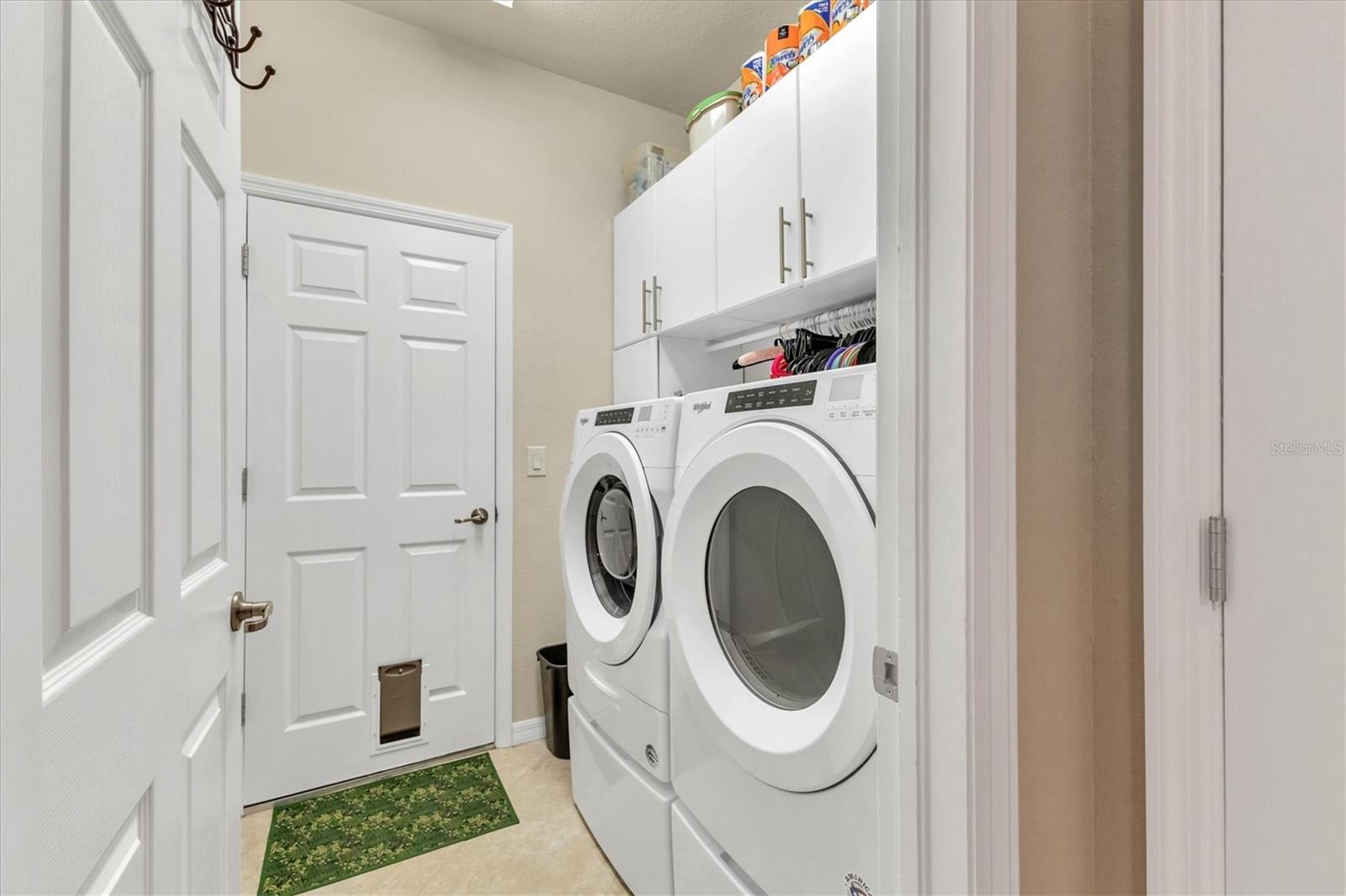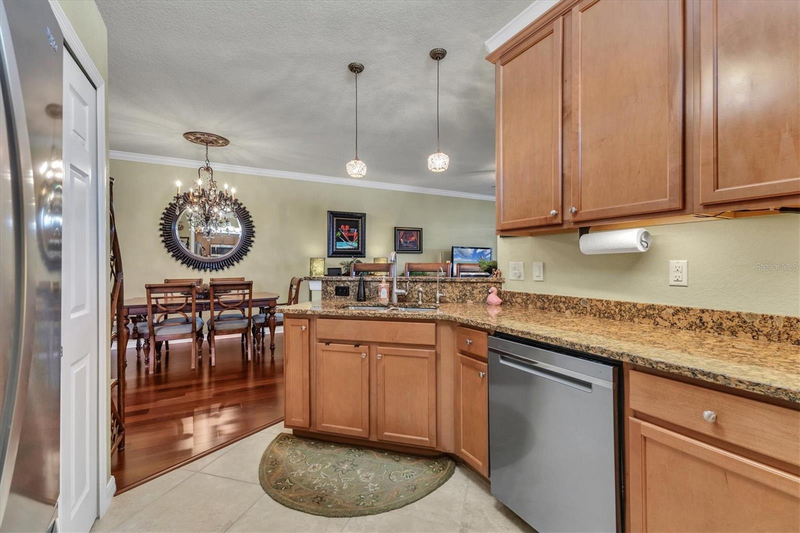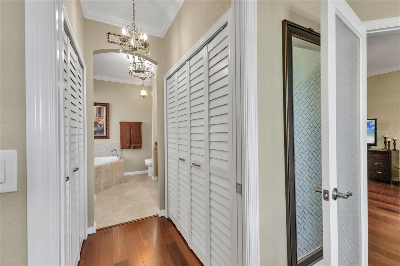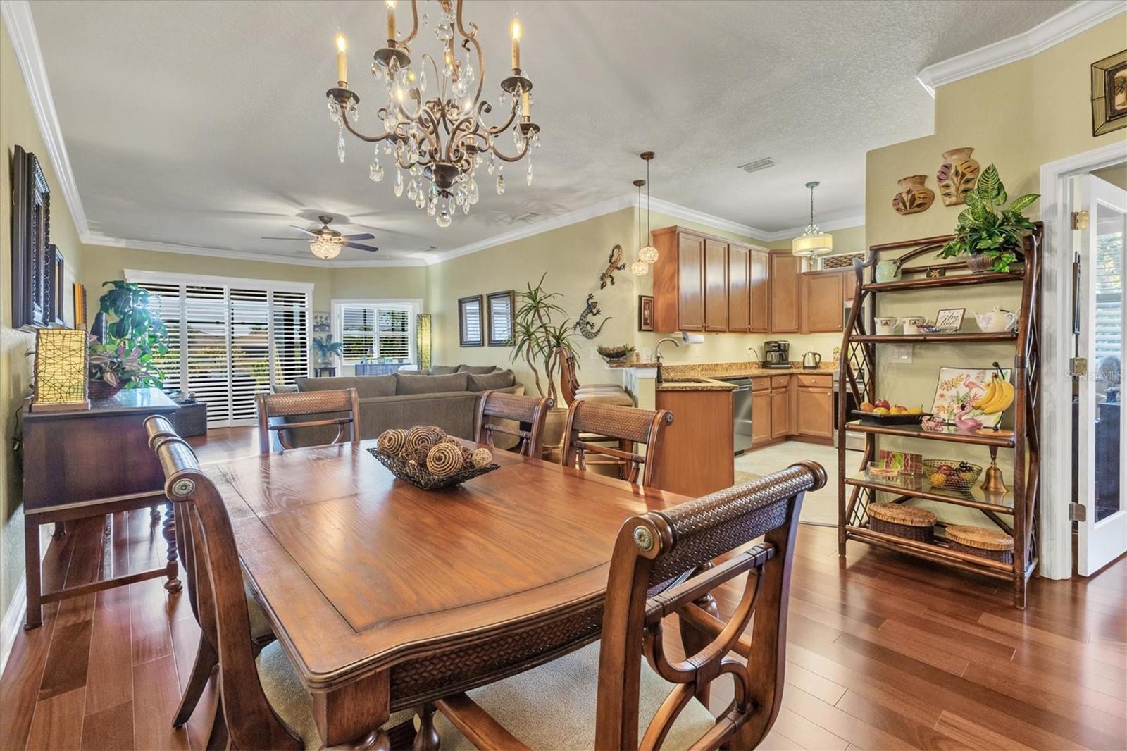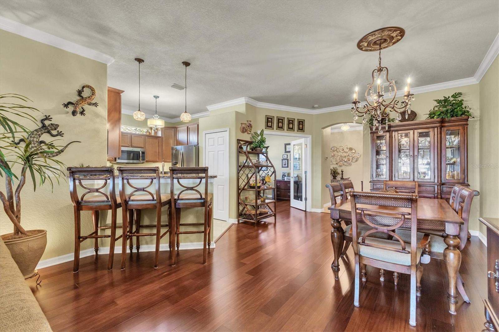 BEAUTIFULLY FINISHED VILLA with GORGEOUS WATER VIEWS and RESORT STYLE LIVING IN GRAN PARADISO! You will love the OPEN CONCEPT GREAT ROOM DESIGN incorporating dining area and sliders to your expansive outdoor living space overlooking sparkling water views, great for entertaining or simply relaxing. Enjoy spectacular sunsets and panoramic water views from your oversize screened paver lanai with privacy screen and motorized storm screen! Stunning island style finishes include Brazilian Chestnut Kiowa wood and stylish diagonal tile flooring, 9' ceilings, crown molding, granite countertops, plantation shutters, upgraded lights and fans and comfort height Toto toilets. Kitchen features wood cabinets with crown molding, granite counters, breakfast bar for casual dining, under cabinet lighting, and fingerprint resistant stainless steel appliances include French Door refrigerator, dishwasher, smooth top 5 burner range with convection oven and air fryer. Imagine waking up to serene water views from the owner's suite with French doors, dual built-in closets, dual bowl vanity, separate soaking tub and tiled shower. The study with French doors provides versatile space to suit your needs. Desirable split bedroom and bath design features 2nd bedroom with built-in closet, hall bath and linen closet, ideal for family or guests. Convenient interior laundry room includes cabinets above Whirlpool front load washer and dryer on pedestal bases. Gorgeous landscaping, screened front entrance, tile roof, paver driveway and walkway, newer hot water heater, whole house gutters, storm shutters and Kevlar storm screen on lanai complete this wonderful home. Private and gated with maintenance free landscaping, you'll have abundant time for activities at the resident Clubhouse with Resort Style Pool and Spa, State of the Art Fitness Center, tennis and pickleball courts and a variety of clubs and classes where you can socialize, unwind or get fit! Premiere location in Wellen Park you are minutes to vibrant shopping and dining, events, recreational pursuits, Atlanta Braves spring training at Cooltoday Park and our gorgeous Gulf Coast Beaches!