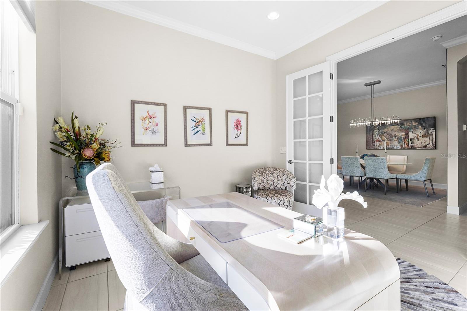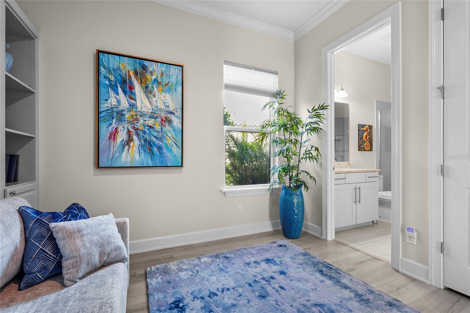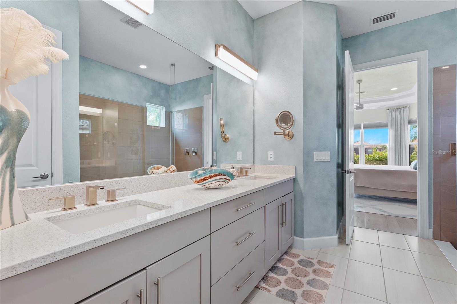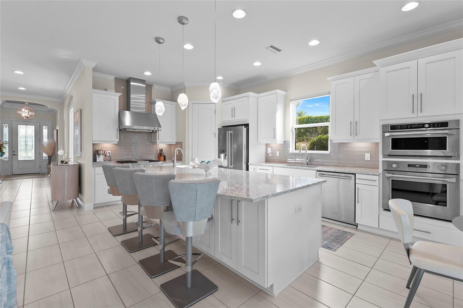 Experience the amenity filled gated community of Esplanade on Palmer Ranch. This rarely available Lazio model offers three bedrooms, three baths and den. This stunning home is situated on a premium large waterfront lot with only one neighboring home, offering privacy and beautiful views. Thoughtfully designed structural enhancements include an extended kitchen, bump-outs in both the front and primary bedrooms, 8-foot doors throughout, glass French doors to the den, and a true three-car garage with AC splitter and electric shelving.This southern exposure waterfront large lot features include engineered laminate flooring in all bedrooms and primary closet -- no carpet anywhere. All closets are fully customized for maximum storage. The study/den showcases custom built-ins and storage, while all bedrooms includes built-in storage to include a Murphy bed. The gourmet natural gas kitchen is a chef's dream, complemented by upgraded light fixtures and finishes throughout.The bathrooms feature frameless glass enclosures and faux painting accents. The interior has been freshly painted and enhanced with elegant touches like a mirrored dining room wall and custom room-darkening blinds.A whole-home generator, garage AC split system and electric shelving, air purifier and UV light for the AC (including enzyme drain maintenance). The laundry room has also been upgraded with a cabinet and sink addition for convenience.The expansive back lanai features travertine tile, a full set of hurricane shades (including over the front door), and additional electric sun shades for comfort and protection. The home also boasts hurricane windows and sliders throughout and a hurricane-rated glass front door. New landscaping with exterior lighting enhances curb appeal day and night. Esplanade on Palmer Ranch is a gated, maintenance-free community offering world-class amenities: On-site Bahama Bar restaurant, resort-style pool, resistance pool, splash park, and hot tub Fitness center and private fitness studio with daily classes 8 pickleball courts, 2 tennis courts, and 3 dog parks Nature trail and direct access to the Legacy Trail This home is the perfect blend of luxury living and active lifestyle--schedule your private showing today!