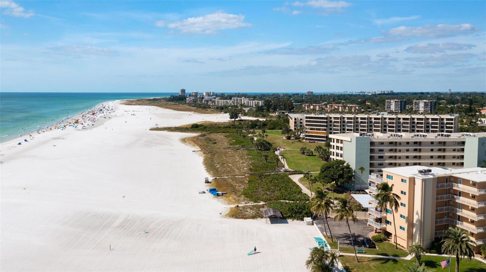 Siesta Key Beachfront Living at Jamaica Royale--Experience the best of coastal Florida in this fully renovated two-bedroom, two-bath condominium, perfectly situated on world-famous Siesta Key Beach. With 300 feet of private, powder-white quartz sand just steps away and no roads to cross, this Jamaica Royale residence delivers true beachfront living on a quiet, private lane. Step inside to a bright, open-concept layout featuring luxury flooring throughout. The gourmet kitchen shines with stainless steel appliances, quartz countertops, custom soft-close cabinetry, and stylish finishes. The spacious primary suite offers a serene retreat with a beautifully updated en-suite bath and walk-in shower, plus extra-deep double closets in both bedrooms for abundant storage. Recent upgrades include a new roof (2022), new water heater, new A/C, new appliances, updated plumbing, contemporary interior doors, and hardware--everything has been thoughtfully refreshed for move-in-ready comfort. Enjoy your morning coffee on the private patio, take advantage of convenient in-unit laundry, and park right outside your door. Resort-style amenities include three heated pools, plenty of lounge chairs, and lush tropical landscaping. Whether you're relaxing to the rhythm of the Sunday drum circle, watching breathtaking sunsets, strolling the cool-to-the-touch white sand, or hopping on the free shuttle to Siesta Key Village for dining and shopping--this is relaxed, turnkey beach living at its finest.