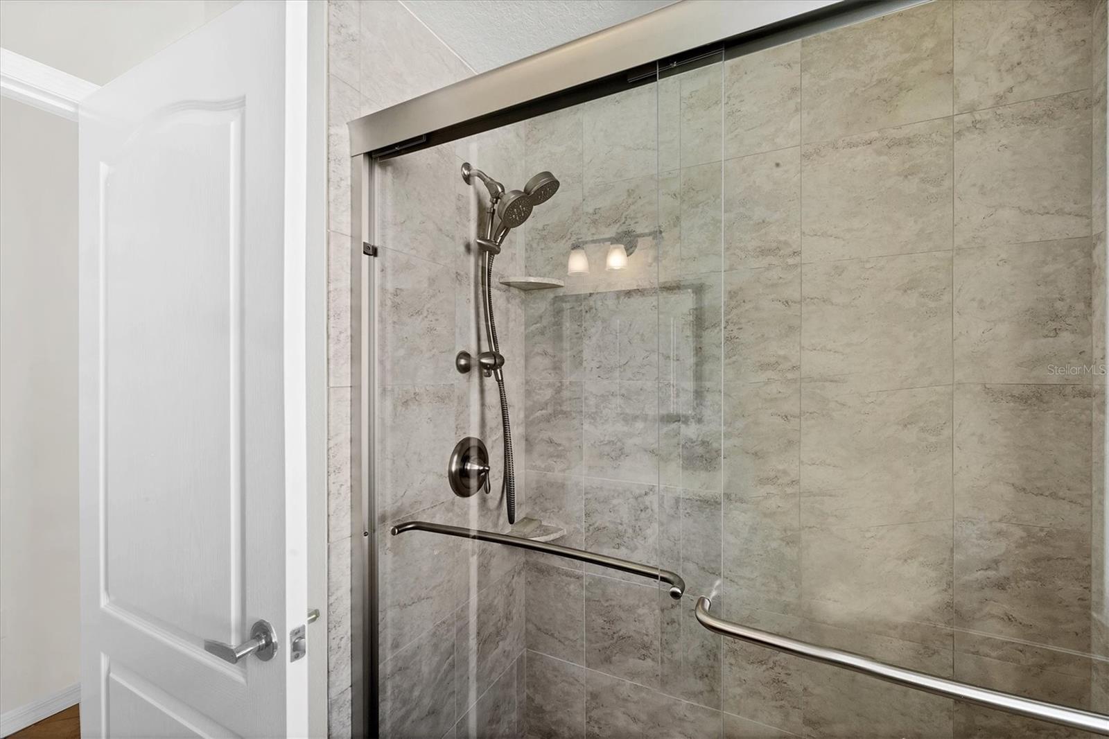 Exterior: Hurricane Shutters, Lighting, Sidewalk, Sliding Doors