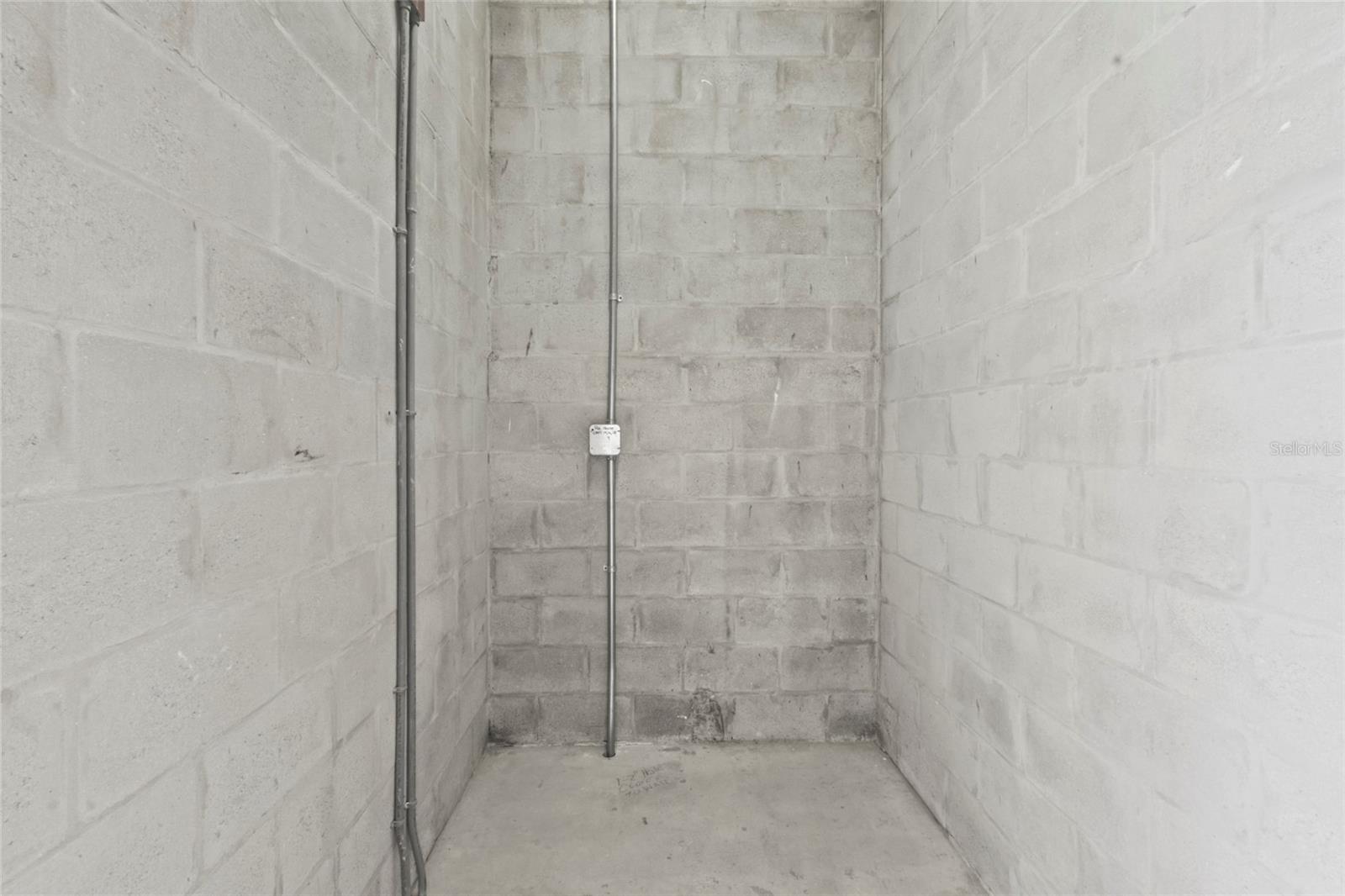 Exterior: Lighting, Sidewalk, Sliding Doors, Storage